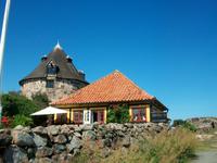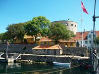 2.8.2019. Heute hat uns Petrus wieder lieb! Schon am Morgen lacht die Sonne und ein Teil unserer Reisegruppe macht sich auf zu einem besonderen Ausflug. Zunächst gelangen wir noch einmal entlang der Ostküste mit ihren pittoresken Orten nach Gudjem. Hier beginnt an diesem schönen Vormittag eine besondere Schifffahrt. Direkt am Hafen steigen wir ein um auf dem Sonnendeck die schöne Überfahrt zu genießen. Leicht schaukelnd nehmen wir den östlichsten Außenposten Dänemarks zum Ziel: die Erbseninseln. Hier wurden einst Festungsanlagen errichtet, in den sehr kriegerischen Zeiten kam es hier oft zu Kämpfen; heute wird hier alles zivil genutzt. Am Vogelfelsen vorbei machen wir bald im kleinen Hafen fest. Hier gibt es eine Hängebrücke die uns hinüberführt zur Insel Frederiksø. Verstreut liegen hier inmitten einer grünen Natur die bunten Häuser. Wir sehen das ehemalige Gefängnis, betrachten uns die Wohnhäuser der Insulaner, selbst eine kleine Fischfabrik fehlt hier nicht. Dann gelangen wir hinüber zur größeren Insel Christiansø; hier geht es etwas munterer zu. Es gibt eine Gaststätte, einen Eisstand und einen Kaufmannsladen. Bei dem Rundgang sehen wir die ehemaligen Kasernen, hier wohnen heute ganz normale Leute; selbst Touristen können hier an diesem besonderen Ort übernachten. Die Runde führt vorbei an den wuchtigen Türmen, entlang der massiven Festungsmauern aus Granit und bei unserem Spaziergang sehen wir auch das Schulhaus und die Kirch der Insel. Hier ist also für alles gesorgt und wir staunen über das Organisationstalent der Einwohner.