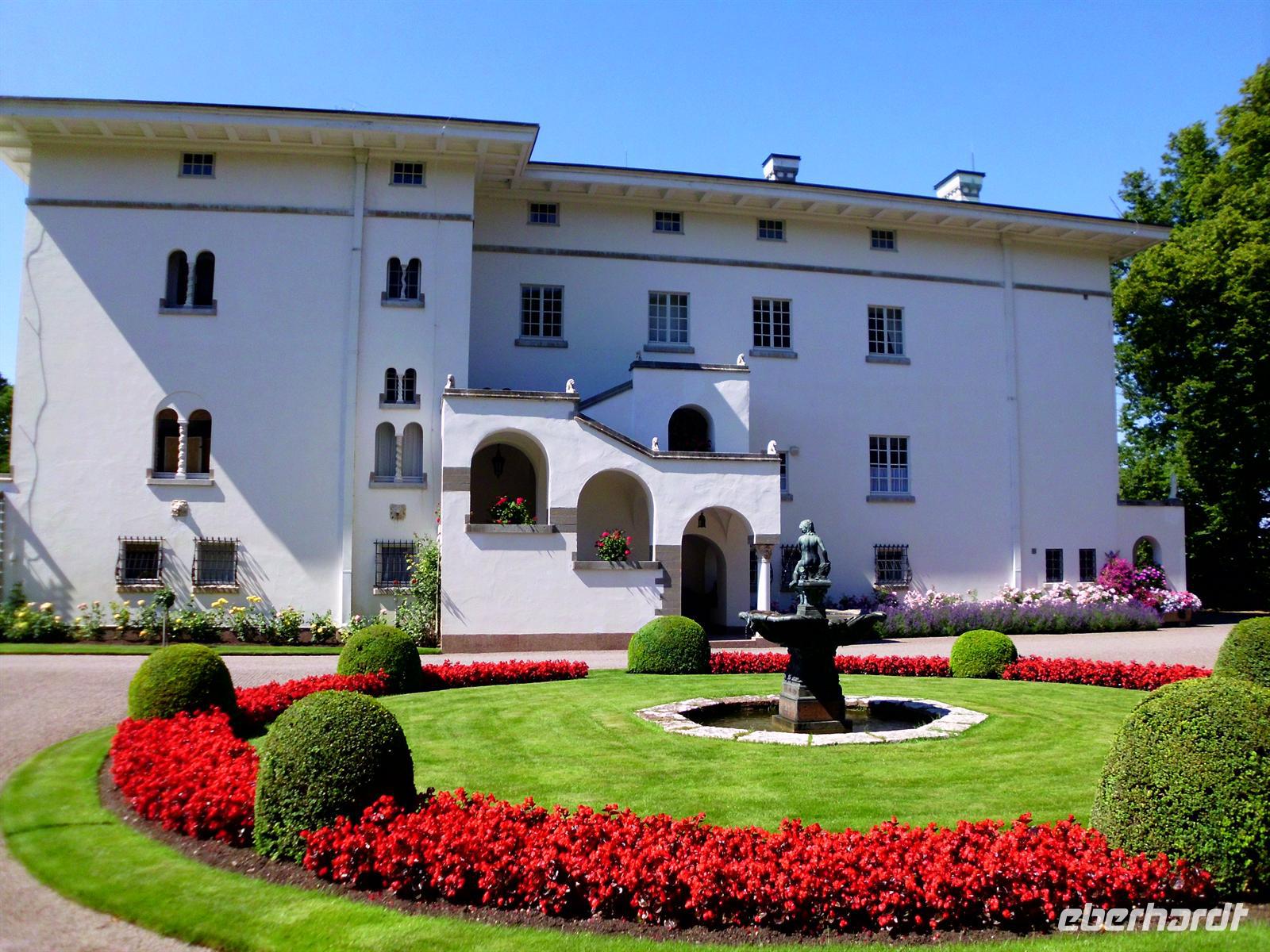 Park mit vielen alten Bäumen und gepflegten Blumenanlagen. Hier führte uns der jetzige „Hausherr“ persönlich durch die Räumlichkeiten und den Park.