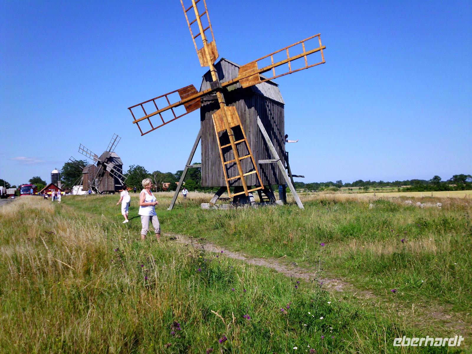 Nun noch ein interessanter Fotostop an den zahlreichen Mühlen Ölands, wo sich auch ein schöner Runenstein befindet. An einer typischen Dorfkirche war dann unser letzter Spaziergang auf der Insel. Über die imposante Ölandbrücke ging es dann zurück zum Hotel.