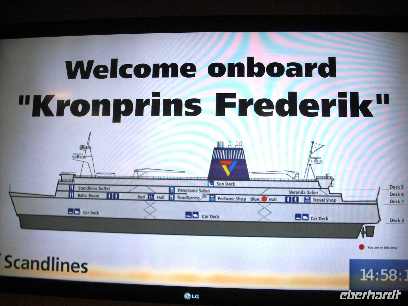 Auf uns wartete jedoch die Fähre von Rostock-Warnemünde nach Gedser und so machten wir keinen Abstecher mehr. Mit einer Servicepause an der Raststätte Recknitz erreichten wir pünktlich den Fährhafen und setzten nach Gedser über. Bei der Weiterfahrt nach Kopenhagen wurde in Alslev die in Dänemark erhobene Straßengebühr entrichtet und noch eine Pause an der Farö-Brücke eingelegt.