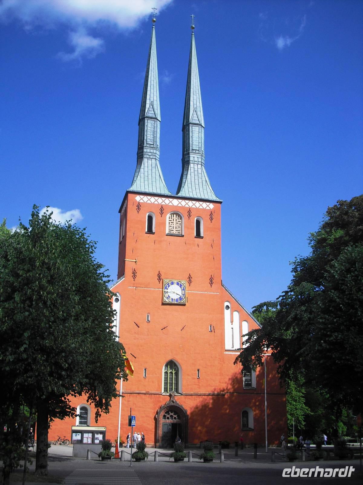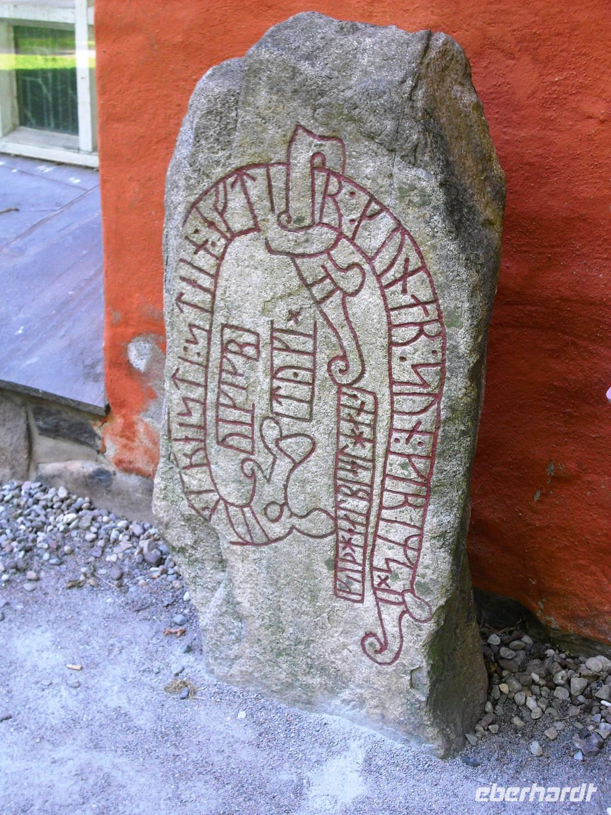 Dann ging die Fahrt in Richtung Växjö. Die Stadt gilt als Hauptstadt des sogenannten Glasreiches. Der dominierende Dom aus dem 14. Jahrhundert und ein an seiner Ostseite stehender Runenstein waren für uns Anlaß, in die Stadt hineinzufahren und eine kleine Pause einzulegen. Immerhin sind Runensteine Erinnerungen z.B. aus der Wikingerzeit (9.Jh.) an Verstorbene, an Gefallene oder auch Denkmäler damaliger eigener Leistungen.
