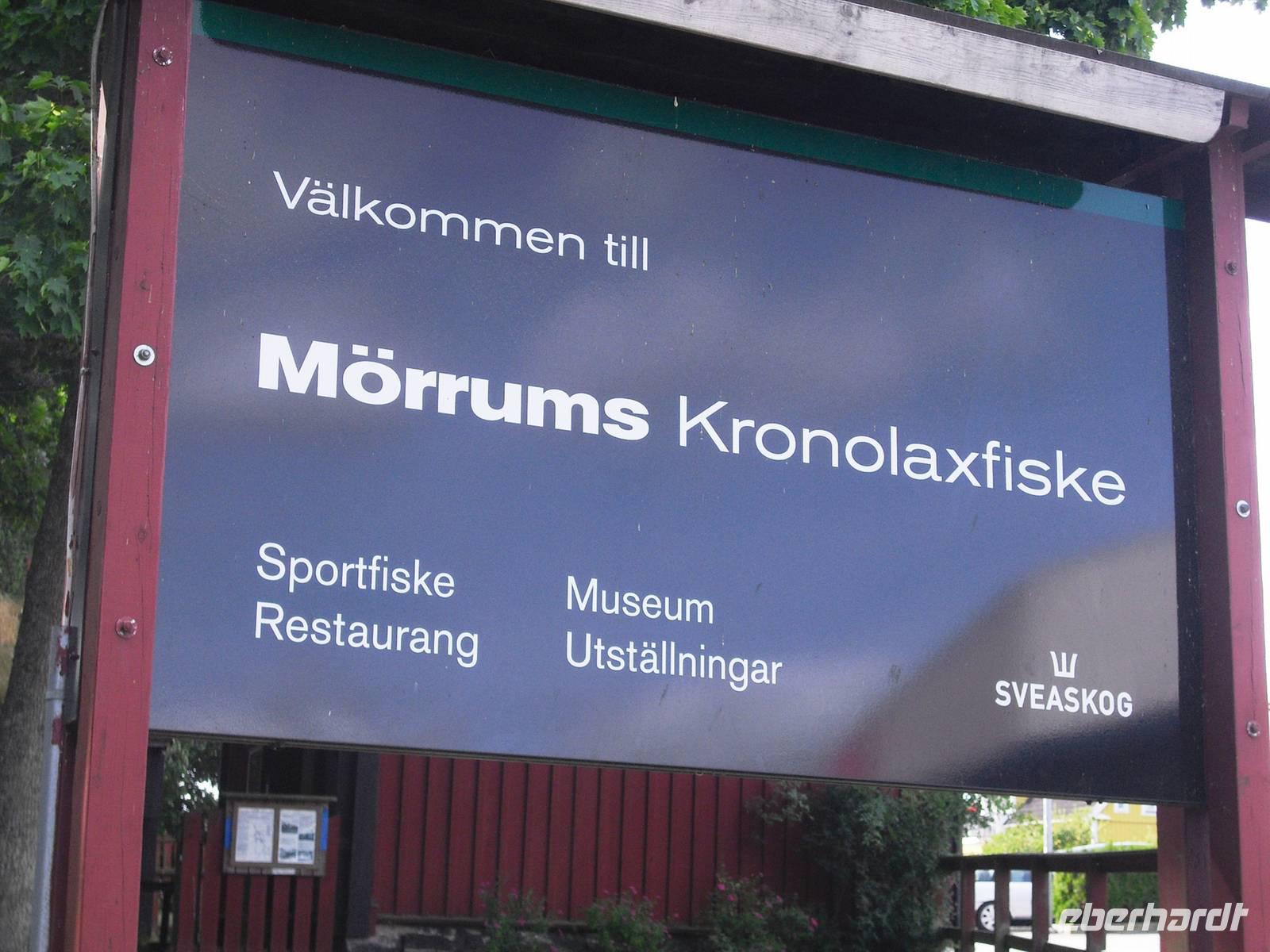 Nach dem Frühstück bei bestem Sommerwetter in Kalmar startend, führte die Strecke zunächst die Europastrasse 22 entlang und an Karlskrona vorbei nach Mörrum. Diesen Ort mit einem der bekanntesten Lachsflüsse Schwedens wollten wir schon kennenlernen. Für einen Fischimbiss, für eine Fotoaufnahme, für einen Bummel am Fluß entlang und natürlich war auch wieder ein WC in der Nähe nahmen wir uns Zeit.