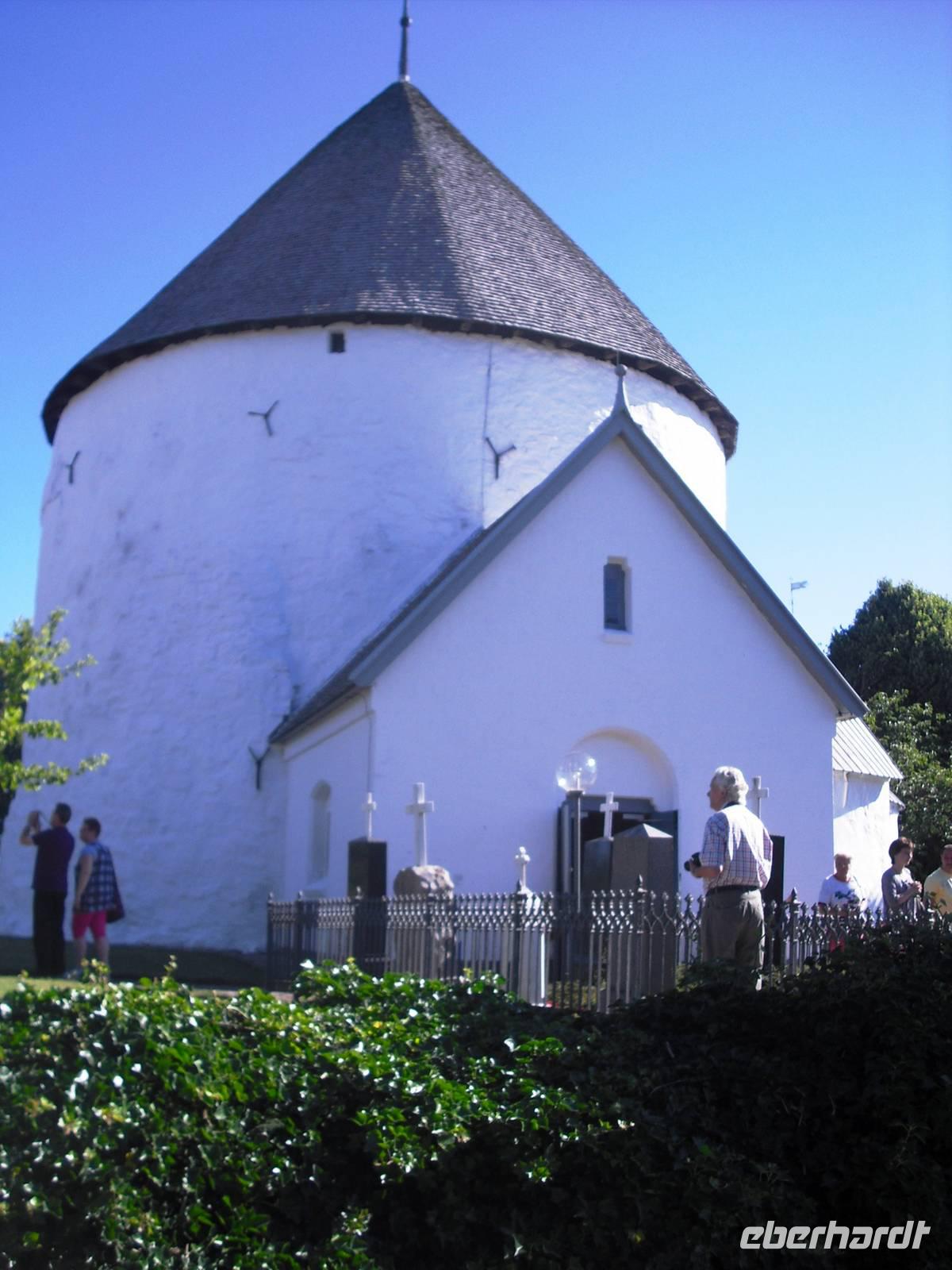 Mit tollem Wetter und guter Stimmung starteten wir nach dem Frühstück zunächst zur Nylars Kirke, eine von vier auf Bornholm existierenden Rundkirchen. Zur Kirche gehört ein freistehender Glockenturm mit einem unteren Stockwerk aus Feldsteinen und einem oberen Stockwerk aus Fachwerk - man nennt das auch gewöhnlicher Bornholmer Typ.