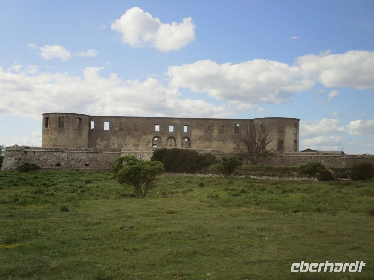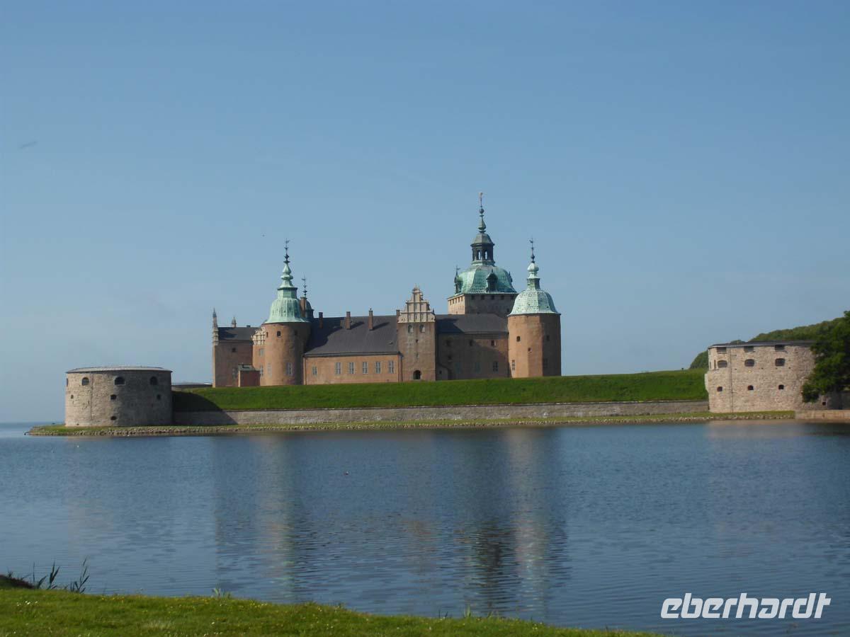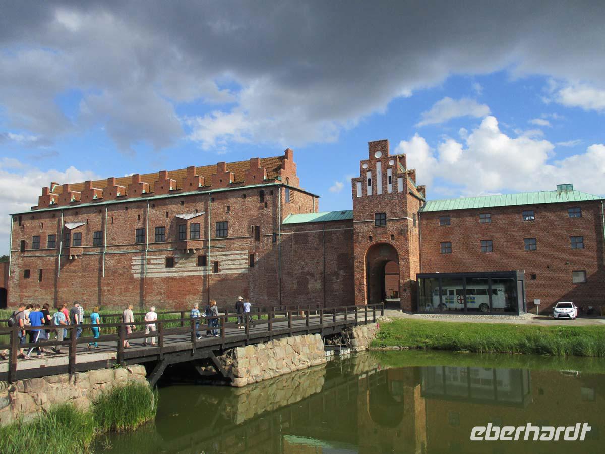 Früher gab es auf der Insel mehr als 1200 typische Windmühlen, von denen heute nur noch ein Bruchteil vorhanden ist. Bei Lerkaka stehen gleich 5 Stück hintereinander und lassen das Bild der erahnen, wie es früher auf der gesamten Insel ausgesehen haben mag. Nach der Besichtigung der Kirche von Gärdslösa, der einzigen mittelalterlich erhaltenen der Insel reisen wir in Ölands größten Ort, nach Borgholm. Hier genießen wir den Sonnenschein bei individuellen Spaziergängen. Einige Gäste ziehen es vor, den Park von Schloss Soliden zu begehen, während wieder andere ein Bad im Kalmarsund bei strahlendem Sonnenschein nehmen. Borgholm wird von einer riesigen Schloßruine überragt, an der wir noch einen Stop einlegen, bevor wir die Insel wieder verlassen. Jedoch nicht, ohne mit Blick auf die über 6 km lange Kalmarsundbrücke mit einem Schluck Sekt auf das Bergfest der Reise anzustoßen.