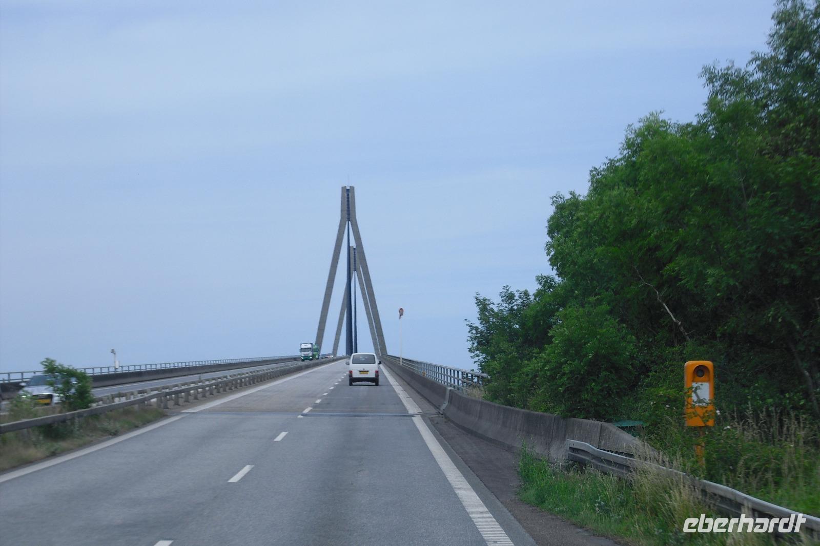Mit dem Reisebus starteten in Dresden die ersten Gäste schon recht früh, fuhren zu weiteren Einstiegsstellen, erlebten einen Fahrerwechsel und machten auch immer wieder zur rechten Zeit eine Pause. Pünktlich erreichten wir den Fährhafen in Rostock-Warnemünde und sahen unser Fährschiff Kronprins Frederik von der Fährgesellschaft Scandlines einlaufen. Vom Außendeck des Schiffes hatten wir einen guten Blick auf die Hafenanlagen, auf Warnemünde und auf ein dort liegendes Kreuzfahrtschiff. Einige Reisegäste sprachen aus, was Sie dachten vor langer Zeit beim Urlaub in Warnemünde, als ein (normal nicht erreichbares) Fährschiff nach Gedser auslief. Heute standen wir alle auf der Fähre und wurden nach Gedser in Dänemark befördert. Hier landeten wir auf der Insel Falster, eine von den etwa 100 bewohnten Inseln bei 474 Inseln insgesamt, die zum Territorium Dänemarks zählen. Einen Aufenthalt legten wir an der Faröbrücke ein. Eigentlich ist es ja eine zweigeteilte Brücke von Falster nach Seeland und wurde 1984 fertiggestellt. Die Südbrücke ist als Schrägseilbrücke, die Nordbrücke als Balkenbrücke gestaltet worden und beide Bauwerke sind in den Verlauf der Europastraßen 47/55 eingebunden als Teil der sogenannten Vogelfluglinie. Seit den 1960er Jahren sind die Verkehrsverbindungen zwischen den Großräumen Kopenhagen und Hamburg traditionell so bezeichnet worden, abgeleitet aus der parallel verlaufenden Flugroute der Kraniche.