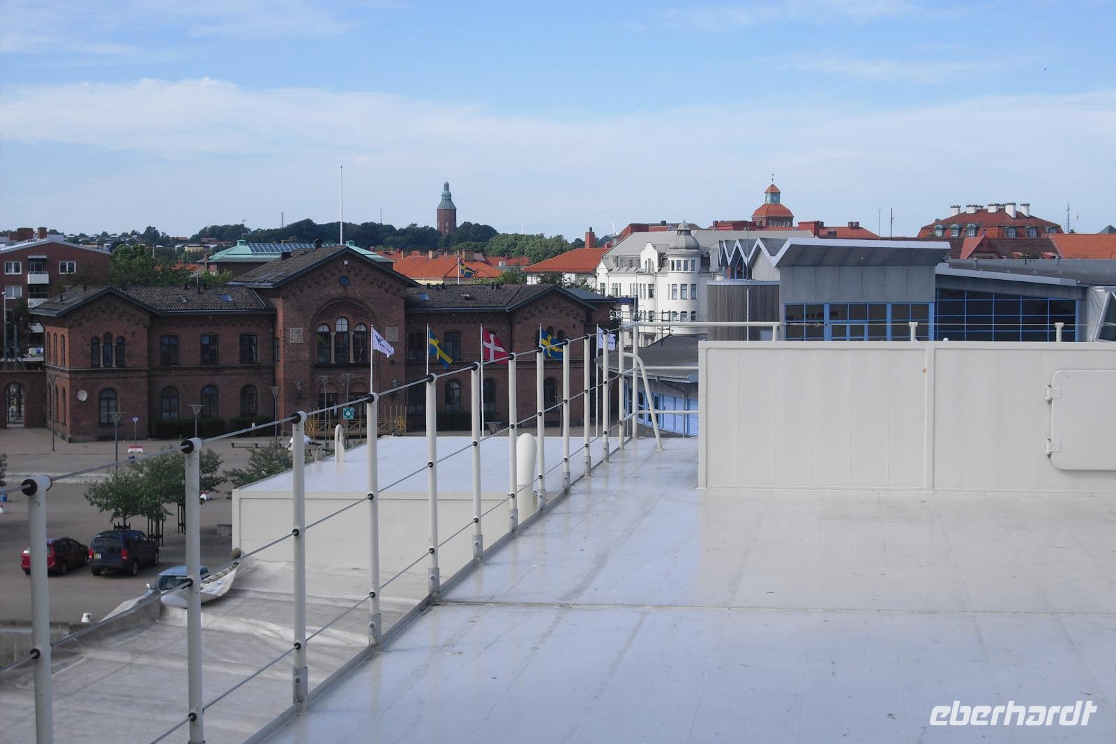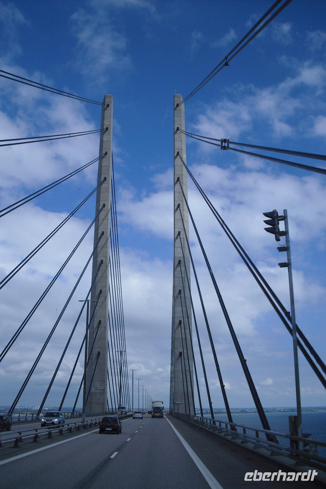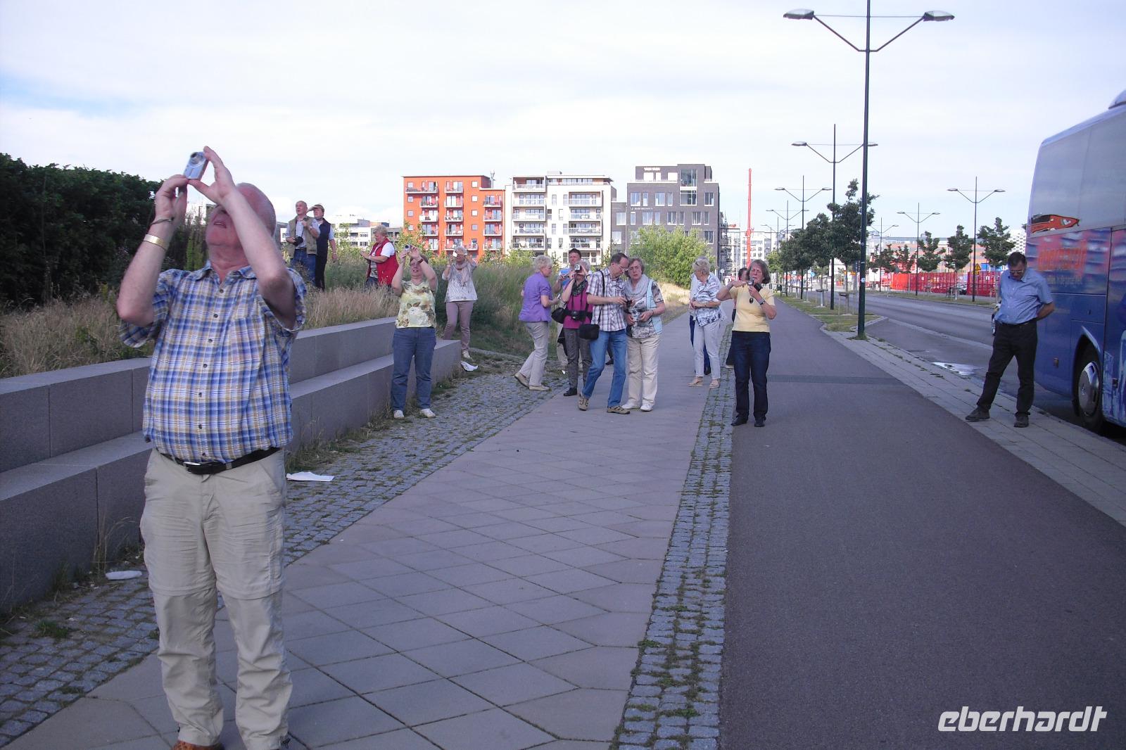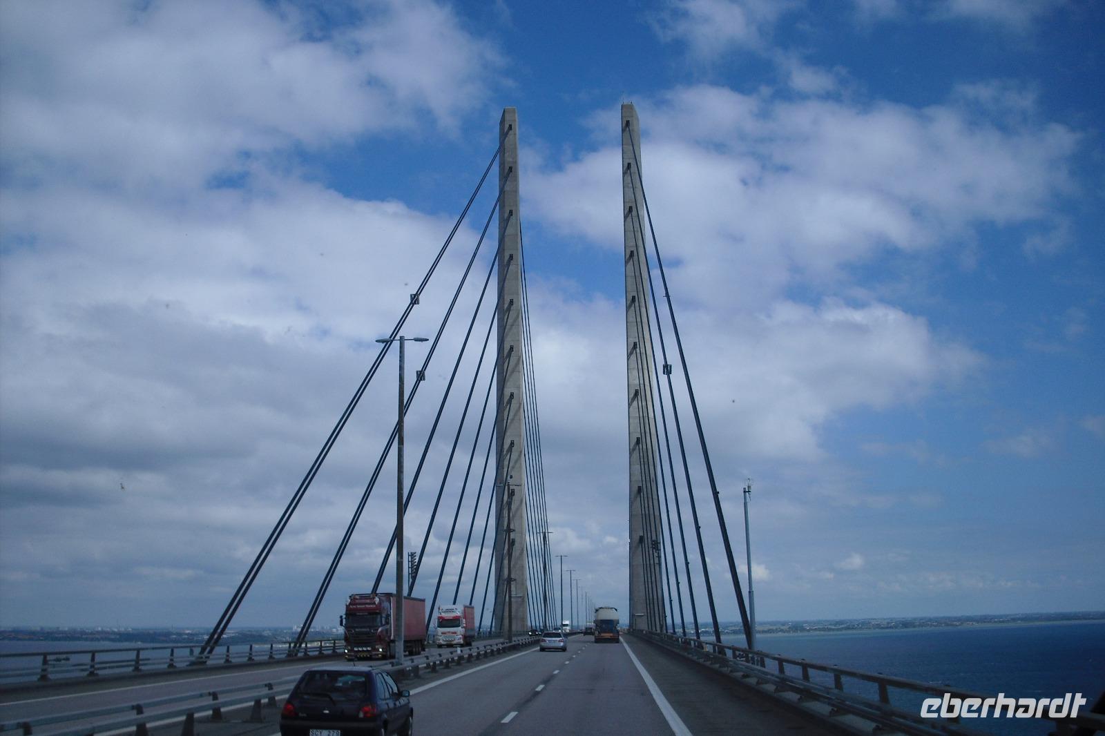 Nach dem Besuch der dänischen Hauptstadt fuhren wir nach Malmö, der drittgrößten Stadt Schwedens - über die bekannte, am 1. Juli 2000 eingeweihte Öresundbrücke. Sie gilt nach wie vor als weltweit längste Schrägseilbrücke für kombinierten Straßen- und Eisenbahnverkehr. In 40 Monaten und mit 90 % Großfertigteilen gebaut, bildet die Brücke zusammen mit dem Drodgentunnel und der künstlich geschaffenen Insel Peberholm die mautpflichtige Öresundverbindung zwischen Dänemark und Schweden. Auf der schwedischen Seite besuchten wir einen Aussichtspunkt für Fotos, aber auch zum Genießen eines Kaffees o.a.