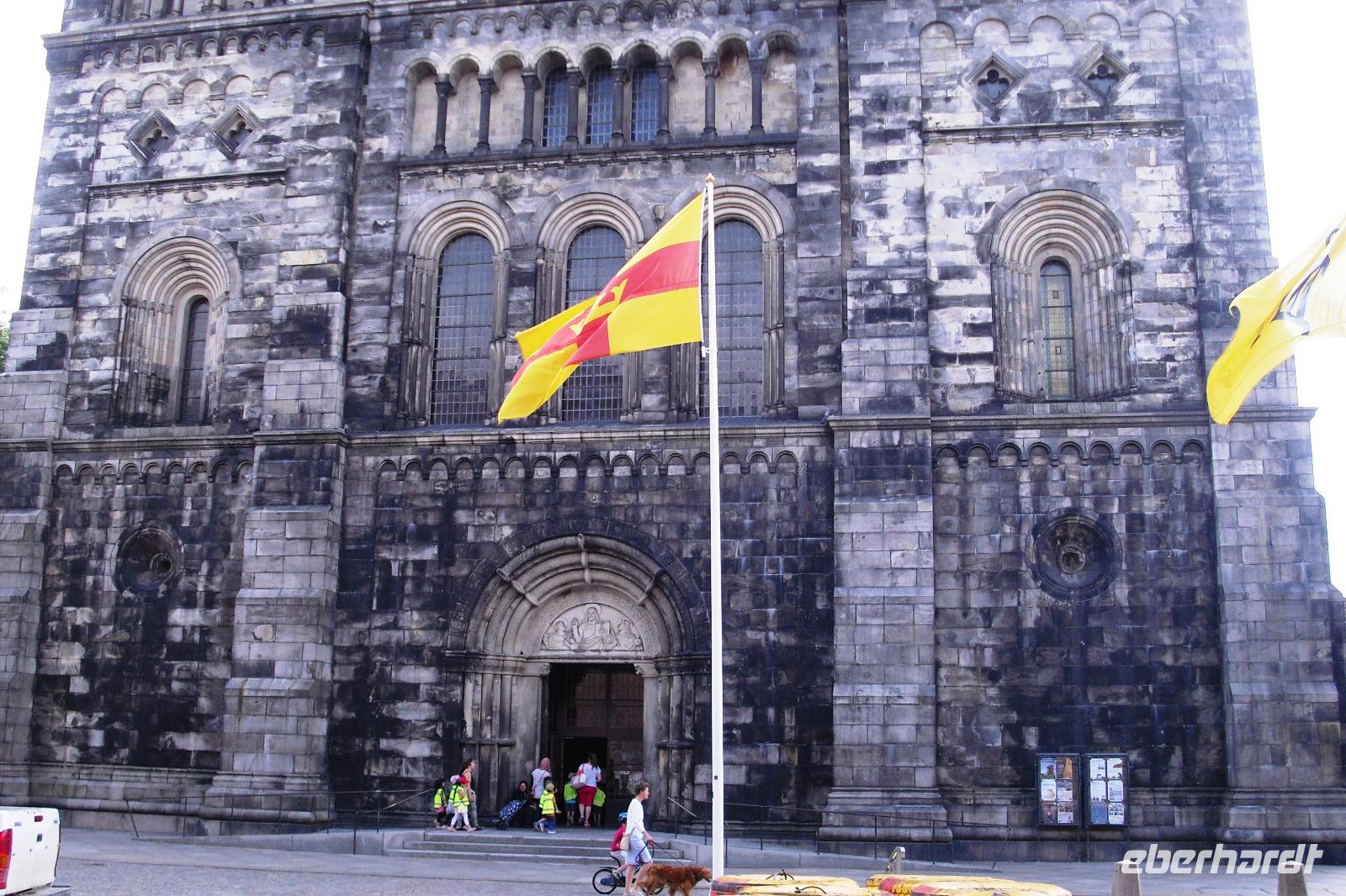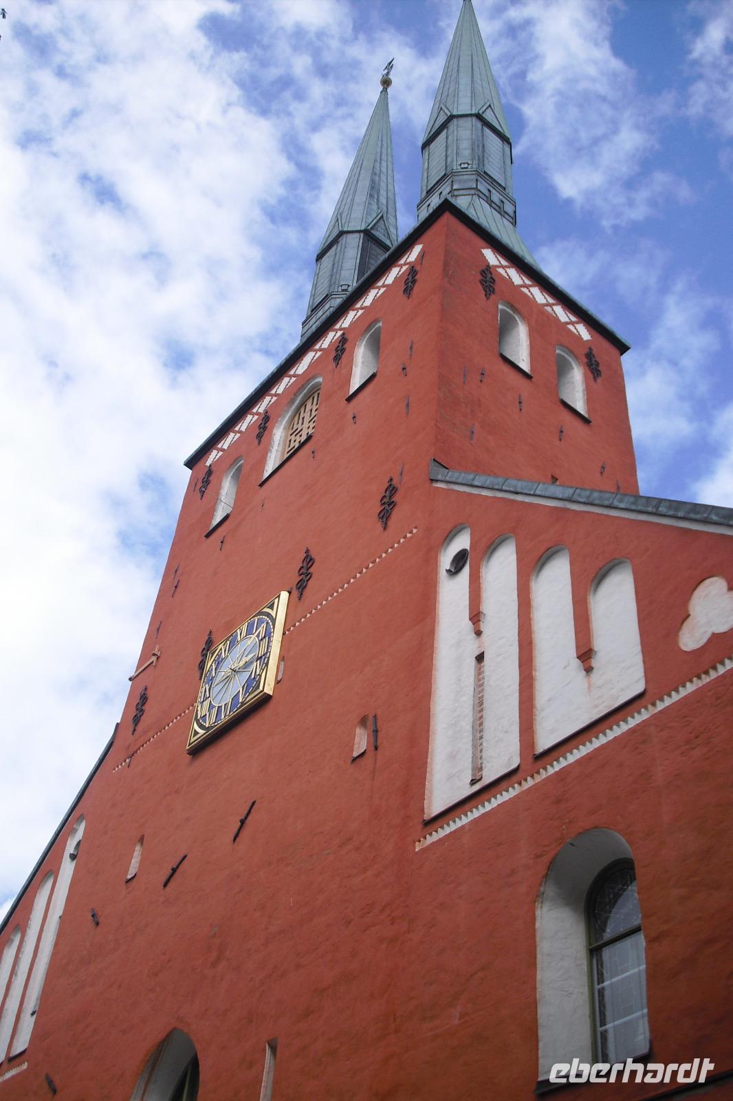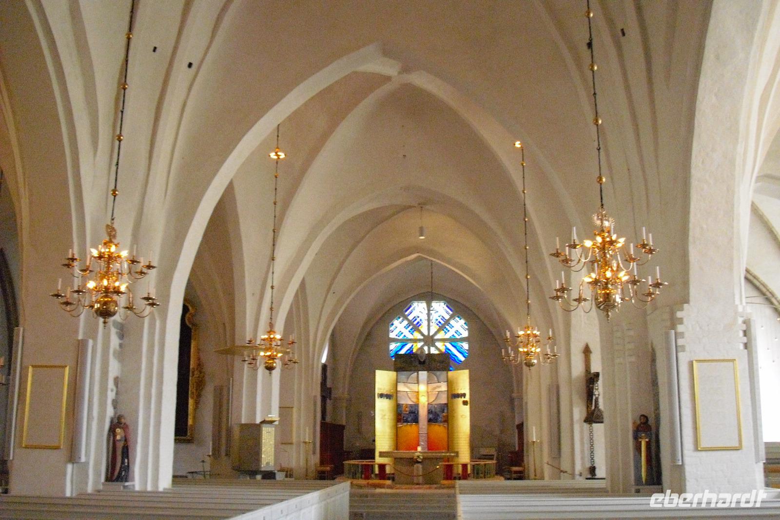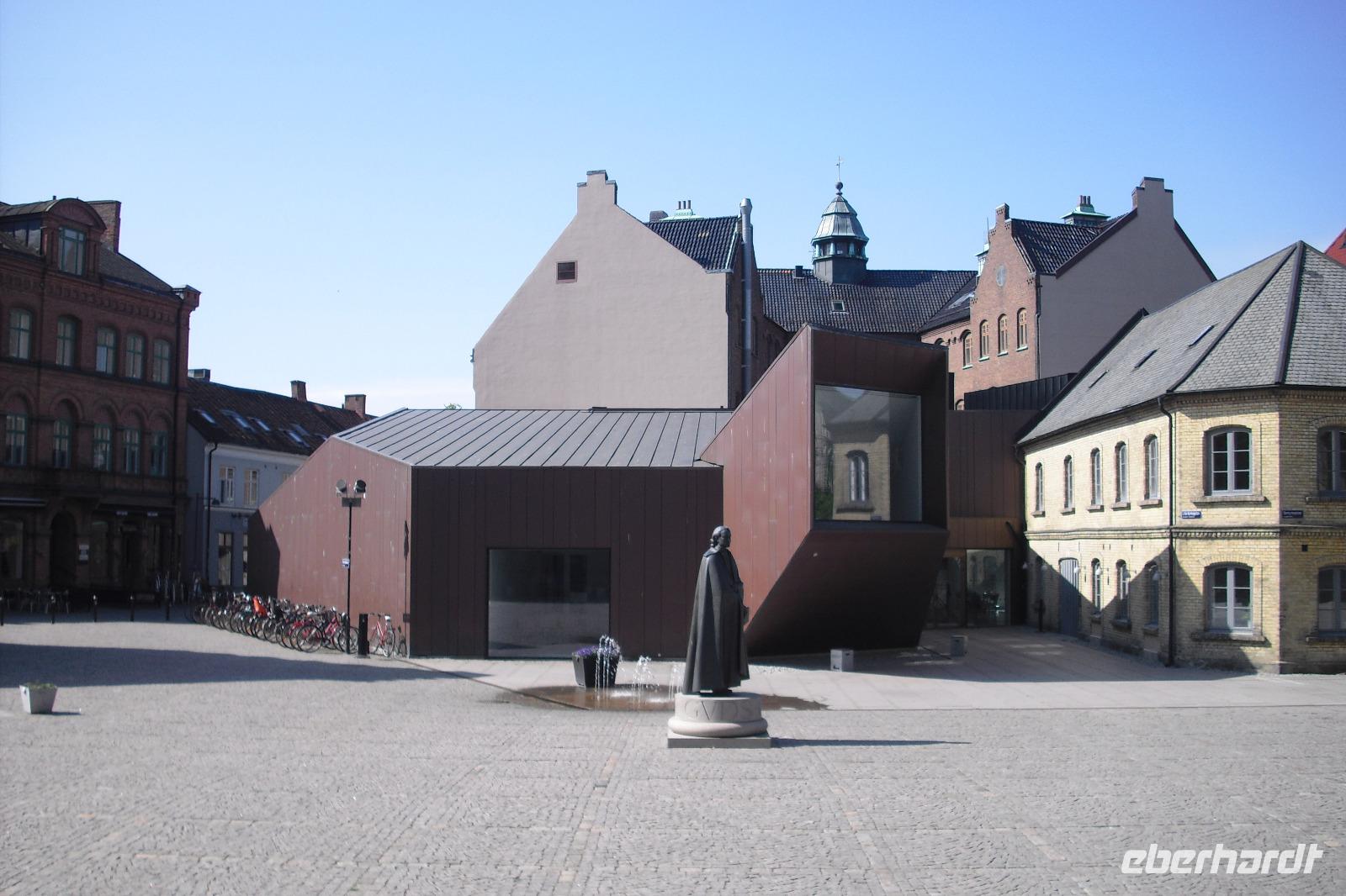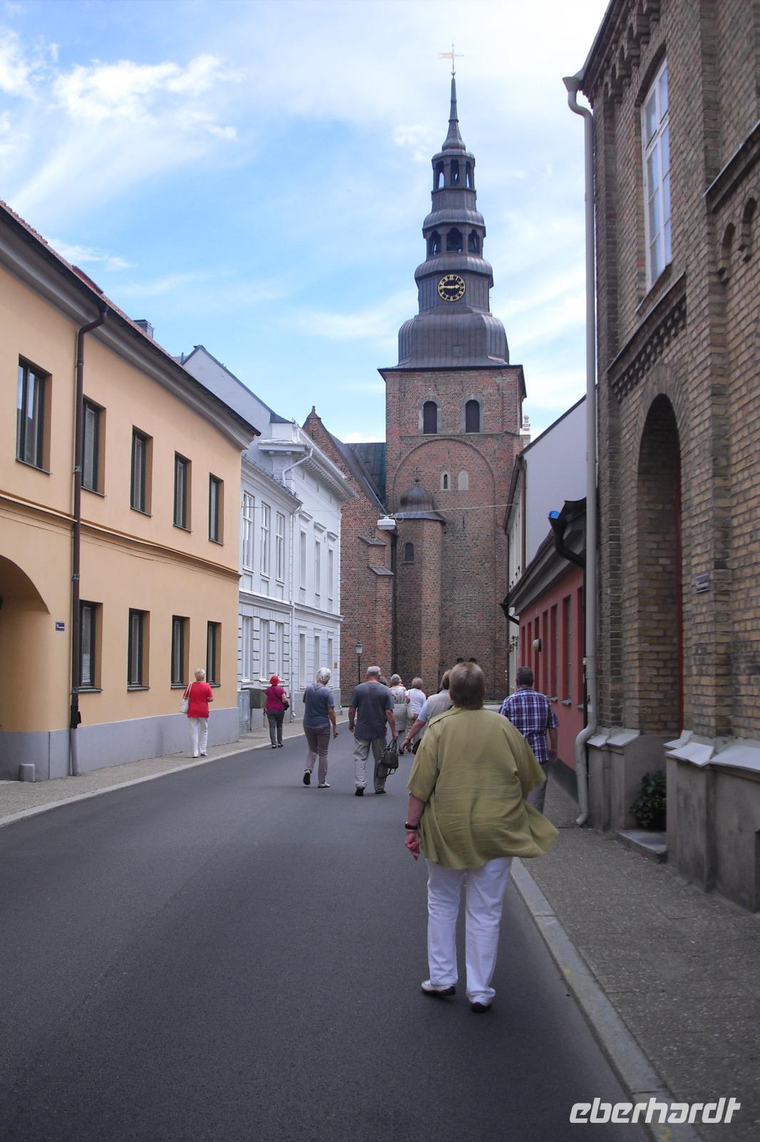 Ein erstes schwedisches Frühstück auf unserer Reise und dann die Abfahrt nach Lund. Diese Stadt ist eine der ältesten Städte Schwedens und wurde vom dänischen König Sven Tveskägg ca. 990 gegründet, die Stadt ist stark von der Universität geprägt und gilt als echte Studentenstadt. Die Universität wurde 1666 gegründet und hat sich im Lauf der Zeit zu einer der wichtigsten Hochschulen Nordeuropas entwickelt. Wir aber statteten dem Dom von Lund einen Besuch ab, wo Monika uns zu einer Führung erwartete. So erfuhren wir u.a. von ihr, daß der Hochaltar des im romanischen Stil errichtete Kirchenbau 1145 eingeweiht wurde und der Dom dem heiligen Laurentius, er ist im Chorraum auf einer Bronzesäule aus dem 14.Jh. zu sehen, geweiht ist. Spannend auch die Geschichte des Riesen Finn in der Krypta des Domes, der aus Zorn wegen einer ausgebliebenen Zahlung seinen eigenen Bau wieder niederreißen wollte, aber vom Strahl der Morgensonne getroffen, schrumpfte und versteinerte. Es war eine kurzweilige Stunde, die uns Monika im Dom führte.