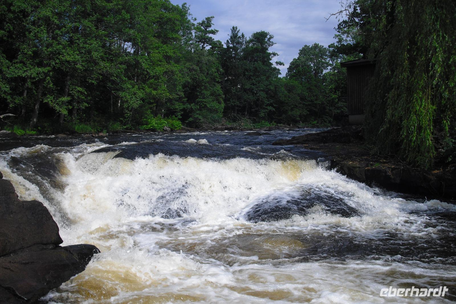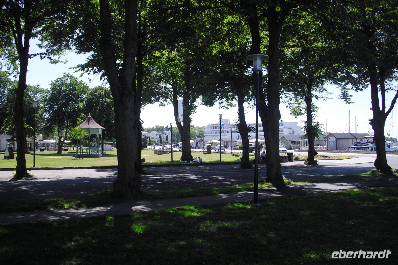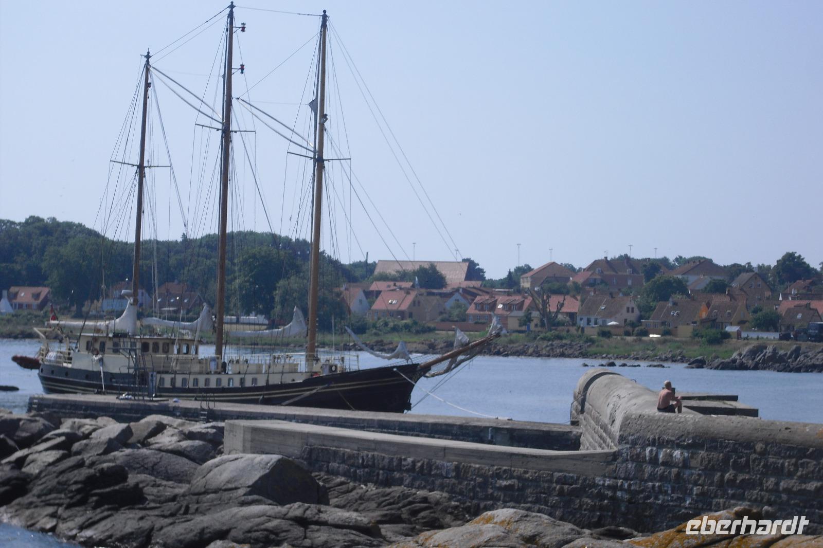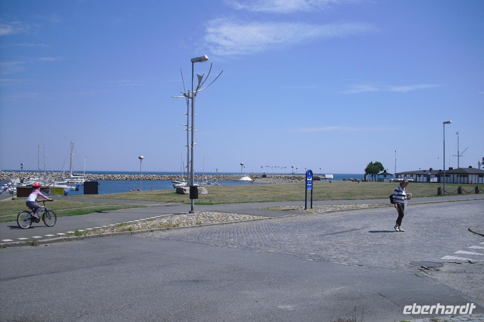Nach dem Motto "Früher Vogel fängt den Wurm" brachen wir nach dem Frühstück auf nach Süden, wollten wir doch nach Bornholm- die dänische Perle der Ostsee. Eine genußvolle Pause legten wir in Mörrum, einem der größten Dörfer in Blekinge und seit Jahrhunderten Zentrum für das Lachsangeln, ein. Auf Schautafeln hat man hier, auch in deutscher Sprache, alles Wichtige und Interessante über die Fische und die Fischerei in der Mörrum erläutert. Abgefahren sind wir dann nach Simrishamn, ein direkt an der Ostsee gelegener Küstenort, und verbrachten die Mittagszeit mit einem Imbiss oder einem kleinen Spaziergang. Das Wetter war uns dabei ein sehr guter, wenn auch manchmal ein zu warmer, Begleiter.