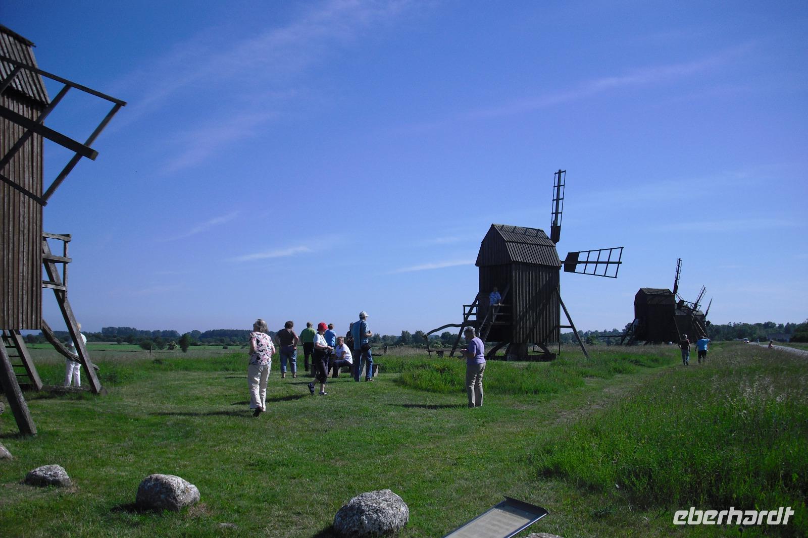 Mit ausreichend Informationen aus dem Touristenbüro versehen begann unsere Rundfahrt zunächst in den südlichen Inselteil. Seit 2000 steht die Agrarlandschaft Südöland auf der Weltkulturerbeliste und umfasst große Teile Südölands, einschließlich dem Stora Alvaret als weltweit einzigartige Karstlandschaft. Wir besuchten dieses steppenartige Areal mit seiner besonderen Flora und Fauna. Durch schmucke Orte und vorbei an Burg Eketorp, Ölands einzige vollständig erforschte Fluchtburg, gelangten wir an die südlichste Spitze der Insel mit einem markanten Leuchtturm. Hier legten wir eine Mittagspause ein und der Reiseleiter bat bei bestem Wetter zum "Sektempfang". Dann widmeten wir dem nördlichen Teil der Insel unsere Aufmerksamkeit. Vorbei an Schloß Borgholm bzw. der beeindruckenden Ruine, es war einst eine der wichtigsten Verteidigungsanlagen des schwedischen Reiches, fuhren wir nach Borgholm und machten einen längeren Aufenthalt. Einige wollten baden bei diesem Wetter, andere wollten noch etwas einkaufen und einige wollten sich einfach nur urlaubsgemäß treibenlassen. Mit einem Fotostopp an einer ganzen Reihe der typischen Windmühlen auf Öland endete schließlich der Tag und wir fuhren zum Hotel in Kalmar zurück. Nach der Verabschiedung von Siegfried war noch Zeit zum Erholen bis zum Abendessen.