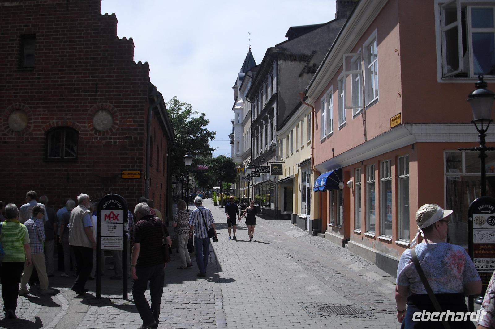 1908 wurde die Anlage an den Graf Philipp Bonde verkauft und dessen Familie besitzt und bewirtschaftet es noch heute. Der Graf persönlich führte uns durch seinen Rosengarten und wir konnten sein Zuhause im wahrsten Sinne erleben. Regelmäßig finden heute Kunstausstellungen und Konzerte im Bosjökloster statt. Unser nächstes Ziel war Växjö, Residenzstadt der historischen Provinz Smaland und heimliche Hauptstadt des sogenannten Glasreiches. Auf Grund der alten Grenze zwischen Dänemark und Schweden wurde die Stadt oft verwüstet, konnte aber auch vom Grenzhandel profitieren. Die Innenstadt wird dominiert vom Dom aus dem 14.Jh., an dessen Ostseite ein stattlicher Runenstein steht. Aufgerichtet