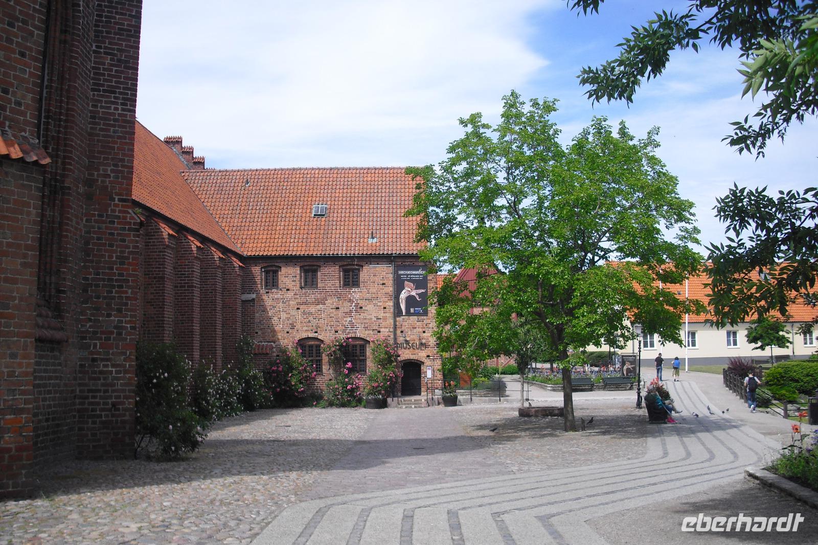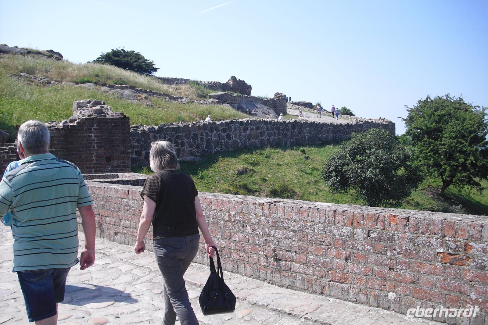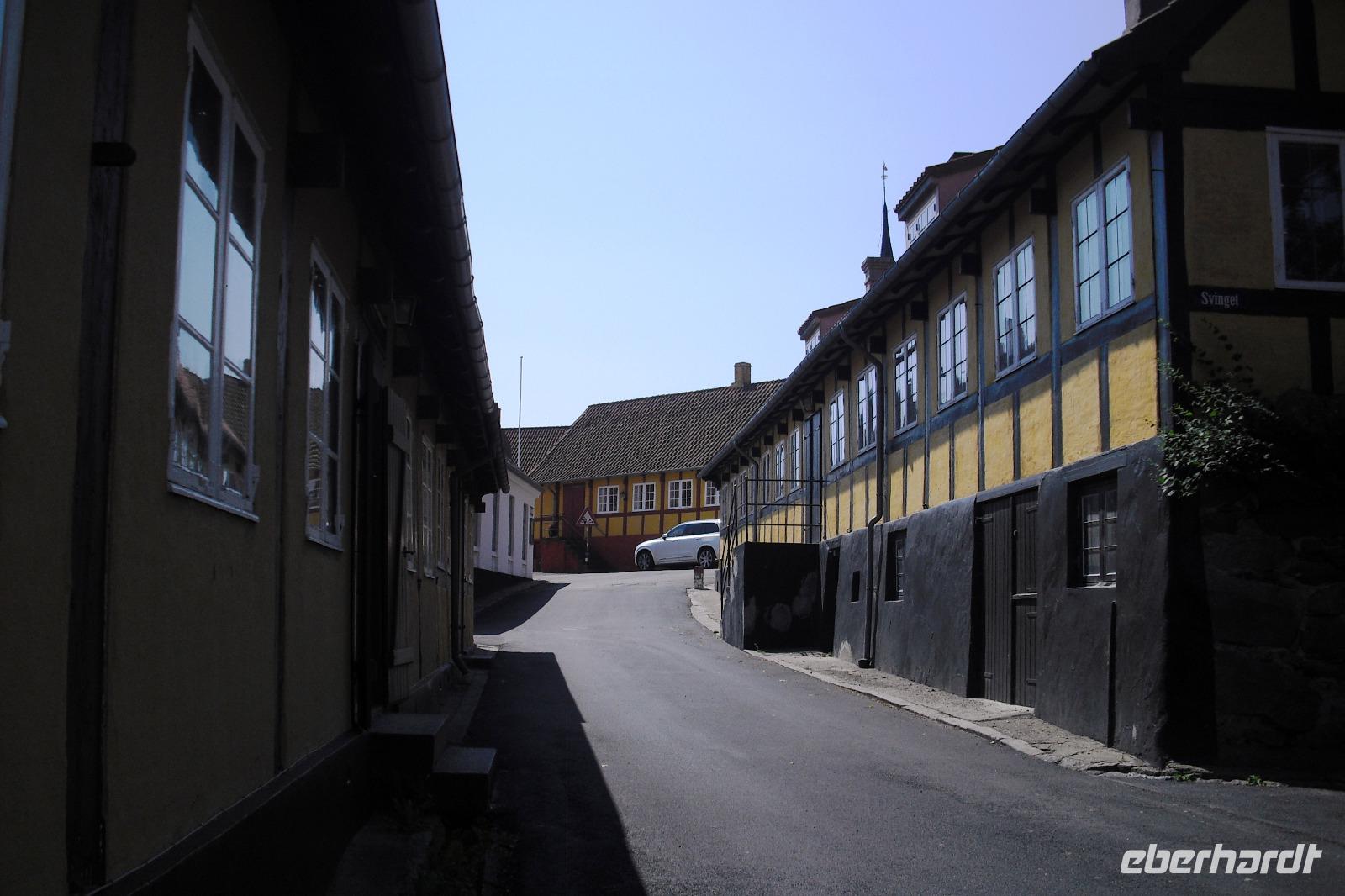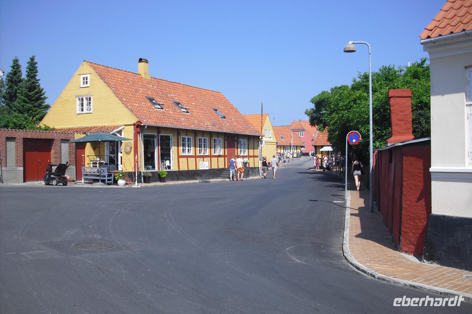 Nicht verpassen darf man bei einem Aufenthalt auf Bornholm die größte Burgruine Skandinaviens zu besuchen, Hammershus. Das machten wir gestärkt nach dem Imbiss in Hasle, denn Hammershus ist eine weitläufige Anlage. Die ältesten Teile stammen aus der Zeit um 1250, später wurde immer wieder und kräftig umgebaut. Als Verteidigungsanlage wurde die Burg um 1600 bedeutungslos, da die Kraft der Schusswaffen sich erhöhte. Zeitweise bediente man sich auch an der Burgruine als Materialspender. So wurde die Hauptwache in Roenne 1744 aus Steinen von Hammershus erbaut. Ein guter Grund nun Roenne einen Besuch abzustatten. Bei bestem Wetter flanierten wir an der St. Nicolai Kirche vorbei, um durch noch ursprünglich erhaltene Stadtteile mit Gebäuden um 1800 errichtet, ein ursprüngliches Stadtbild kennenzulernen. Beispiel war hier die Straße Vimmelskaftet und das älteste private Theater Dänemarks von 1823. Als größte Stadt Bornholms und von Deutschen während des zweiten Weltkriegs besetzt, wurde der Ort von der sowjetischen Luftwaffe schwer bombardiert. Der deutsche Kommandant auf Bornholm lehnte eine Kapitulation ab.