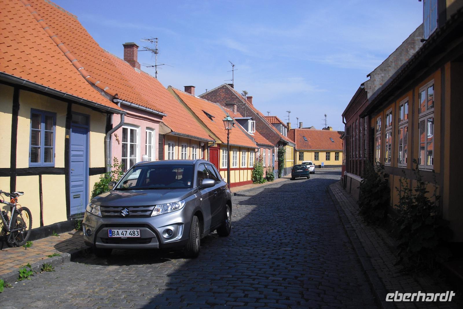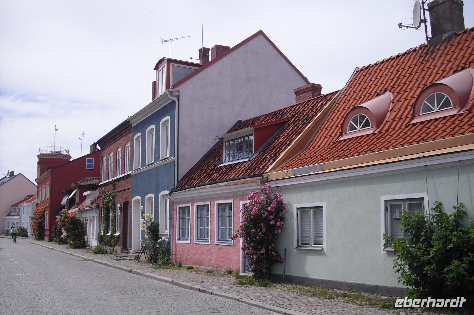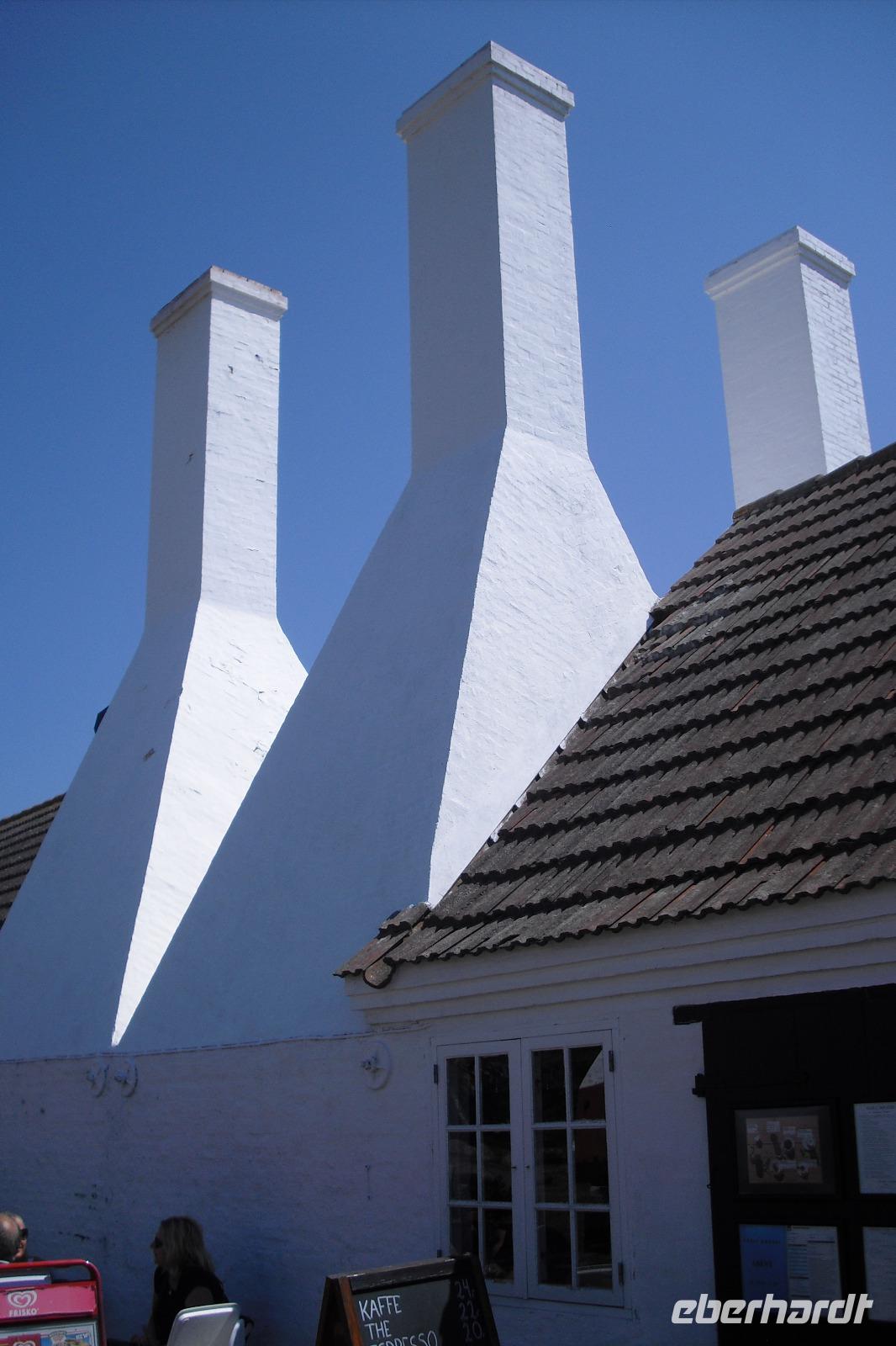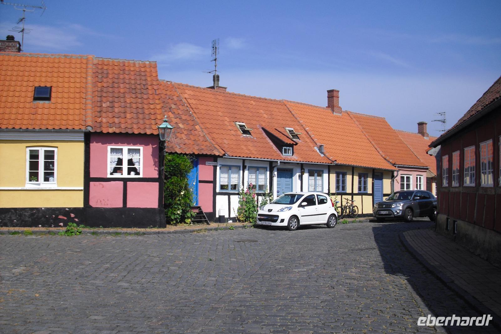 Nicht verpassen darf man bei einem Aufenthalt auf Bornholm die größte Burgruine Skandinaviens zu besuchen, Hammershus. Das machten wir gestärkt nach dem Imbiss in Hasle, denn Hammershus ist eine weitläufige Anlage. Die ältesten Teile stammen aus der Zeit um 1250, später wurde immer wieder und kräftig umgebaut. Als Verteidigungsanlage wurde die Burg um 1600 bedeutungslos, da die Kraft der Schusswaffen sich erhöhte. Zeitweise bediente man sich auch an der Burgruine als Materialspender. So wurde die Hauptwache in Roenne 1744 aus Steinen von Hammershus erbaut. Ein guter Grund nun Roenne einen Besuch abzustatten. Bei bestem Wetter flanierten wir an der St. Nicolai Kirche vorbei, um durch noch ursprünglich erhaltene Stadtteile mit Gebäuden um 1800 errichtet, ein ursprüngliches Stadtbild kennenzulernen. Beispiel war hier die Straße Vimmelskaftet und das älteste private Theater Dänemarks von 1823. Als größte Stadt Bornholms und von Deutschen während des zweiten Weltkriegs besetzt, wurde der Ort von der sowjetischen Luftwaffe schwer bombardiert. Der deutsche Kommandant auf Bornholm lehnte eine Kapitulation ab.
