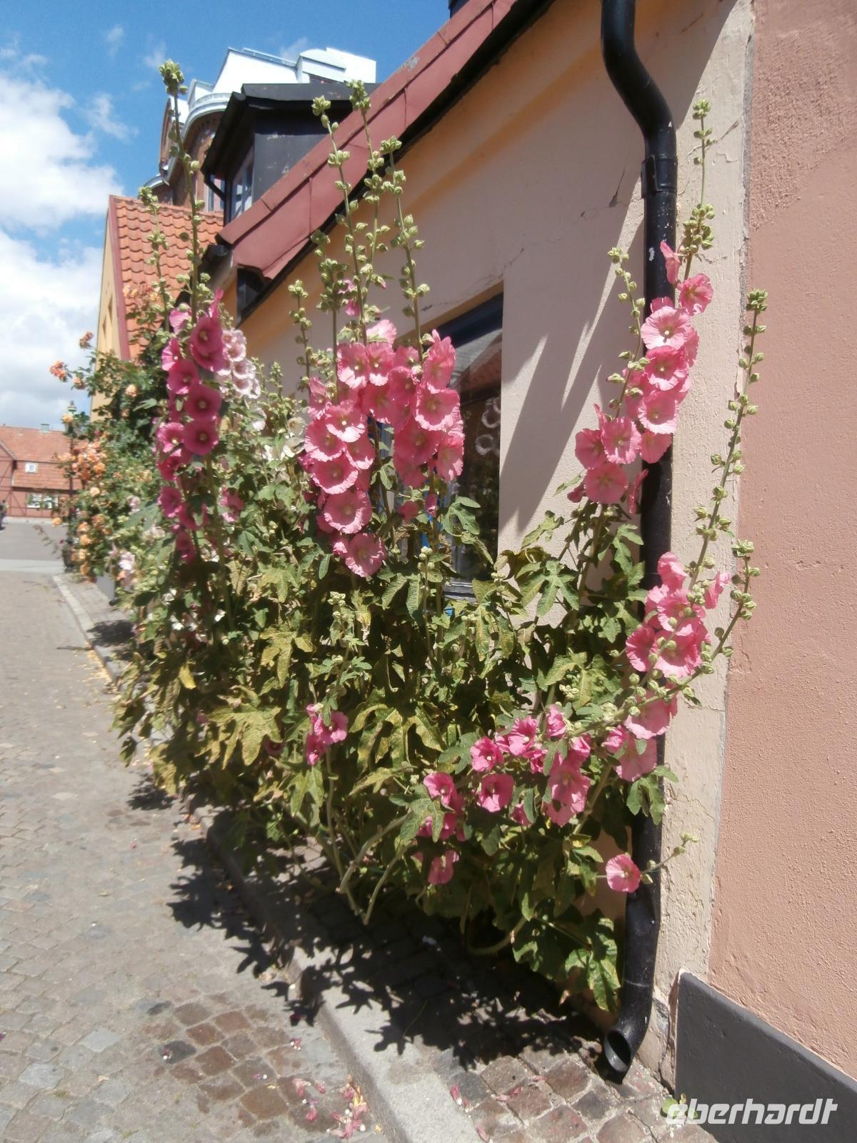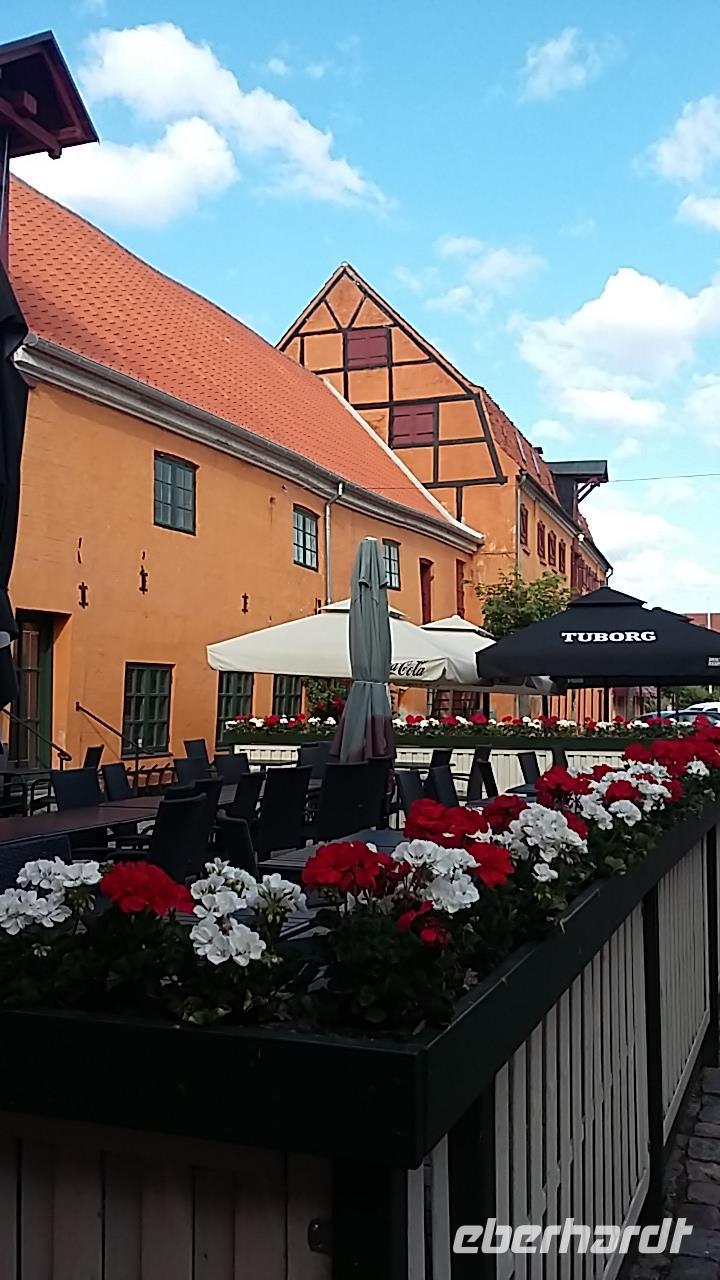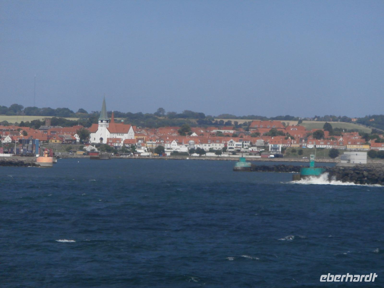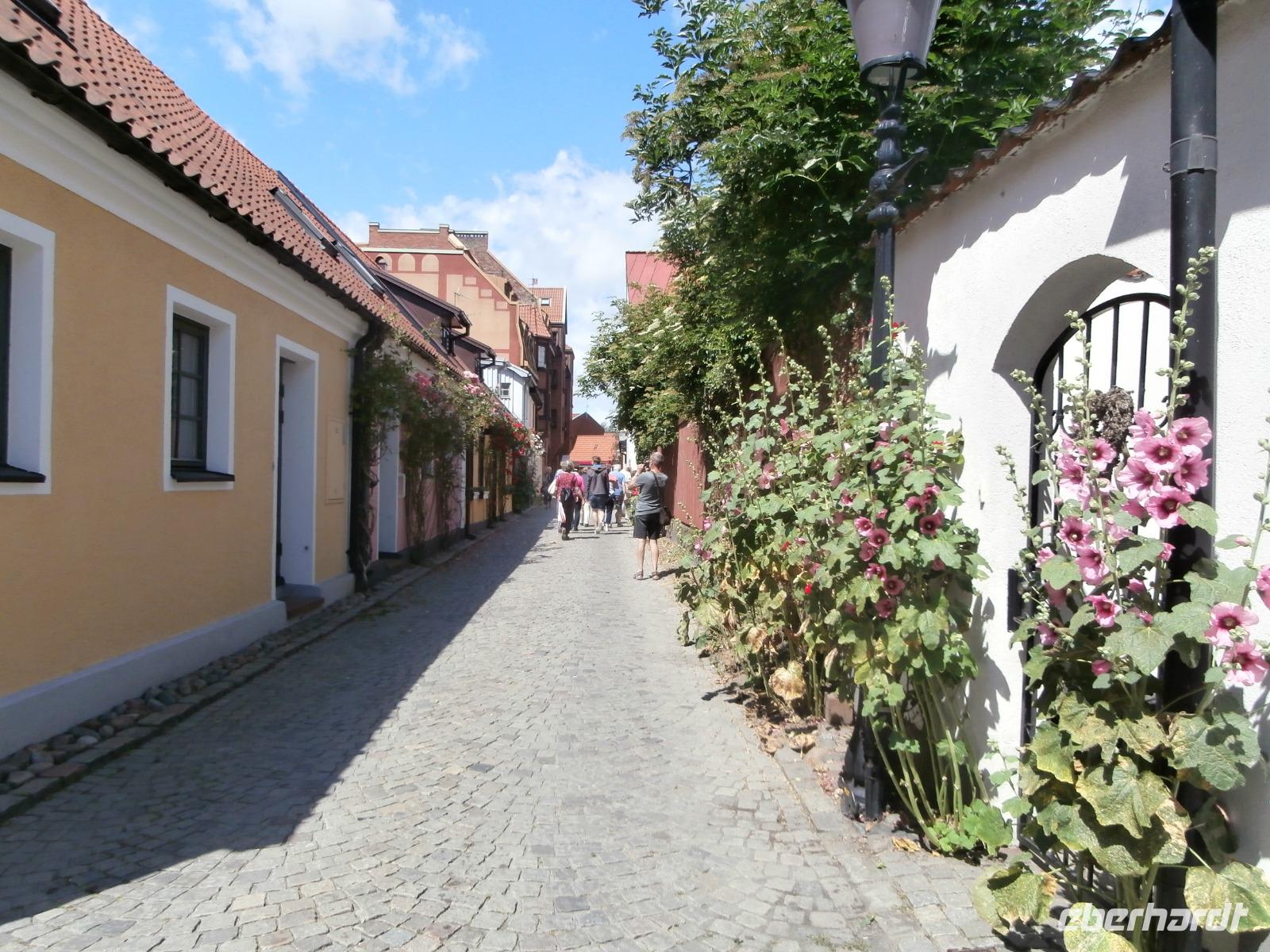 Die angekündigte Abkühlung lässt dann doch auf sich warten, aber wir sind früh gestartet und haben auf unserer Fahrt hinunter nach Ystad schönes Wetter. In Mörrum, einem der größeren Dörfer in der Region Blekinge, stoppen wir, hier an der Lachstreppe ohne Lachse zu dieser Zeit, ist die Pause fällig und es ist angenehm in der Umgebung mit viel Wasser. 2 Supermärkte in nächster Nähe lohnen auch den Besuch. Im mittelalterlichen Ystad werden wir gegen 13 Uhr zur Stadtführung erwartet, Sehr schöne, alte Fachwerkhäuser sind noch erhalten geblieben, mit Stockrosen und liebevollen Details vor den Häusern, traumhaft der Anblick. Wir bummeln erzählend durch die kopfsteingepflasterten Gassen mit Agneta und wandeln auf den Spuren von Kommissar Wallander und damit verbunden Henning Mankell. Sein literarisches Werk hat man in 40 Sprachen übersetzt und wir werden auf einige Szenen aus den Krimis hingewiesen. Leider müssen wir die Stadtführung im Eiltempo erledigen, da unsere Fähre zur Insel Bornhom früh geht und nicht auf uns warten wird. Etwas stürmige See haben wir zur Überfahrt, leicht verspätet legen wir am Nachmittag in Rönne, dem Hauptort auf Bornholm, an. Wir sind auf dieser Reise wieder auf dänischem Boden. Die Fahrt zum Hotel dauert knapp 30 Minuten, schnell haben wir eingecheckt und dann wartet die Ostsee mit einem traumhaft weißen Sandstrand in nächster Nähe auf uns. Einige Reisegäste sind noch vorm Abendessen baden gewesen. Am Abend wird uns ein leckeres Menü serviert, sehr zufrieden geht es heute in die Betten.