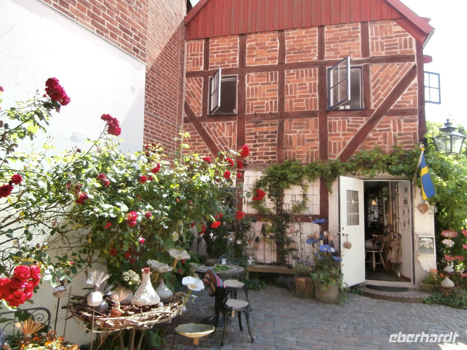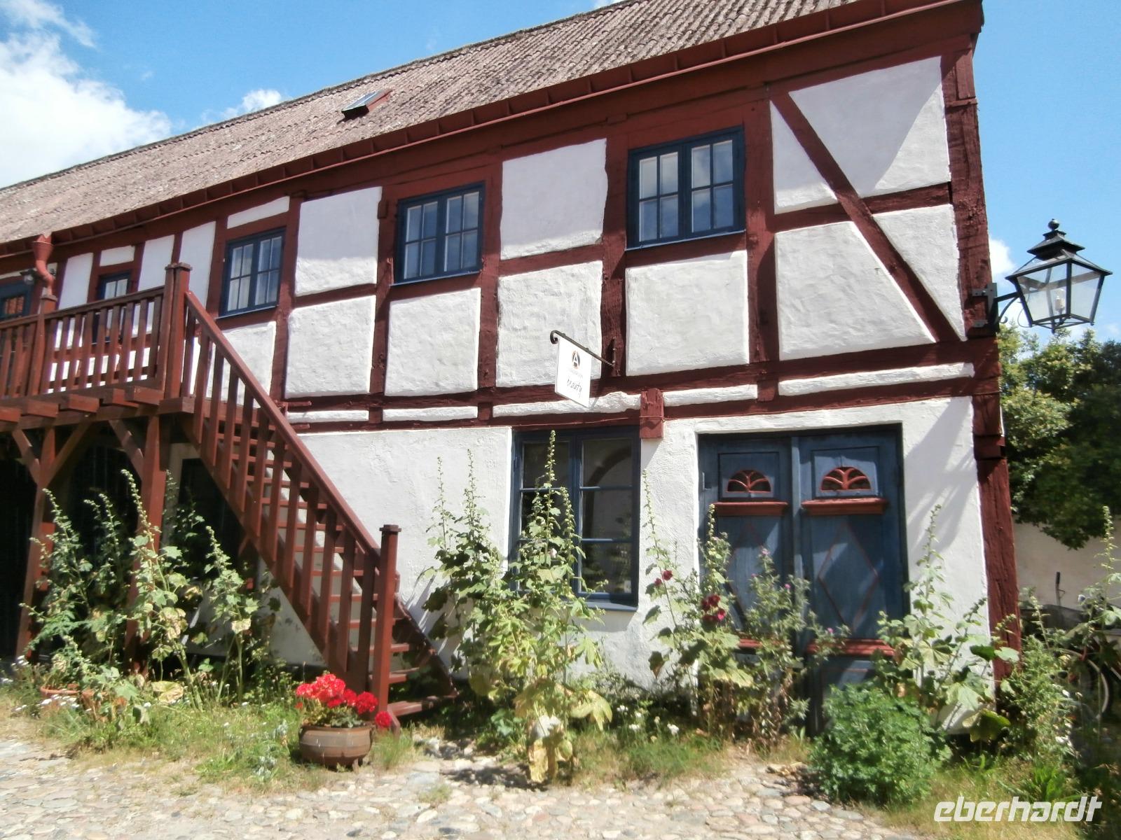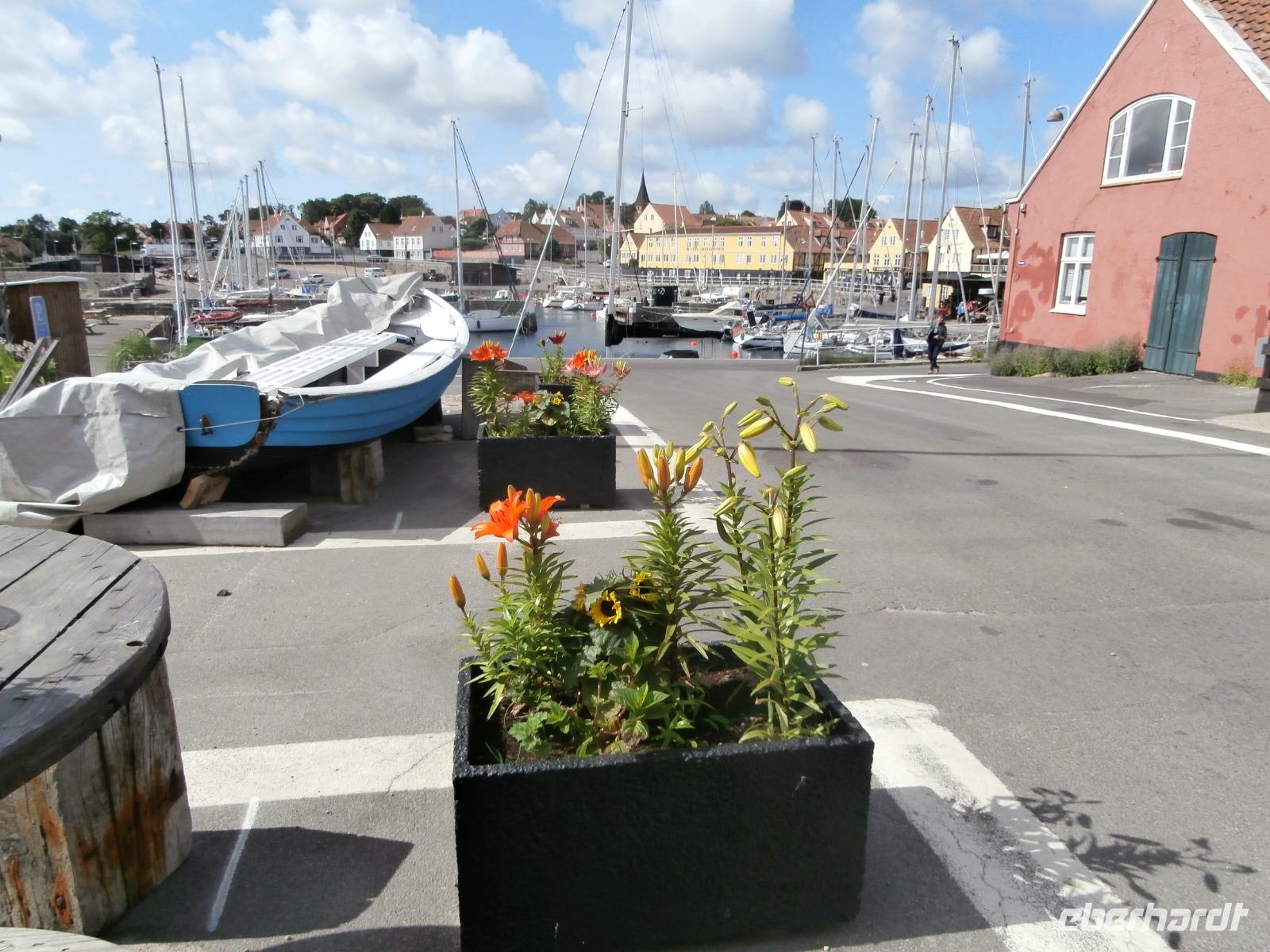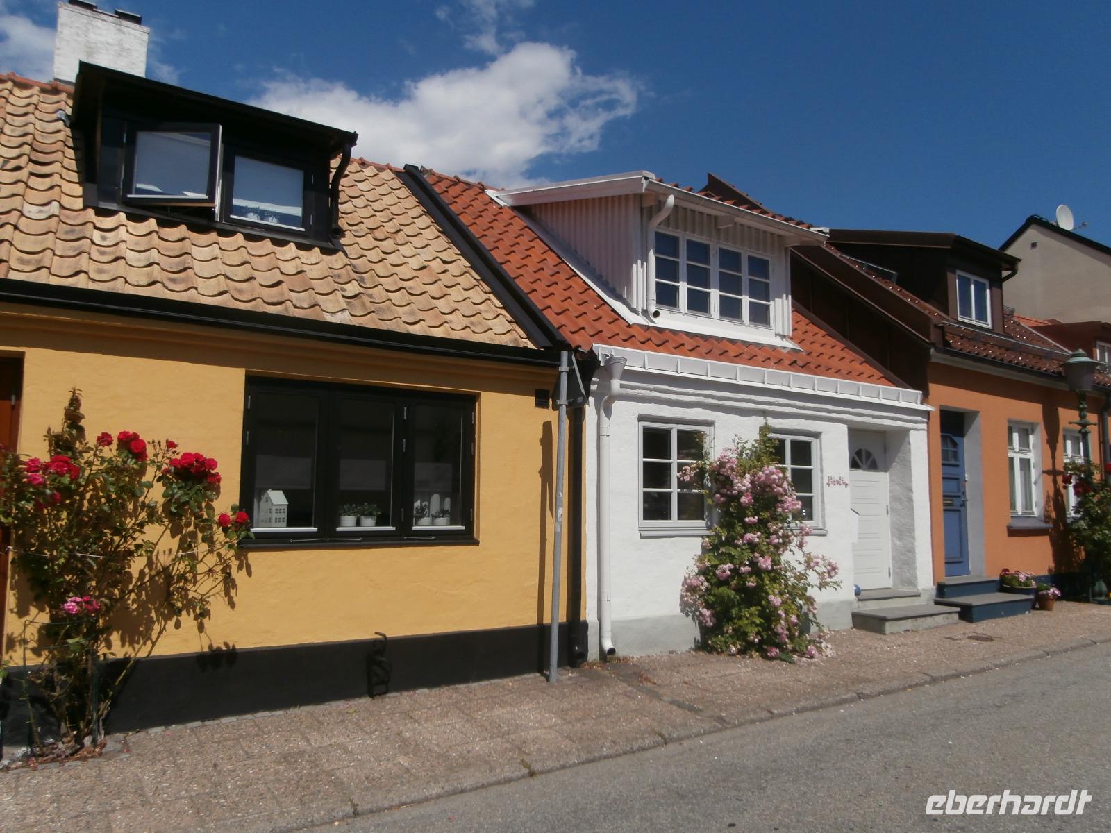 Die angekündigte Abkühlung lässt dann doch auf sich warten, aber wir sind früh gestartet und haben auf unserer Fahrt hinunter nach Ystad schönes Wetter. In Mörrum, einem der größeren Dörfer in der Region Blekinge, stoppen wir, hier an der Lachstreppe ohne Lachse zu dieser Zeit, ist die Pause fällig und es ist angenehm in der Umgebung mit viel Wasser. 2 Supermärkte in nächster Nähe lohnen auch den Besuch. Im mittelalterlichen Ystad werden wir gegen 13 Uhr zur Stadtführung erwartet, Sehr schöne, alte Fachwerkhäuser sind noch erhalten geblieben, mit Stockrosen und liebevollen Details vor den Häusern, traumhaft der Anblick. Wir bummeln erzählend durch die kopfsteingepflasterten Gassen mit Agneta und wandeln auf den Spuren von Kommissar Wallander und damit verbunden Henning Mankell. Sein literarisches Werk hat man in 40 Sprachen übersetzt und wir werden auf einige Szenen aus den Krimis hingewiesen. Leider müssen wir die Stadtführung im Eiltempo erledigen, da unsere Fähre zur Insel Bornhom früh geht und nicht auf uns warten wird. Etwas stürmige See haben wir zur Überfahrt, leicht verspätet legen wir am Nachmittag in Rönne, dem Hauptort auf Bornholm, an. Wir sind auf dieser Reise wieder auf dänischem Boden. Die Fahrt zum Hotel dauert knapp 30 Minuten, schnell haben wir eingecheckt und dann wartet die Ostsee mit einem traumhaft weißen Sandstrand in nächster Nähe auf uns. Einige Reisegäste sind noch vorm Abendessen baden gewesen. Am Abend wird uns ein leckeres Menü serviert, sehr zufrieden geht es heute in die Betten.