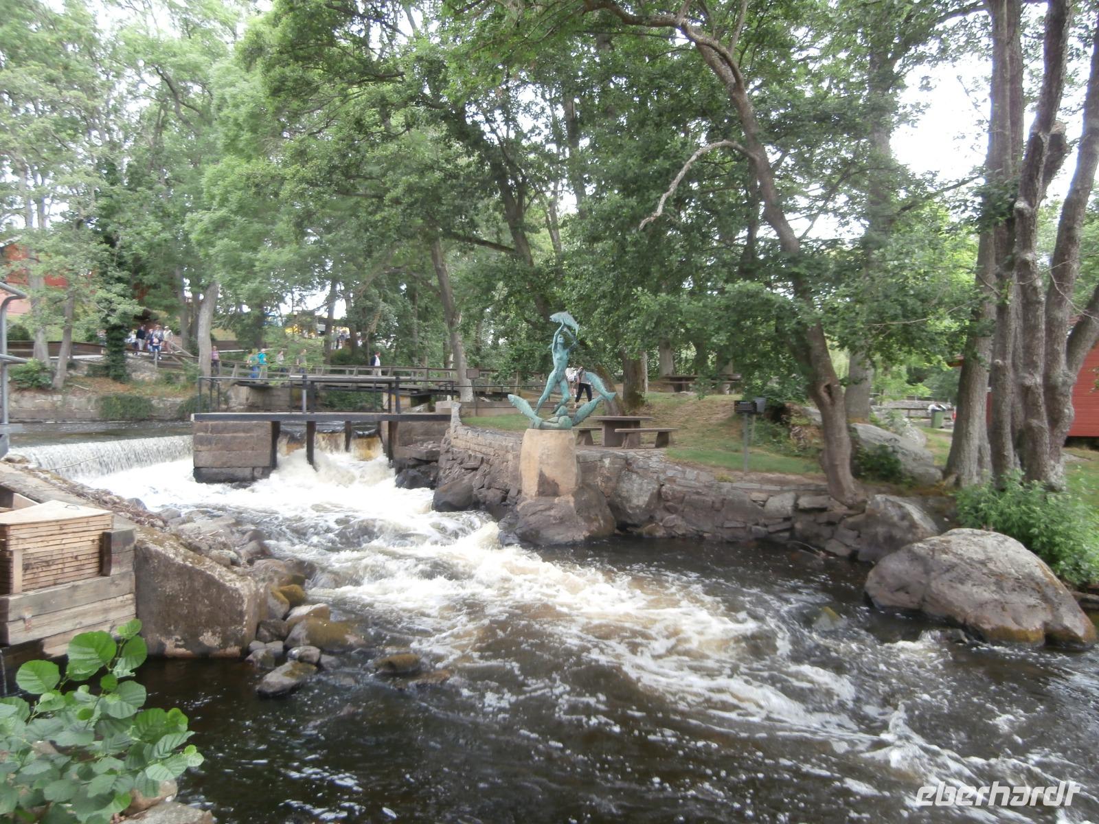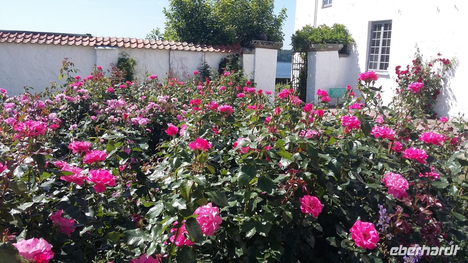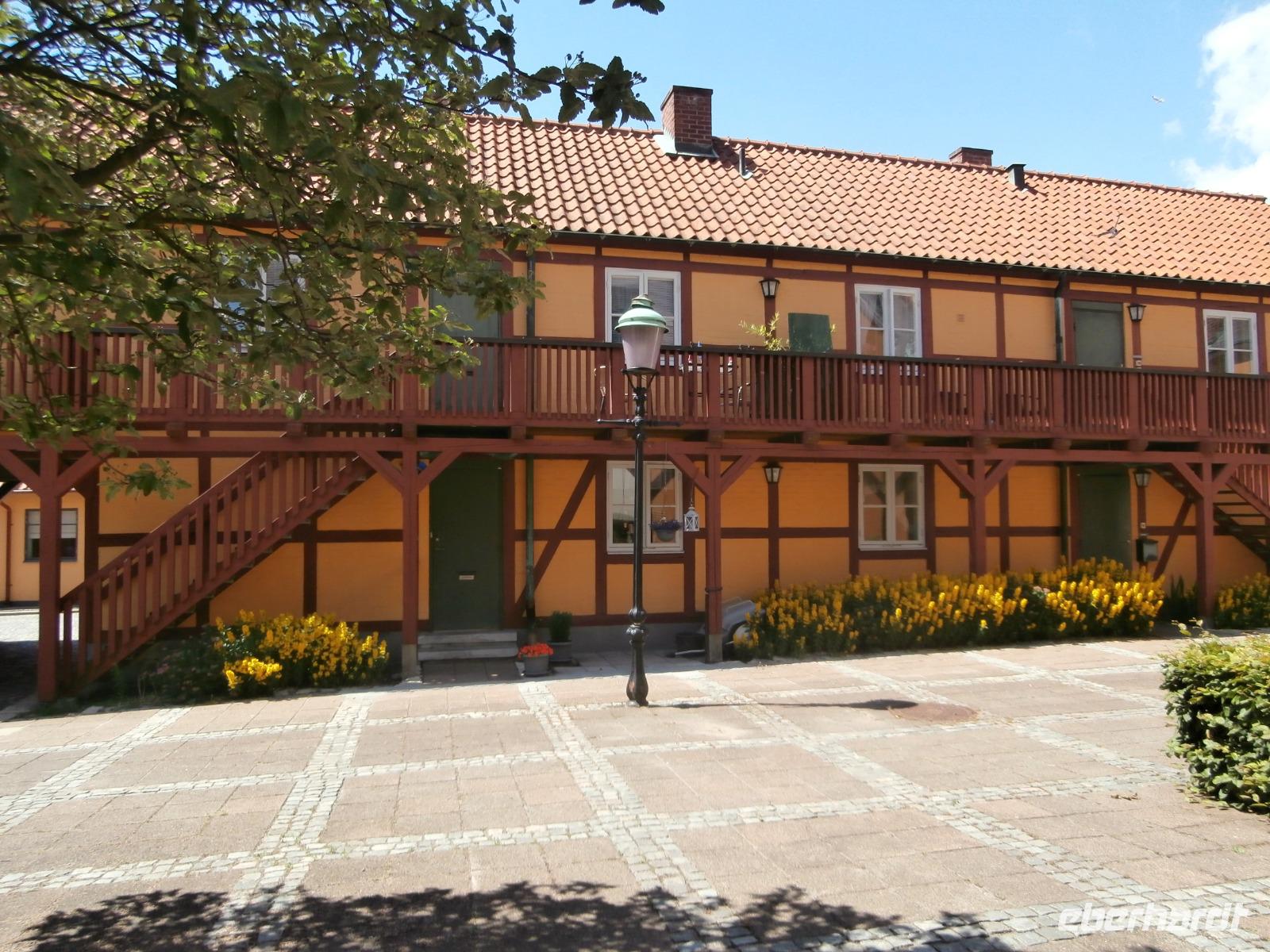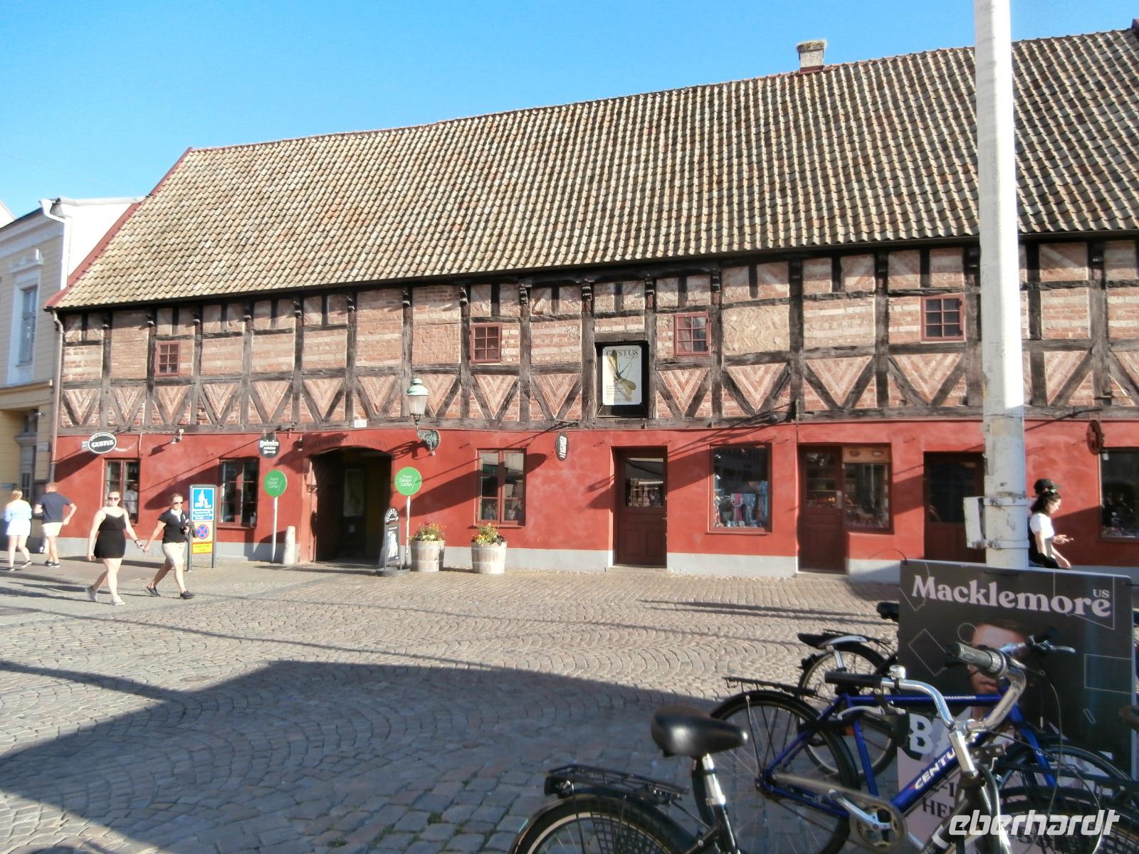 Die angekündigte Abkühlung lässt dann doch auf sich warten, aber wir sind früh gestartet und haben auf unserer Fahrt hinunter nach Ystad schönes Wetter. In Mörrum, einem der größeren Dörfer in der Region Blekinge, stoppen wir, hier an der Lachstreppe ohne Lachse zu dieser Zeit, ist die Pause fällig und es ist angenehm in der Umgebung mit viel Wasser. 2 Supermärkte in nächster Nähe lohnen auch den Besuch. Im mittelalterlichen Ystad werden wir gegen 13 Uhr zur Stadtführung erwartet, Sehr schöne, alte Fachwerkhäuser sind noch erhalten geblieben, mit Stockrosen und liebevollen Details vor den Häusern, traumhaft der Anblick. Wir bummeln erzählend durch die kopfsteingepflasterten Gassen mit Agneta und wandeln auf den Spuren von Kommissar Wallander und damit verbunden Henning Mankell. Sein literarisches Werk hat man in 40 Sprachen übersetzt und wir werden auf einige Szenen aus den Krimis hingewiesen. Leider müssen wir die Stadtführung im Eiltempo erledigen, da unsere Fähre zur Insel Bornhom früh geht und nicht auf uns warten wird. Etwas stürmige See haben wir zur Überfahrt, leicht verspätet legen wir am Nachmittag in Rönne, dem Hauptort auf Bornholm, an. Wir sind auf dieser Reise wieder auf dänischem Boden. Die Fahrt zum Hotel dauert knapp 30 Minuten, schnell haben wir eingecheckt und dann wartet die Ostsee mit einem traumhaft weißen Sandstrand in nächster Nähe auf uns. Einige Reisegäste sind noch vorm Abendessen baden gewesen. Am Abend wird uns ein leckeres Menü serviert, sehr zufrieden geht es heute in die Betten.