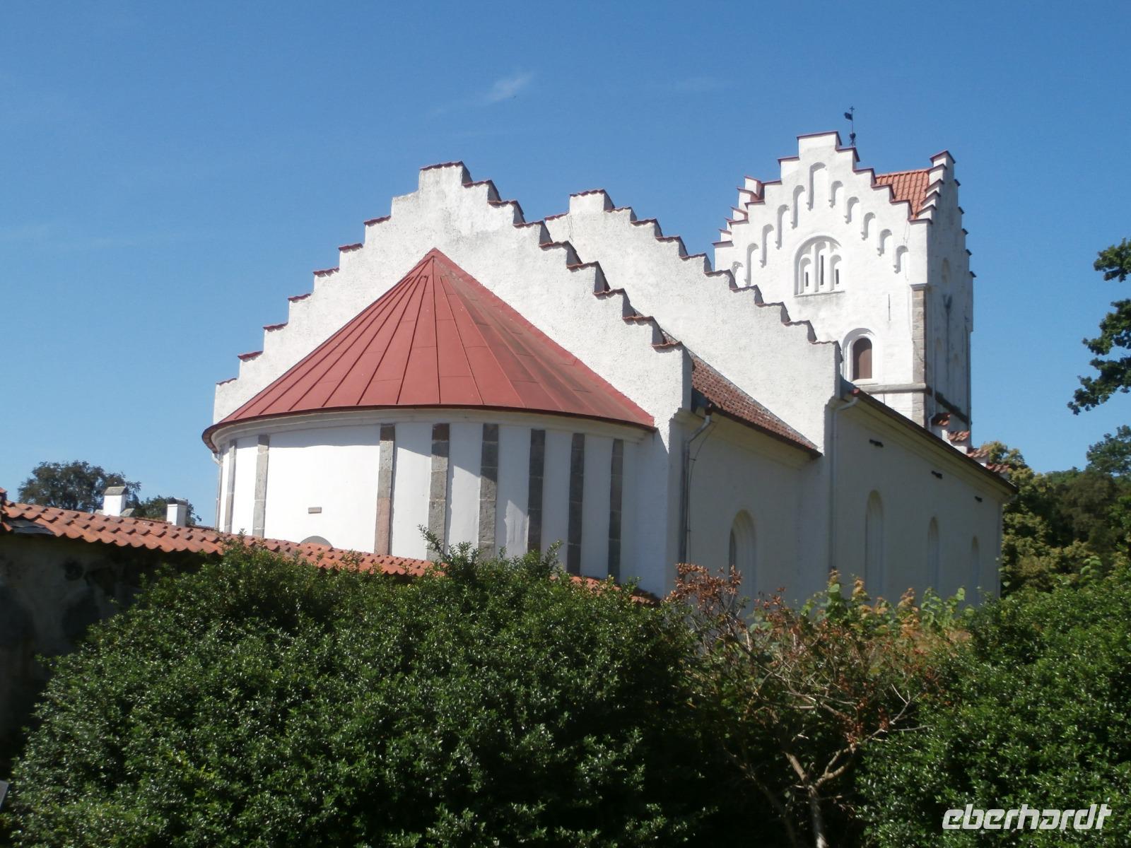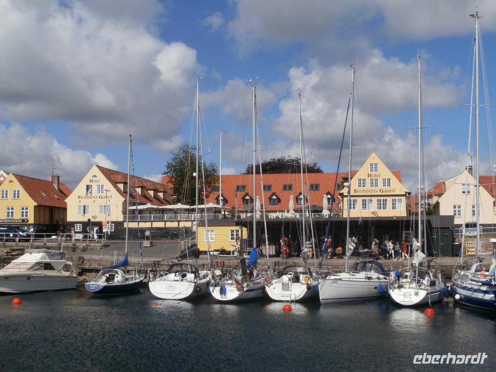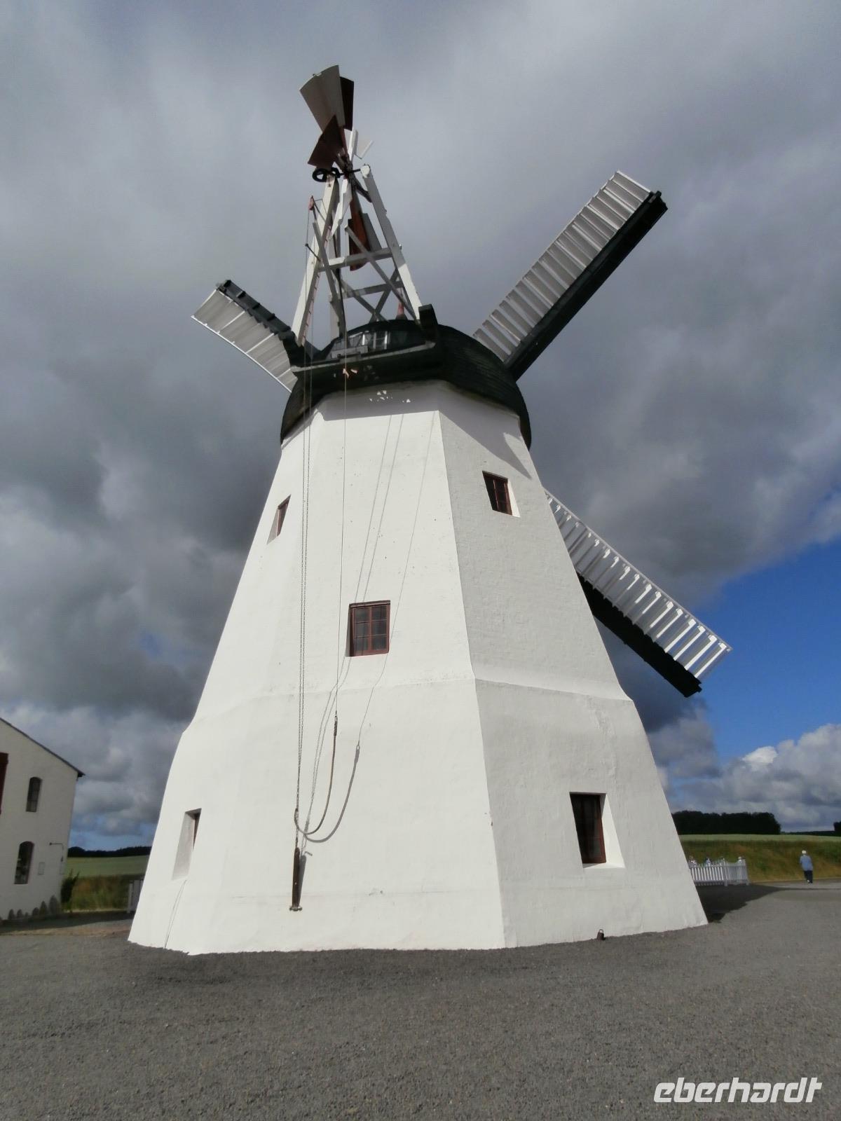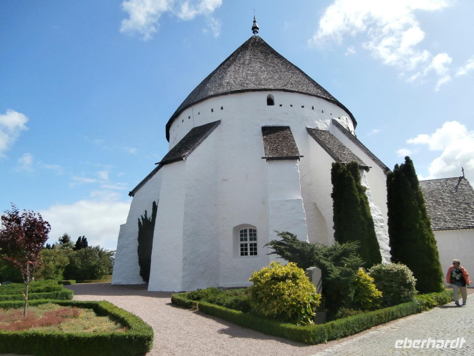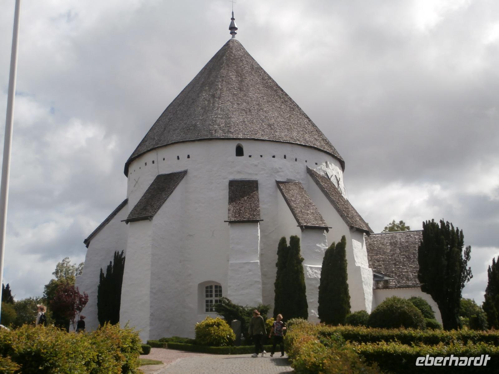 Am Morgen herrschen kühlere Temperaturen und starker Wind bläst uns um die Ohren. Heute starten wir später, ganz entspannt treffen wir uns zur Abfahrt im Bus. In Arsdale betrachten wir uns die fantastische Holländer Mühle, sie strahlt in einem tollen Weiß schon von Weitem. Svaneke, die östlichste Stadt Dänemarks, besuchen wir im Anschluss, schön der Hafen und die Fachwerkhäuser. Die Geschäfte sind offen und in einer Glasbläserei sehen wir wundervolle Stücke aus Glas, shoppen ist angesagt. Die größte Rundkirche Bornholms steht in Österlars und die Besichtigung steht auf unserem Plan. In romanischen Stil von 1150 ist sie dem ST. Laurentius geweiht. Beeindruckend das Alter der Kirche, aus 1150 stammen noch Chor, Schiff und Apsis, später wurde angebaut, wobei man Feldsteine eingesetzt hat. Extrem viel Wind, fast schon stürmig, so erreichen wir zur Mittagszeit Halse, hier gibt es den lecker geräucherten Bornholmer Hering, in der Räucherei wird uns ein gut geräucherter Fisch mit Brot und Ei serviert, etwas ungewöhnlich aber sehr schmackhaft. Im Bus geben wir im Namen von Eberhardt Travel unseren Gästen ein Glas Sekt aus, der Wind macht einen Ausschank außerhalb unmöglich. Die größte Burgruine Skandinaviens, die Festung Hammershus, besichtigen wir am Nachmittag. Ein paar Mutige kämpfen sich gegen den Sturm hinauf zur Festungsanlage, gigantisch dieses Bollwerk auf dem 74 m hohen Felsen. Eine 750 m lange Ringmauer umgibt den äußeren Burghof, sie wurde seit dem 17. Jahrhundert auch als Steinbruch genutzt. Trotz Sturm fahren wir nun hinunter nach Dueodde, dem schönsten Strand nicht nur von Bornholm, nein Europaweit soll er berühmt für seinen feinen, weißen Sand sein. Und auch wir können da nur zustimmen, ein Traum in Weiß, der Sand wird auch zur Bestückung von Sanduhren benutzt. Wir bummeln mit dem Gesicht hart am Wind am Strand entlang. Wunderschön dieser Abschluss hier am südlichsten Punkt der Insel Bornholm.