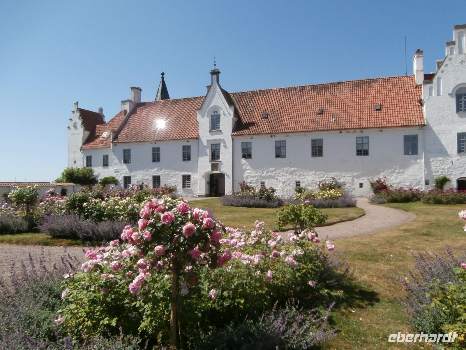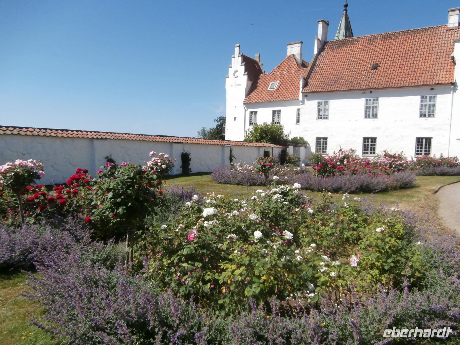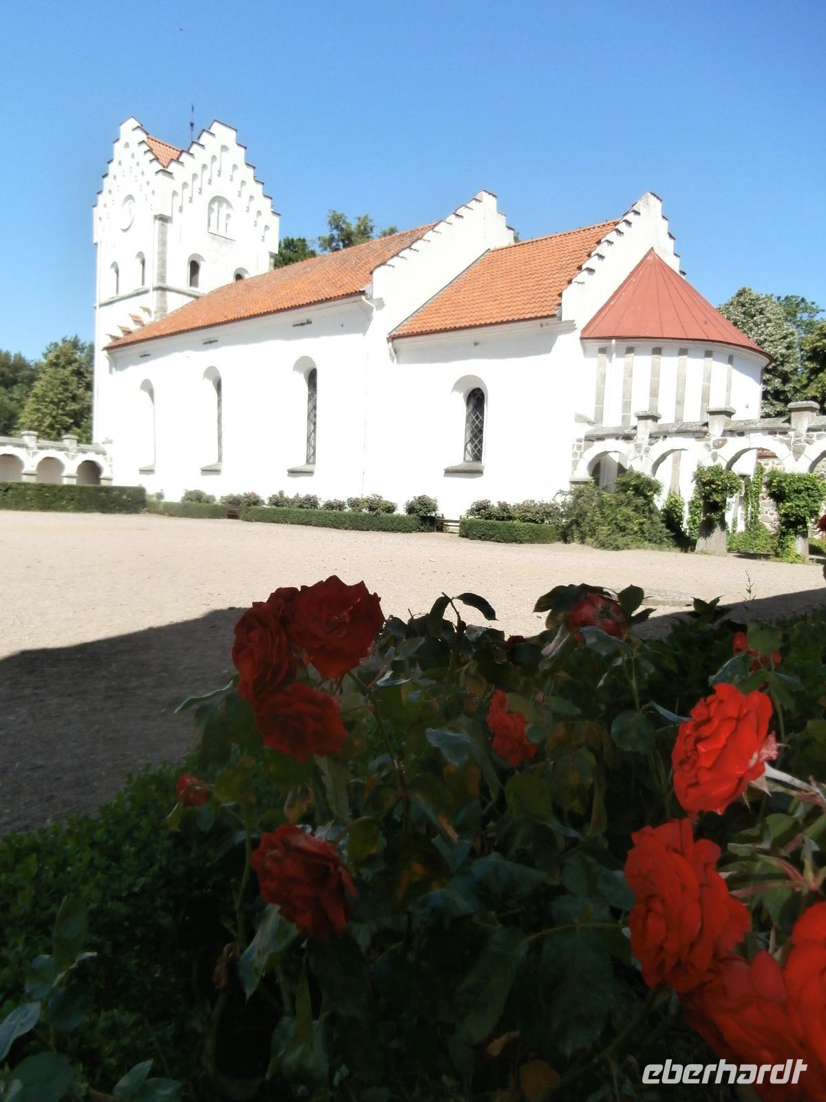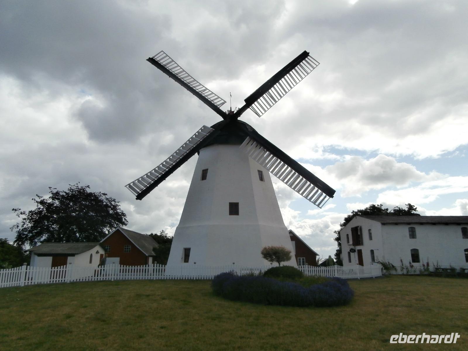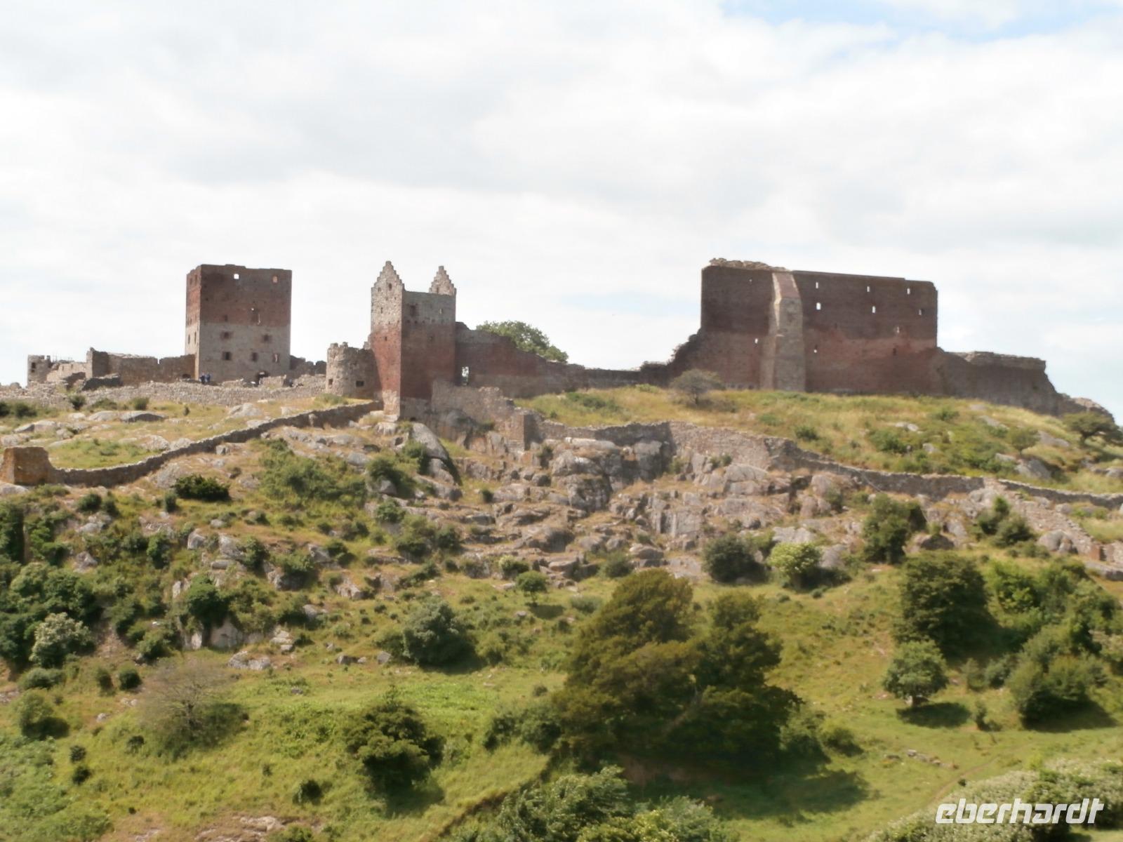 Am Morgen herrschen kühlere Temperaturen und starker Wind bläst uns um die Ohren. Heute starten wir später, ganz entspannt treffen wir uns zur Abfahrt im Bus. In Arsdale betrachten wir uns die fantastische Holländer Mühle, sie strahlt in einem tollen Weiß schon von Weitem. Svaneke, die östlichste Stadt Dänemarks, besuchen wir im Anschluss, schön der Hafen und die Fachwerkhäuser. Die Geschäfte sind offen und in einer Glasbläserei sehen wir wundervolle Stücke aus Glas, shoppen ist angesagt. Die größte Rundkirche Bornholms steht in Österlars und die Besichtigung steht auf unserem Plan. In romanischen Stil von 1150 ist sie dem ST. Laurentius geweiht. Beeindruckend das Alter der Kirche, aus 1150 stammen noch Chor, Schiff und Apsis, später wurde angebaut, wobei man Feldsteine eingesetzt hat. Extrem viel Wind, fast schon stürmig, so erreichen wir zur Mittagszeit Halse, hier gibt es den lecker geräucherten Bornholmer Hering, in der Räucherei wird uns ein gut geräucherter Fisch mit Brot und Ei serviert, etwas ungewöhnlich aber sehr schmackhaft. Im Bus geben wir im Namen von Eberhardt Travel unseren Gästen ein Glas Sekt aus, der Wind macht einen Ausschank außerhalb unmöglich. Die größte Burgruine Skandinaviens, die Festung Hammershus, besichtigen wir am Nachmittag. Ein paar Mutige kämpfen sich gegen den Sturm hinauf zur Festungsanlage, gigantisch dieses Bollwerk auf dem 74 m hohen Felsen. Eine 750 m lange Ringmauer umgibt den äußeren Burghof, sie wurde seit dem 17. Jahrhundert auch als Steinbruch genutzt. Trotz Sturm fahren wir nun hinunter nach Dueodde, dem schönsten Strand nicht nur von Bornholm, nein Europaweit soll er berühmt für seinen feinen, weißen Sand sein. Und auch wir können da nur zustimmen, ein Traum in Weiß, der Sand wird auch zur Bestückung von Sanduhren benutzt. Wir bummeln mit dem Gesicht hart am Wind am Strand entlang. Wunderschön dieser Abschluss hier am südlichsten Punkt der Insel Bornholm.