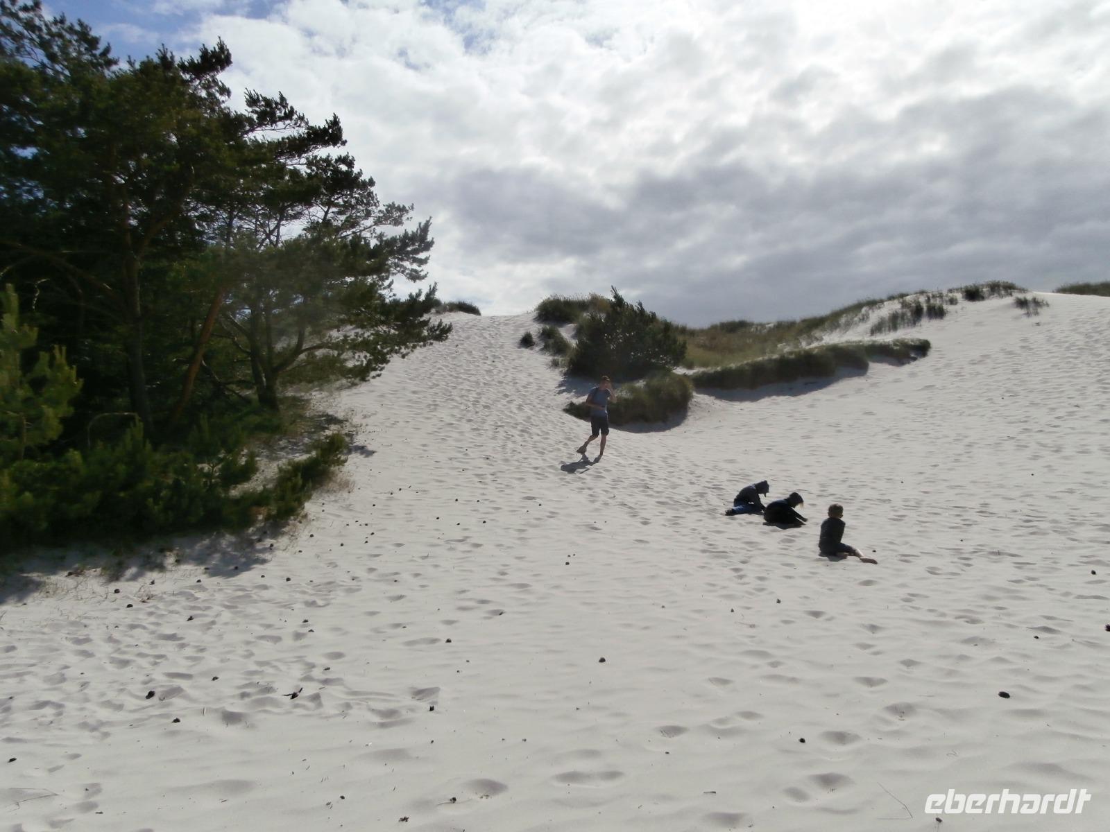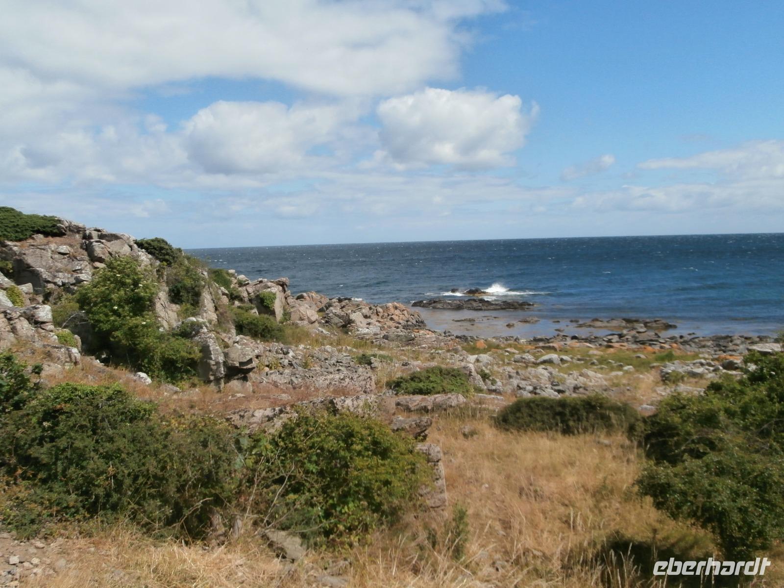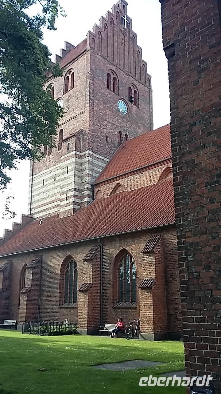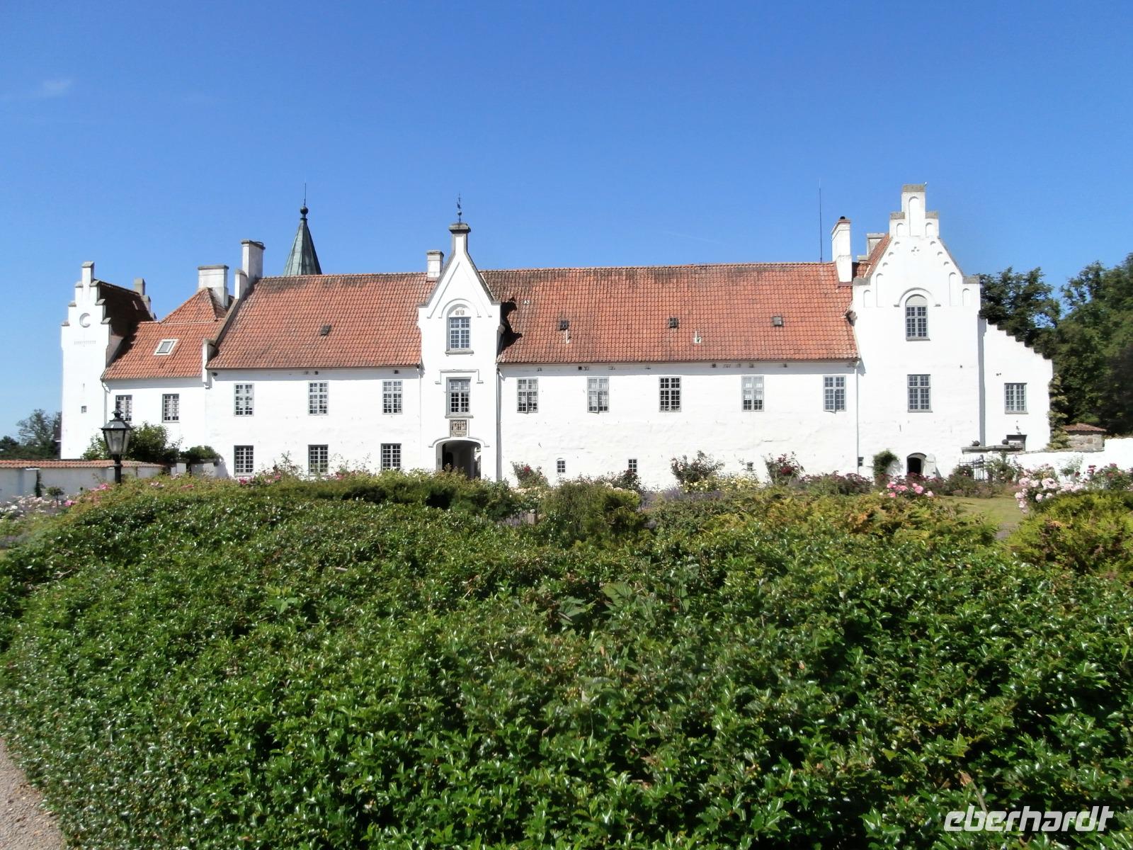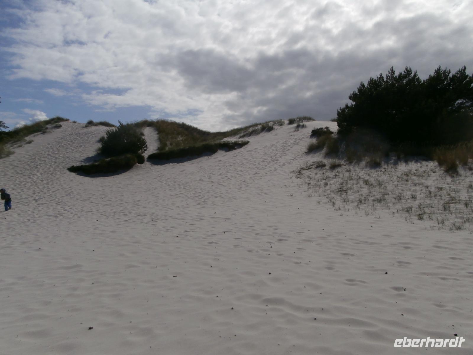 Am Morgen herrschen kühlere Temperaturen und starker Wind bläst uns um die Ohren. Heute starten wir später, ganz entspannt treffen wir uns zur Abfahrt im Bus. In Arsdale betrachten wir uns die fantastische Holländer Mühle, sie strahlt in einem tollen Weiß schon von Weitem. Svaneke, die östlichste Stadt Dänemarks, besuchen wir im Anschluss, schön der Hafen und die Fachwerkhäuser. Die Geschäfte sind offen und in einer Glasbläserei sehen wir wundervolle Stücke aus Glas, shoppen ist angesagt. Die größte Rundkirche Bornholms steht in Österlars und die Besichtigung steht auf unserem Plan. In romanischen Stil von 1150 ist sie dem ST. Laurentius geweiht. Beeindruckend das Alter der Kirche, aus 1150 stammen noch Chor, Schiff und Apsis, später wurde angebaut, wobei man Feldsteine eingesetzt hat. Extrem viel Wind, fast schon stürmig, so erreichen wir zur Mittagszeit Halse, hier gibt es den lecker geräucherten Bornholmer Hering, in der Räucherei wird uns ein gut geräucherter Fisch mit Brot und Ei serviert, etwas ungewöhnlich aber sehr schmackhaft. Im Bus geben wir im Namen von Eberhardt Travel unseren Gästen ein Glas Sekt aus, der Wind macht einen Ausschank außerhalb unmöglich. Die größte Burgruine Skandinaviens, die Festung Hammershus, besichtigen wir am Nachmittag. Ein paar Mutige kämpfen sich gegen den Sturm hinauf zur Festungsanlage, gigantisch dieses Bollwerk auf dem 74 m hohen Felsen. Eine 750 m lange Ringmauer umgibt den äußeren Burghof, sie wurde seit dem 17. Jahrhundert auch als Steinbruch genutzt. Trotz Sturm fahren wir nun hinunter nach Dueodde, dem schönsten Strand nicht nur von Bornholm, nein Europaweit soll er berühmt für seinen feinen, weißen Sand sein. Und auch wir können da nur zustimmen, ein Traum in Weiß, der Sand wird auch zur Bestückung von Sanduhren benutzt. Wir bummeln mit dem Gesicht hart am Wind am Strand entlang. Wunderschön dieser Abschluss hier am südlichsten Punkt der Insel Bornholm.