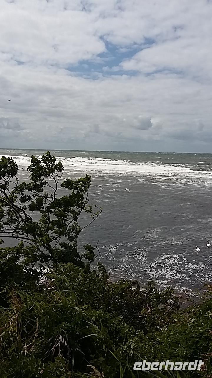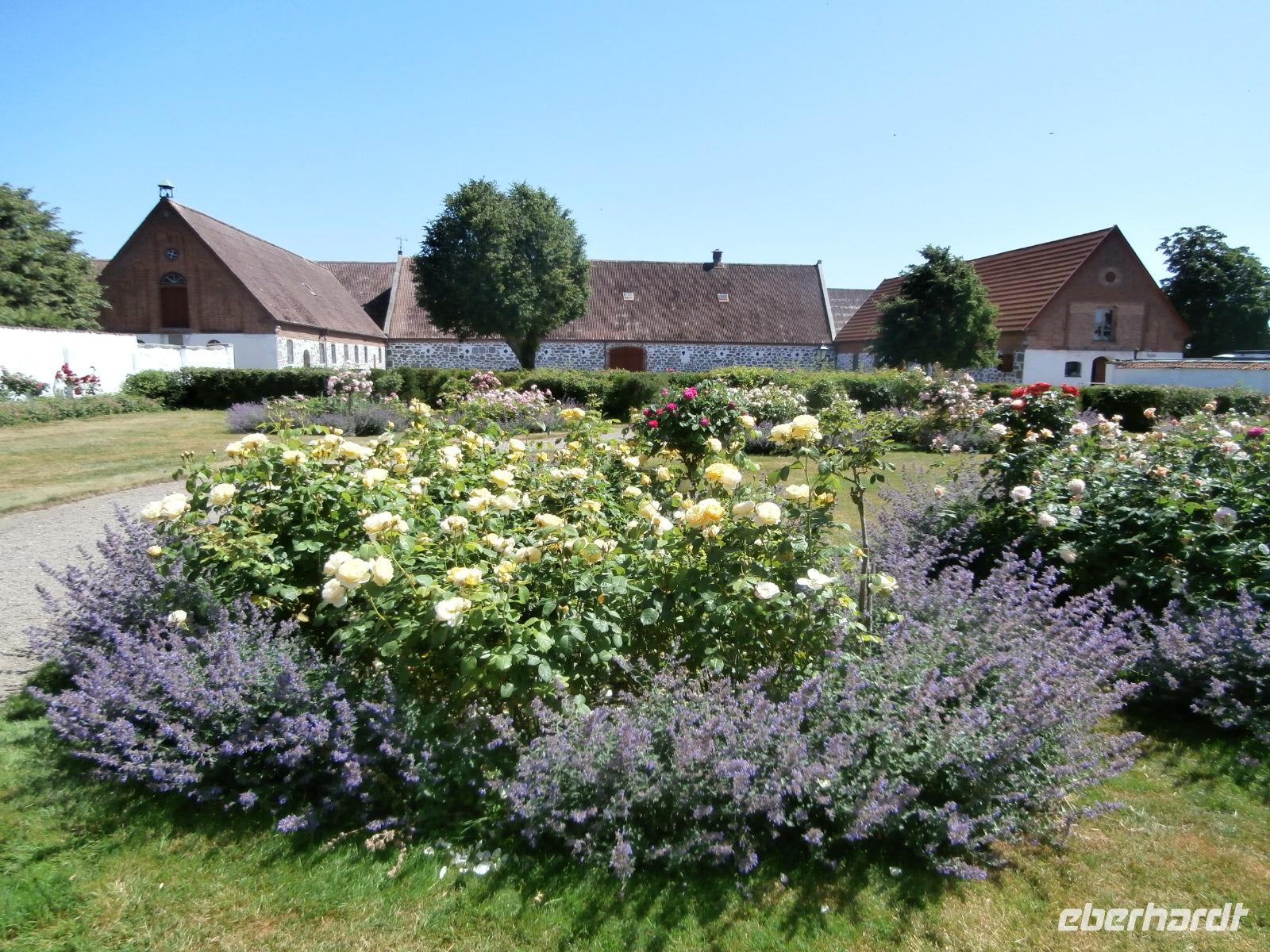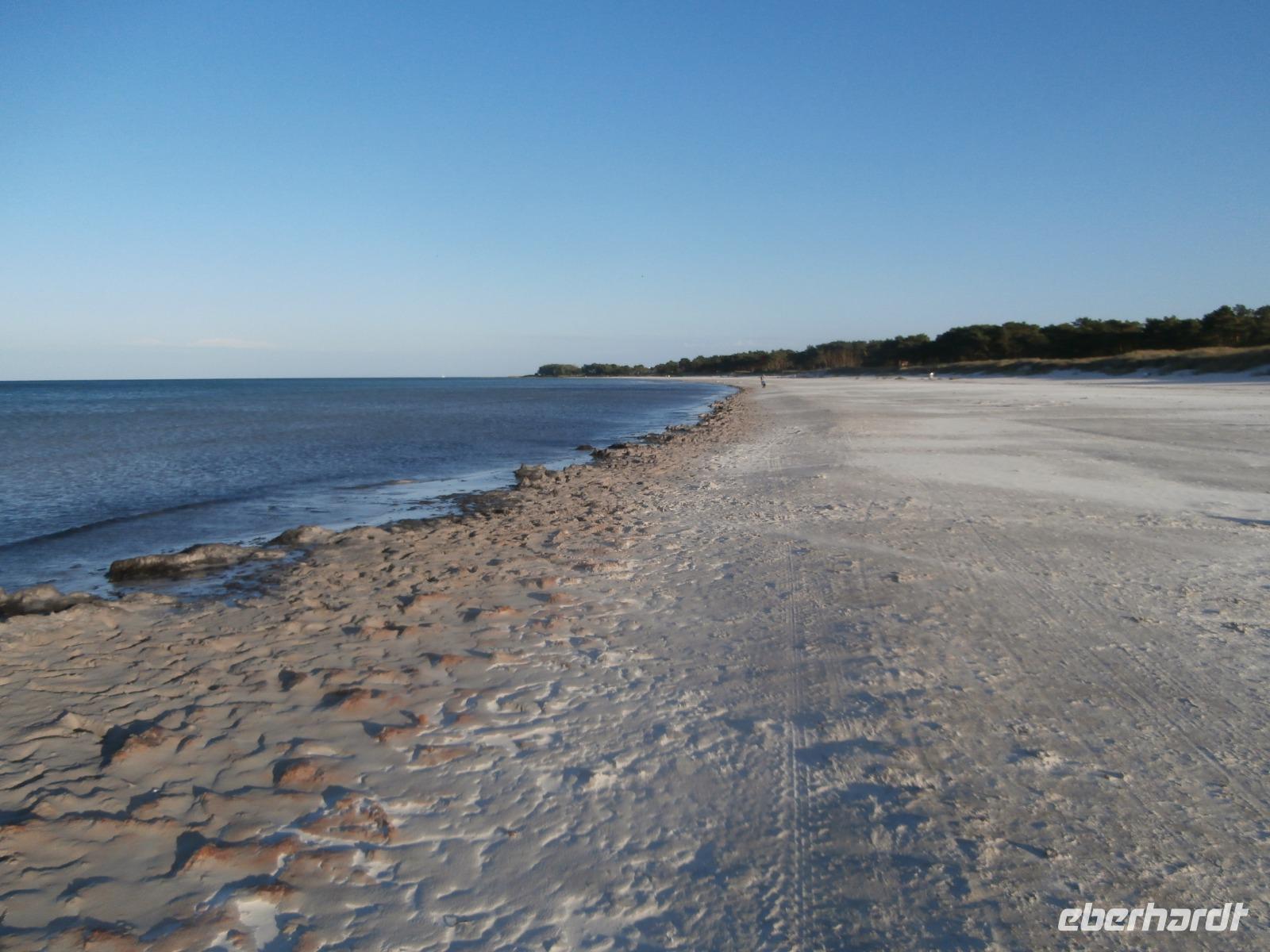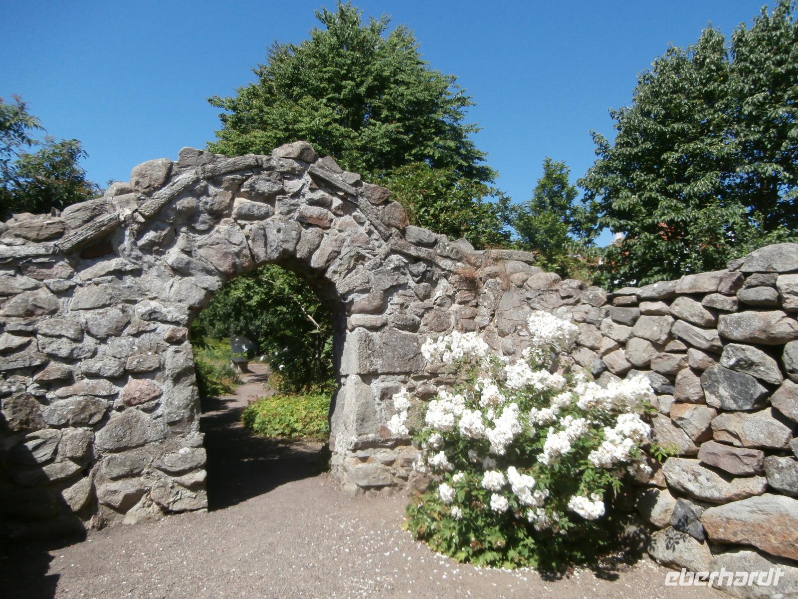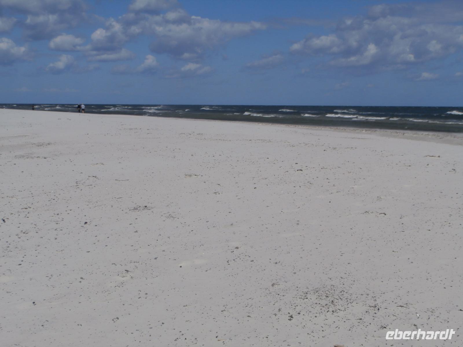 Am Morgen herrschen kühlere Temperaturen und starker Wind bläst uns um die Ohren. Heute starten wir später, ganz entspannt treffen wir uns zur Abfahrt im Bus. In Arsdale betrachten wir uns die fantastische Holländer Mühle, sie strahlt in einem tollen Weiß schon von Weitem. Svaneke, die östlichste Stadt Dänemarks, besuchen wir im Anschluss, schön der Hafen und die Fachwerkhäuser. Die Geschäfte sind offen und in einer Glasbläserei sehen wir wundervolle Stücke aus Glas, shoppen ist angesagt. Die größte Rundkirche Bornholms steht in Österlars und die Besichtigung steht auf unserem Plan. In romanischen Stil von 1150 ist sie dem ST. Laurentius geweiht. Beeindruckend das Alter der Kirche, aus 1150 stammen noch Chor, Schiff und Apsis, später wurde angebaut, wobei man Feldsteine eingesetzt hat. Extrem viel Wind, fast schon stürmig, so erreichen wir zur Mittagszeit Halse, hier gibt es den lecker geräucherten Bornholmer Hering, in der Räucherei wird uns ein gut geräucherter Fisch mit Brot und Ei serviert, etwas ungewöhnlich aber sehr schmackhaft. Im Bus geben wir im Namen von Eberhardt Travel unseren Gästen ein Glas Sekt aus, der Wind macht einen Ausschank außerhalb unmöglich. Die größte Burgruine Skandinaviens, die Festung Hammershus, besichtigen wir am Nachmittag. Ein paar Mutige kämpfen sich gegen den Sturm hinauf zur Festungsanlage, gigantisch dieses Bollwerk auf dem 74 m hohen Felsen. Eine 750 m lange Ringmauer umgibt den äußeren Burghof, sie wurde seit dem 17. Jahrhundert auch als Steinbruch genutzt. Trotz Sturm fahren wir nun hinunter nach Dueodde, dem schönsten Strand nicht nur von Bornholm, nein Europaweit soll er berühmt für seinen feinen, weißen Sand sein. Und auch wir können da nur zustimmen, ein Traum in Weiß, der Sand wird auch zur Bestückung von Sanduhren benutzt. Wir bummeln mit dem Gesicht hart am Wind am Strand entlang. Wunderschön dieser Abschluss hier am südlichsten Punkt der Insel Bornholm.