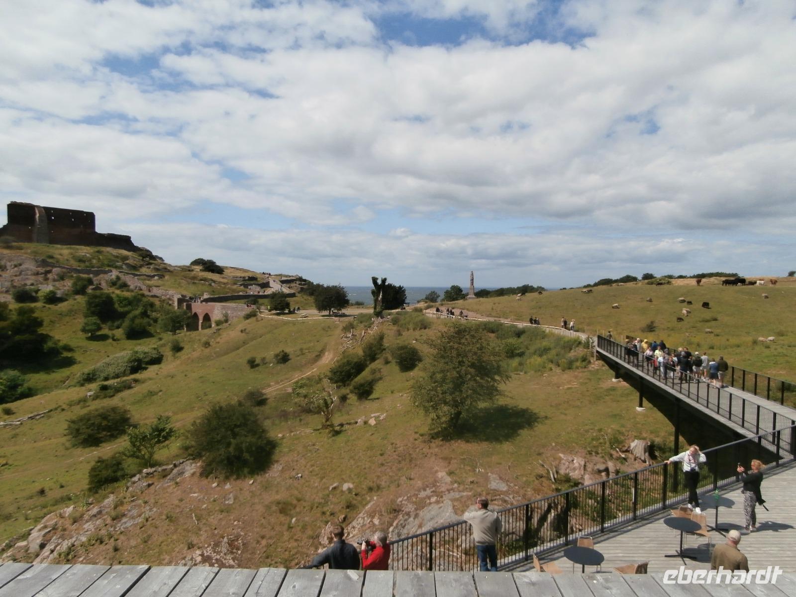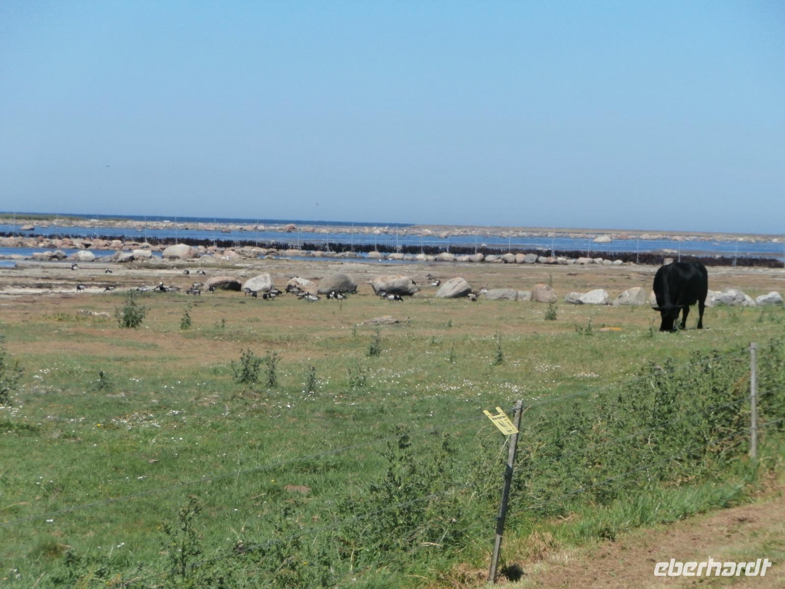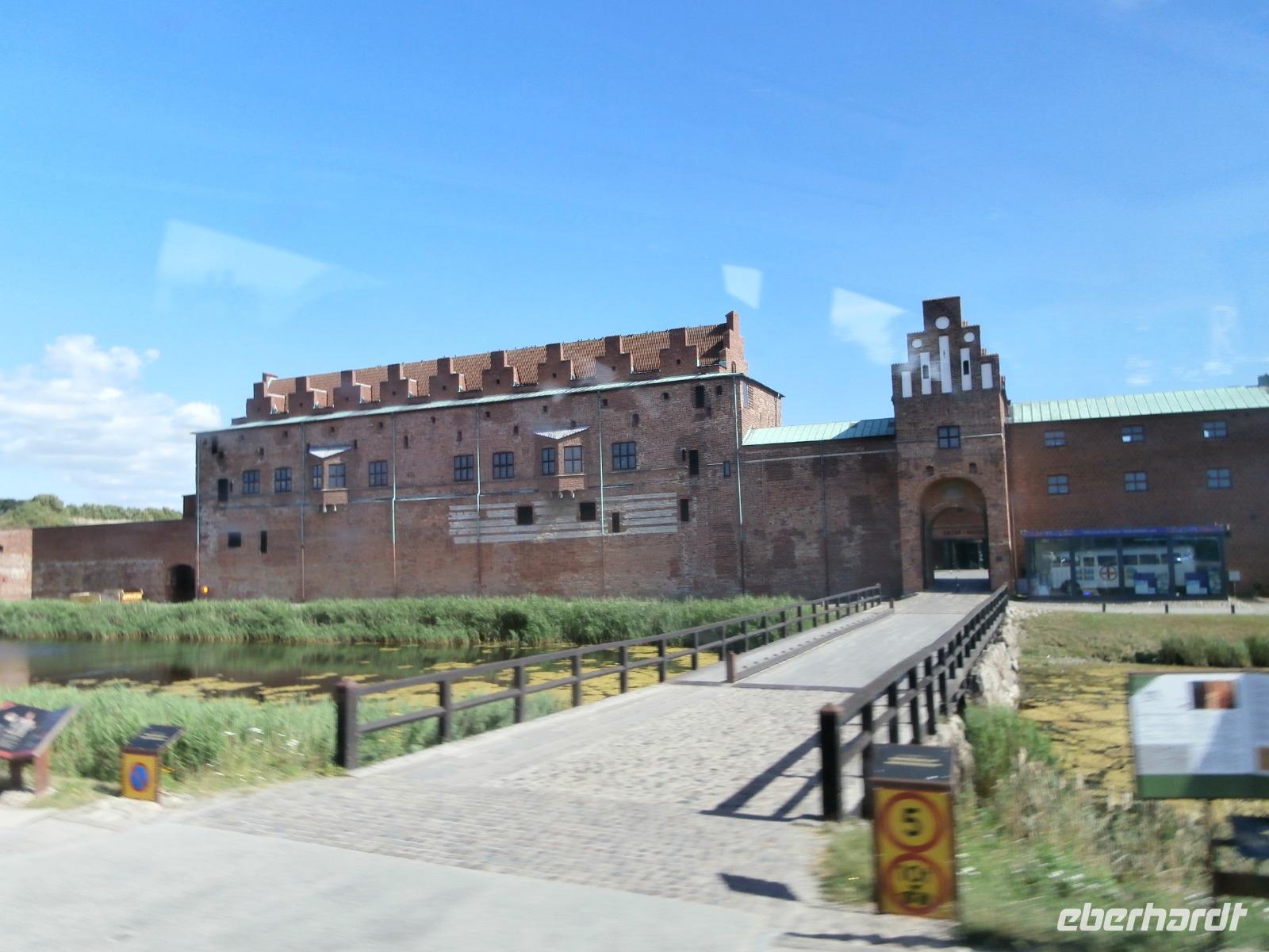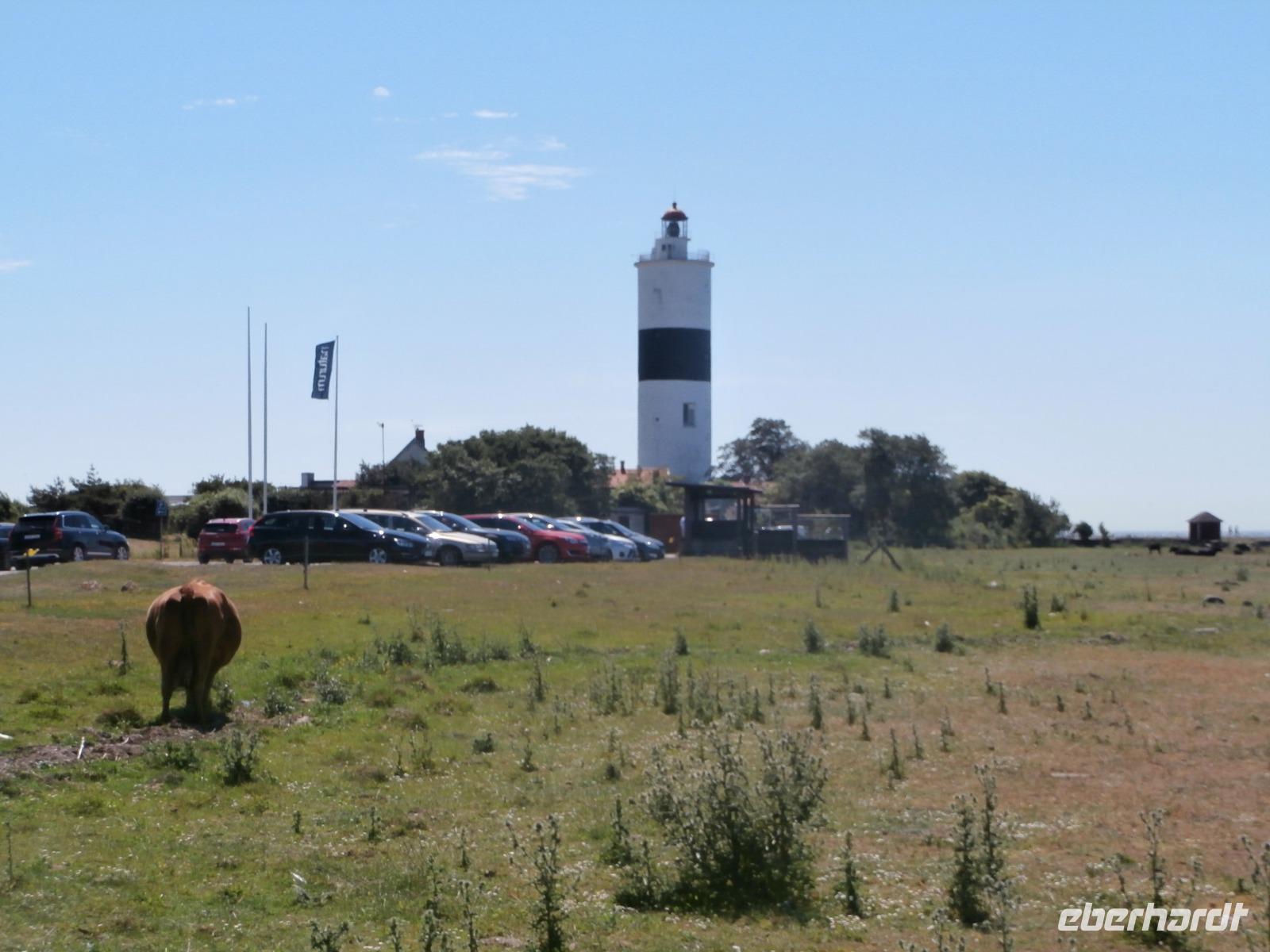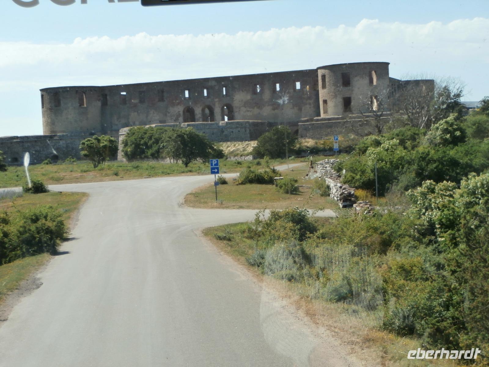bewundern. An der Südspitze steht ein Leuchtturm, der lange Jahn, hier legen wir natürlich einen Stopp ein und genießen die Seeluft, den Wind und sehen viele Wassertiere und auch Schafe und Rinder. Der Kirche von Gärdslösa, die als einzige mittelalterliche Kirche erhalten und noch in Funktion ist, gilt dann unsere Aufmerksamkeit. Die Fahrt nach Norden über die Insel endet in Borgholm, hier überragt eine riesige Schlossruine den Ort. Über die 6 km lange Brücke, die den Kalmarsund quert, fahren wir wieder zurück nach Kalmar. Rune lässt Ingo noch ein Stück durch das moderne Wohngebiet fahren, nach Verabschiedung laufen wir das kleine Stück vom Parkplatz zum Hotel zurück.