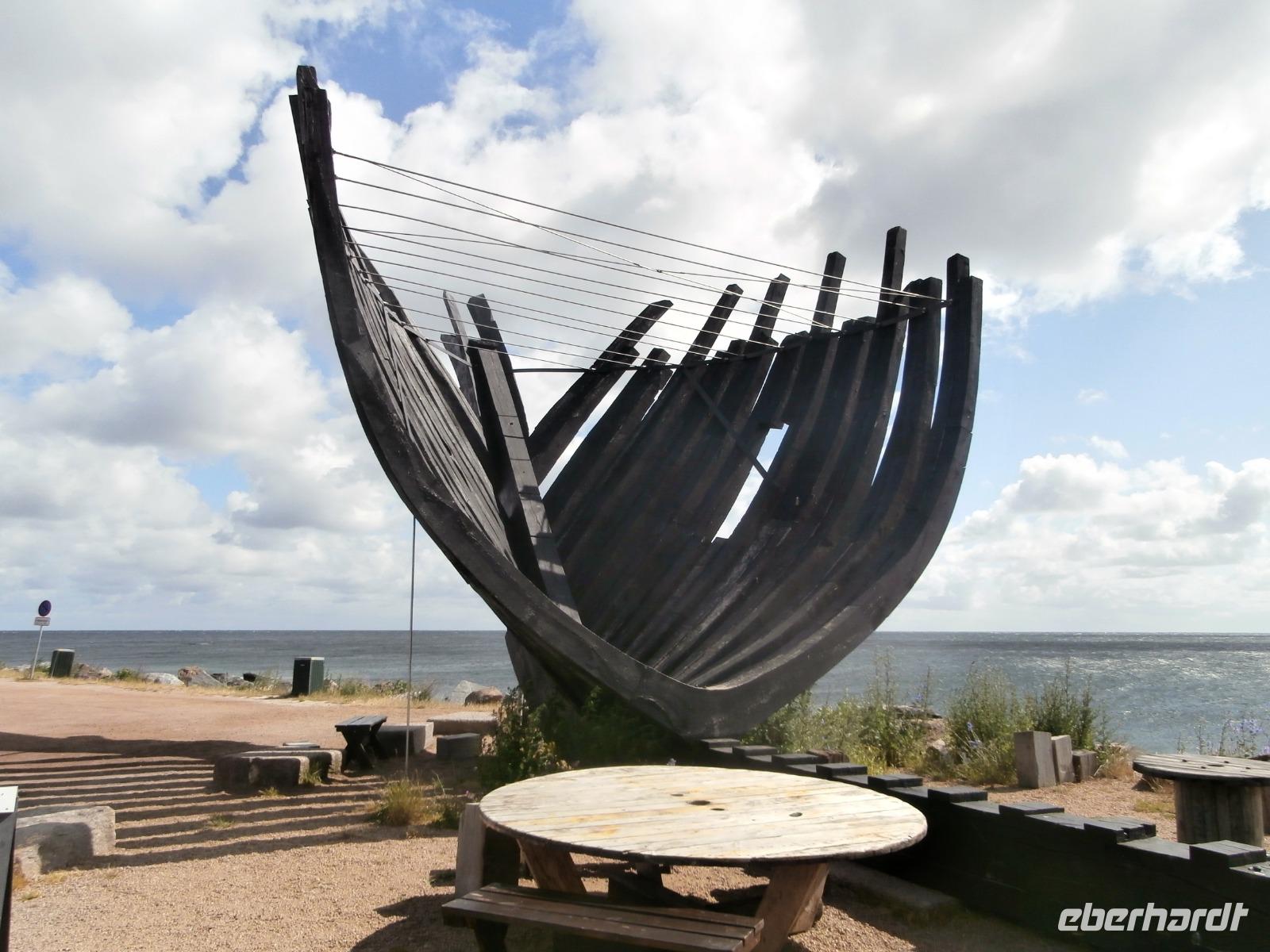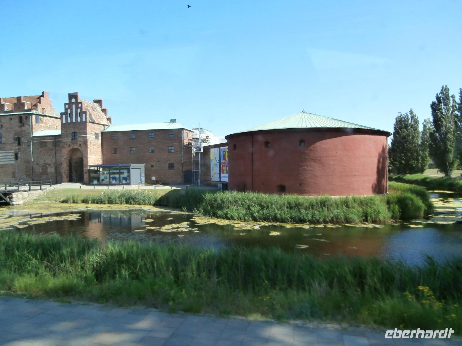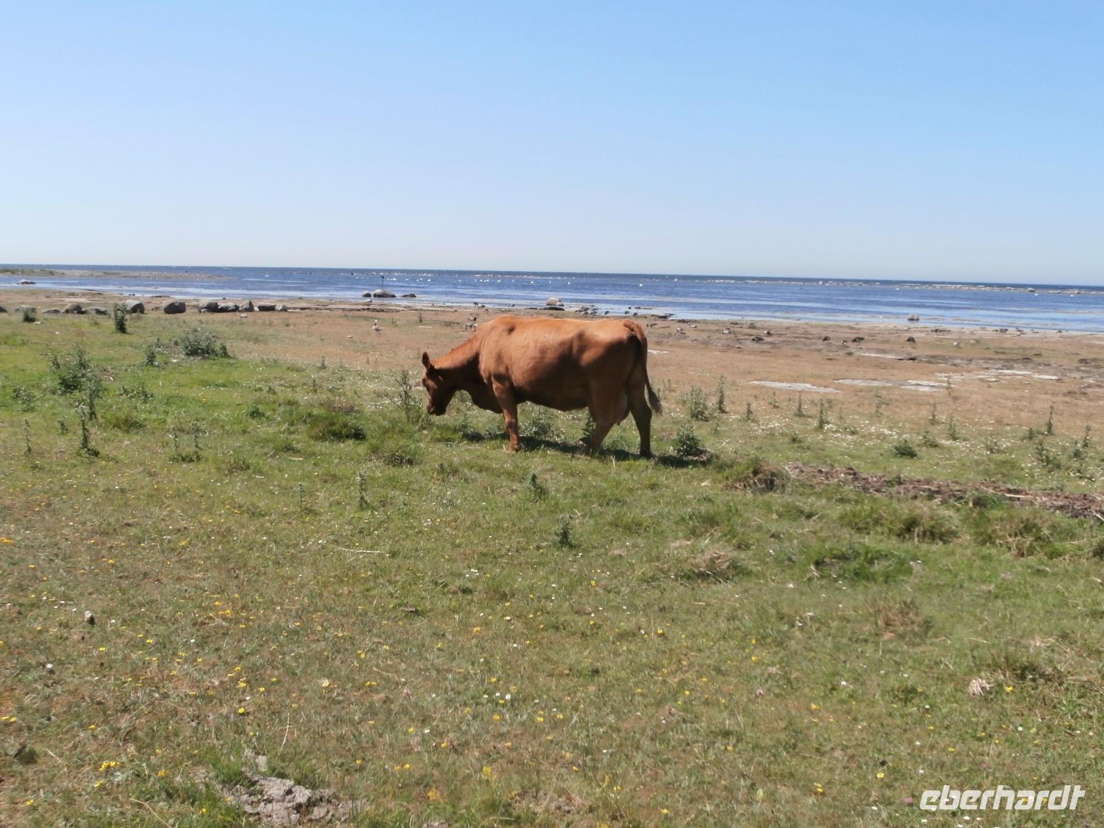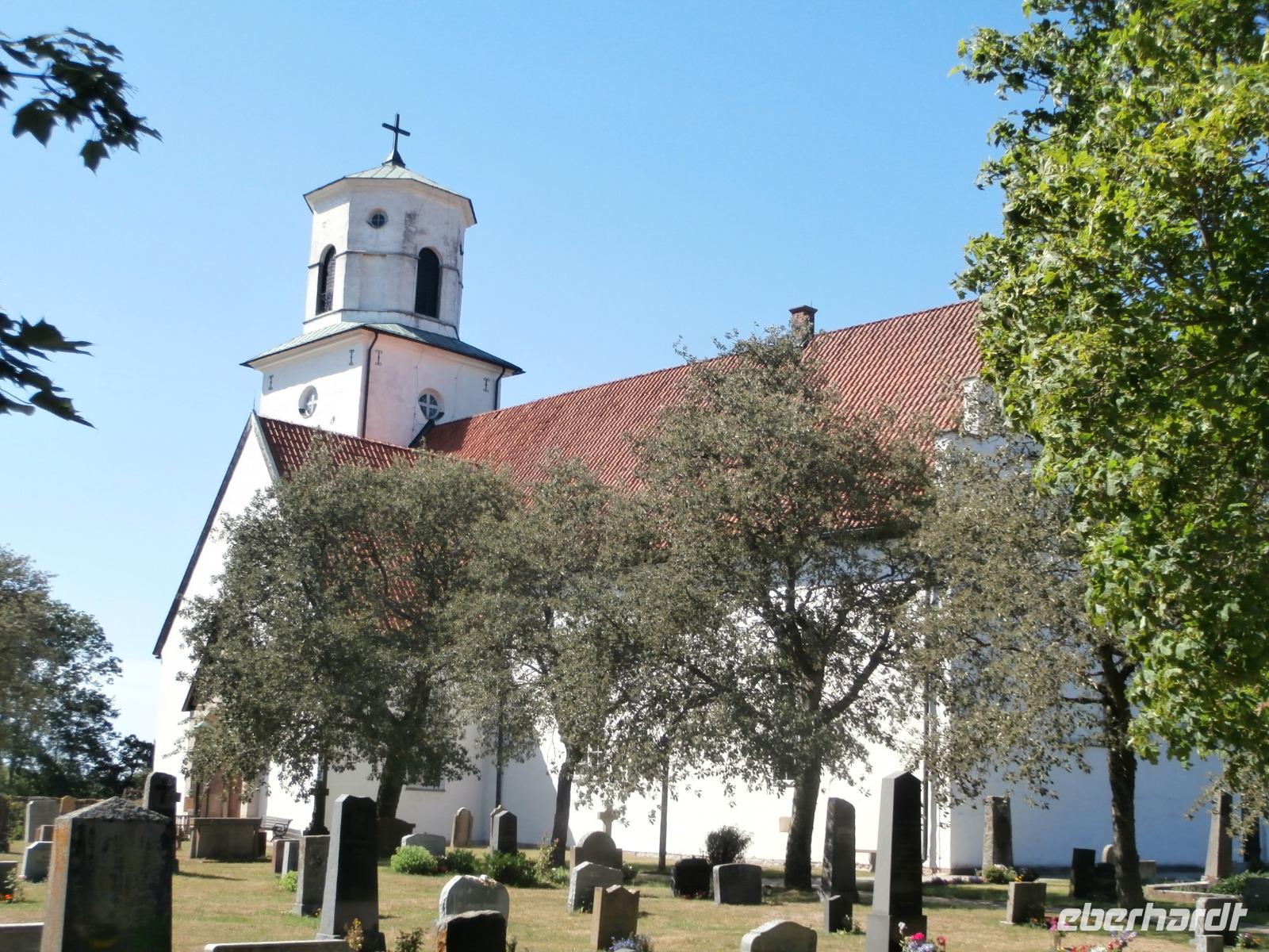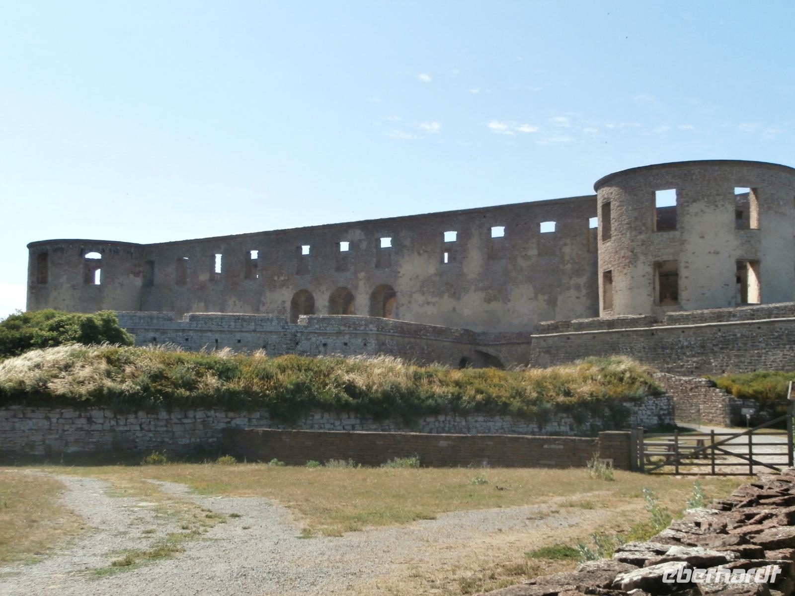 bewundern. An der Südspitze steht ein Leuchtturm, der lange Jahn, hier legen wir natürlich einen Stopp ein und genießen die Seeluft, den Wind und sehen viele Wassertiere und auch Schafe und Rinder. Der Kirche von Gärdslösa, die als einzige mittelalterliche Kirche erhalten und noch in Funktion ist, gilt dann unsere Aufmerksamkeit. Die Fahrt nach Norden über die Insel endet in Borgholm, hier überragt eine riesige Schlossruine den Ort. Über die 6 km lange Brücke, die den Kalmarsund quert, fahren wir wieder zurück nach Kalmar. Rune lässt Ingo noch ein Stück durch das moderne Wohngebiet fahren, nach Verabschiedung laufen wir das kleine Stück vom Parkplatz zum Hotel zurück.