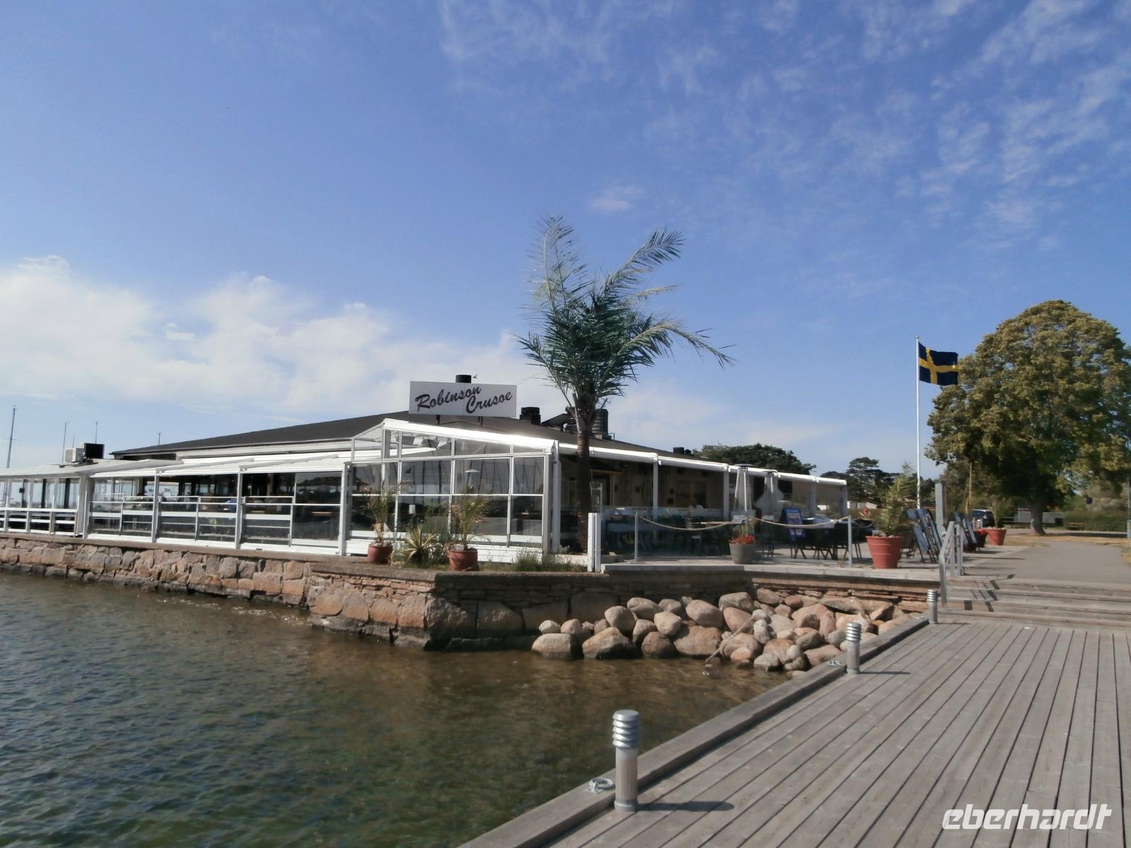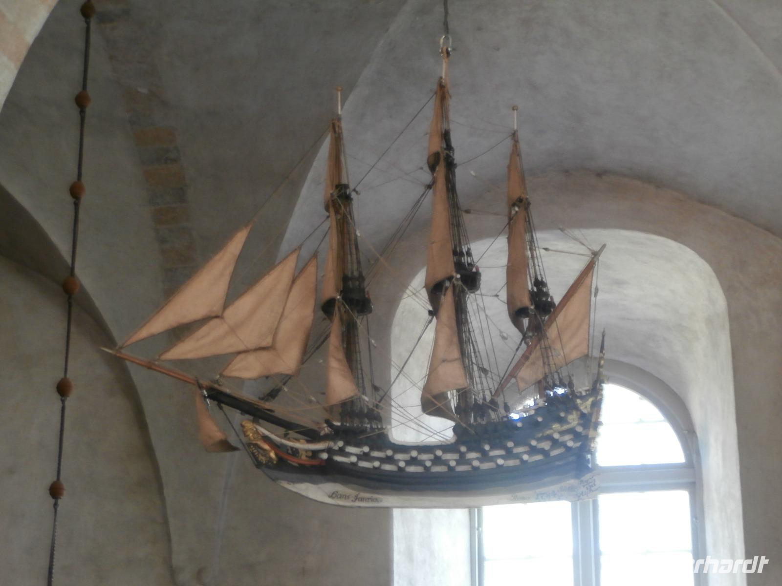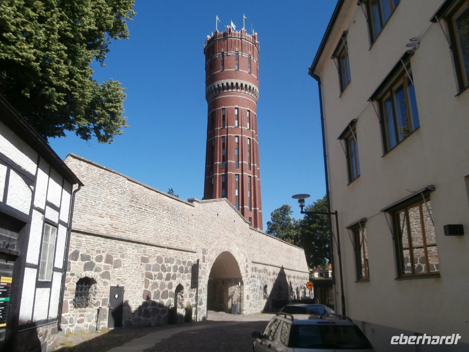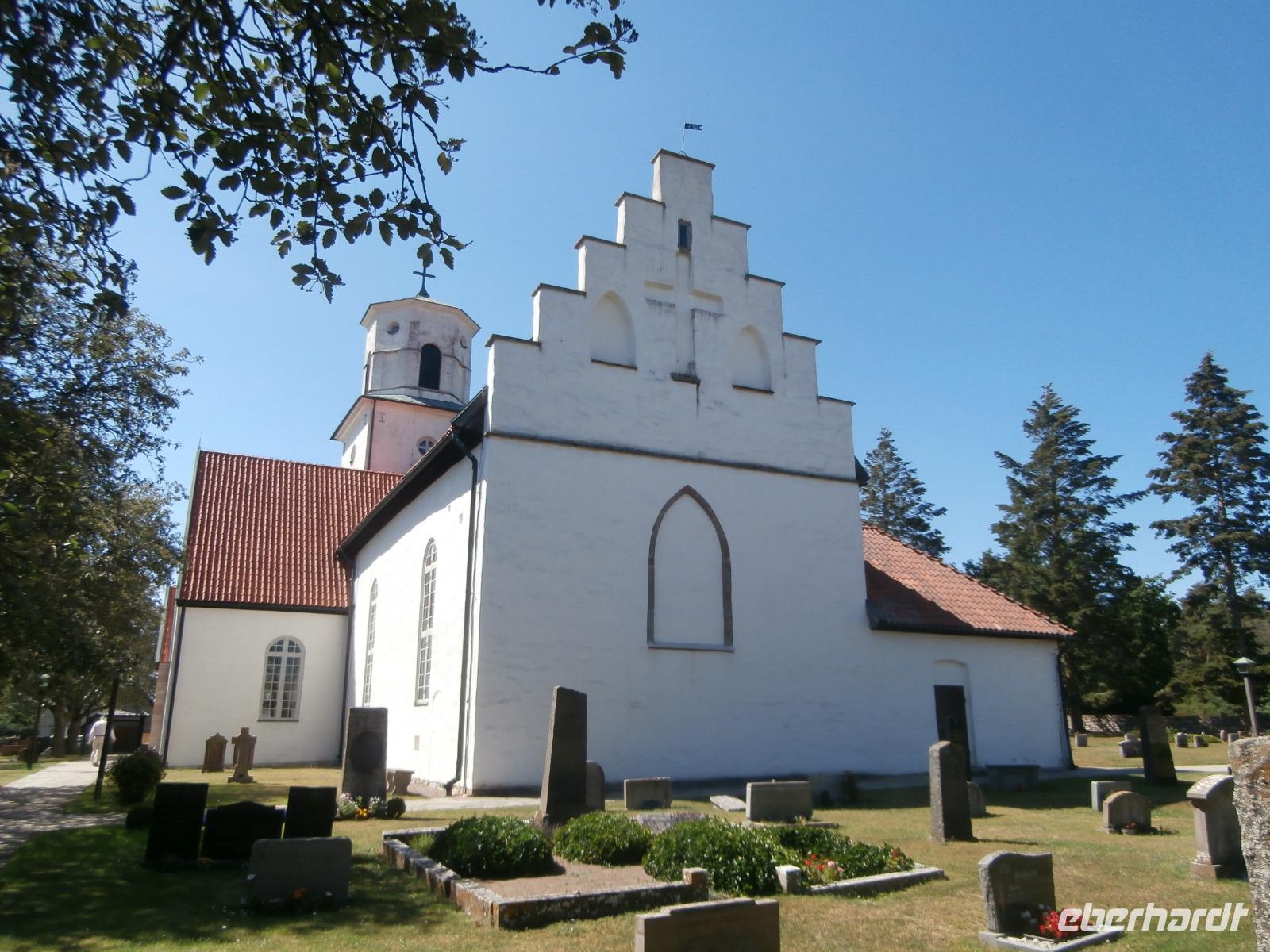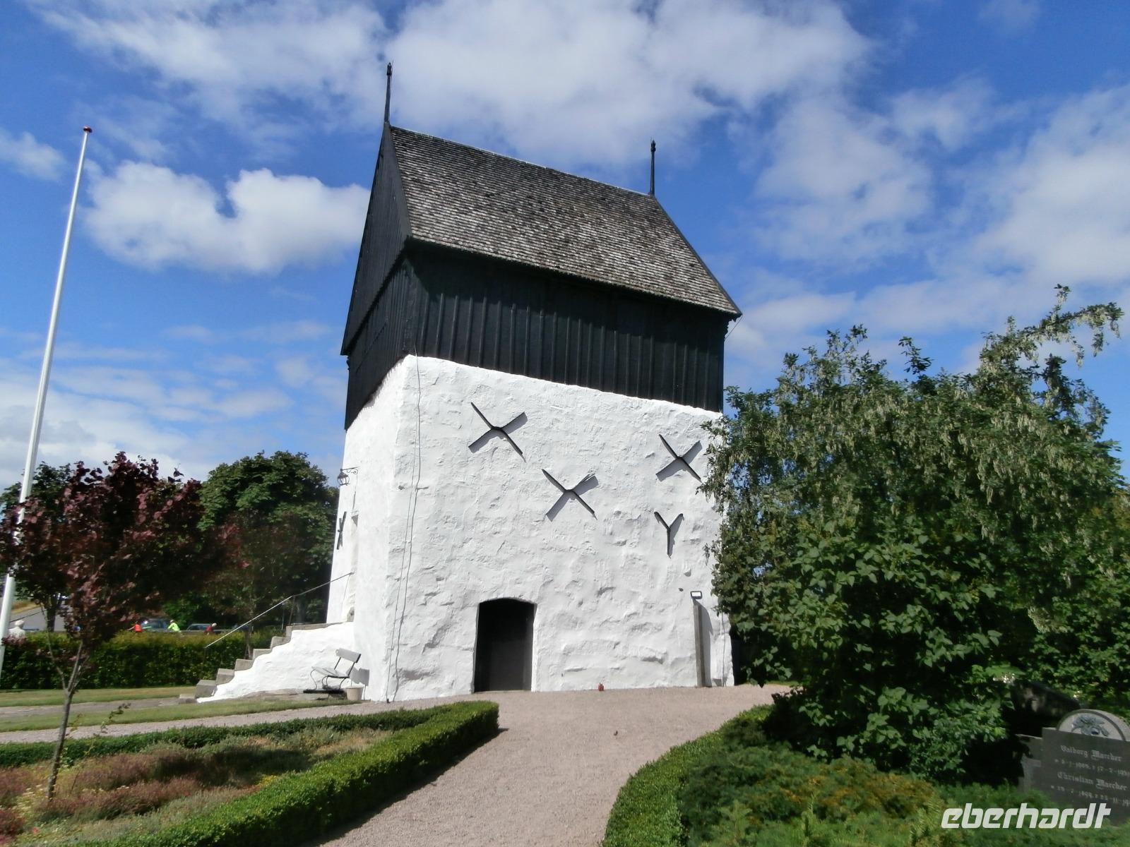 bewundern. An der Südspitze steht ein Leuchtturm, der lange Jahn, hier legen wir natürlich einen Stopp ein und genießen die Seeluft, den Wind und sehen viele Wassertiere und auch Schafe und Rinder. Der Kirche von Gärdslösa, die als einzige mittelalterliche Kirche erhalten und noch in Funktion ist, gilt dann unsere Aufmerksamkeit. Die Fahrt nach Norden über die Insel endet in Borgholm, hier überragt eine riesige Schlossruine den Ort. Über die 6 km lange Brücke, die den Kalmarsund quert, fahren wir wieder zurück nach Kalmar. Rune lässt Ingo noch ein Stück durch das moderne Wohngebiet fahren, nach Verabschiedung laufen wir das kleine Stück vom Parkplatz zum Hotel zurück.