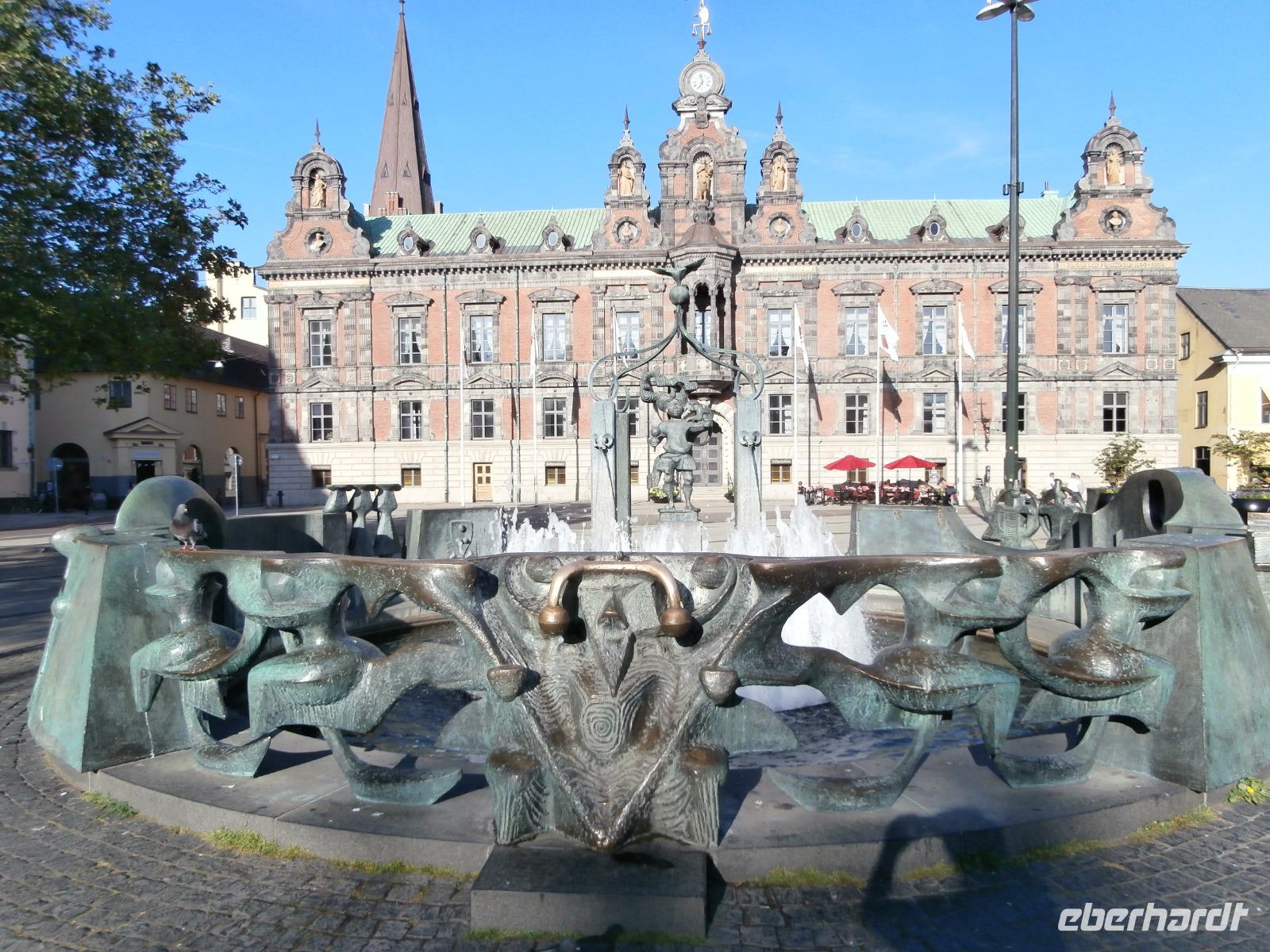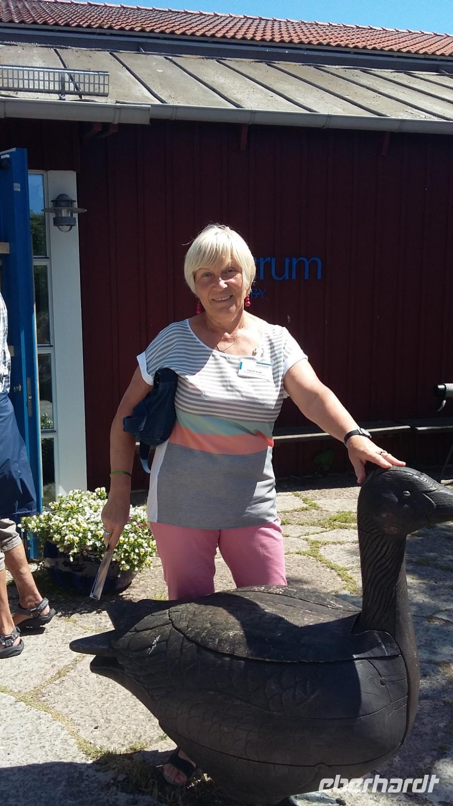 Heute starten wir wieder mit gepackten Koffern, denn weiter geht unsere Fahrt bis hinein nach Lund. Ein weiterer Tag auf unserer Reise mit viel Sonnenschein und Hitzegraden. In Lund besichtigen wir den fantastischen Dom, er ist romanischer Bauart und auch die astronomische Uhr im Dom können wir bewundern, sie ähnelt der Uhr in Prag am Altstädter Ring. Am späteren Vormittag besuchen wir das Bosjökloster, es hat seine Gründung im Jahre 1080, es sind Benediktiner, die es eingerichtet haben. Es gab verschiedene Besitzer und heute ist es in der Bewirtschaftung und im Besitz des Grafen Philipp Bonde, dessen Familie lebt heute noch im großen Anwesen. Der Graf höchst persönlich empfängt und führt uns durch sein Reich. Besonders beeindruckend sind die blühenden Rosen, sie sehen spitze aus und versprühen traumhafte Düfte. Wir fahren in unserem gut klimatisierten Reisebus durch die schöne Landschaft Schonen, wir lassen Seen und Birkenwälder an uns vorüberziehen. In der Provinz Smaland, dem sogenannten Glasreich von Südschweden, stehen noch einige Glasbläsereien. In Kosta Boda kann man in den Galerien fantastische Kunstwerke, geschaffen aus Glas, sehen. Wir halten heute hier nicht an, es steht für uns der Besuch im Elch Park Grönasens auf dem Programm. Mit einer Probe Elchwurst werden wir im Shop vom Chef empfangen. Später erleben wir die Fütterung einiger Elche und bei unserem Rundgang können wir auch Muttertiere mit ihren Kälbern sehen. Wir sind fleißig am Fotografieren, in der freien Natur hat sich uns noch kein Elch gezeigt. Anschließend darf sich jeder Reisegast seine Elchwurst am Grillplatz selbst grillen, ein sehr lustiges Erlebnis, dazu wird uns Lättöl, Cola und Wasser gereicht. In Kalmar machen wir am Abend Station im Profil Calmar Stadshotell, es ist direkt am Stortorget, dem alten Marktplatz, gelegen. Nun gibt es Gelegenheit den Koffer weiter zu öffnen, denn 2 Nächte sind wir hier in Kalmar im Hotel untergebracht.