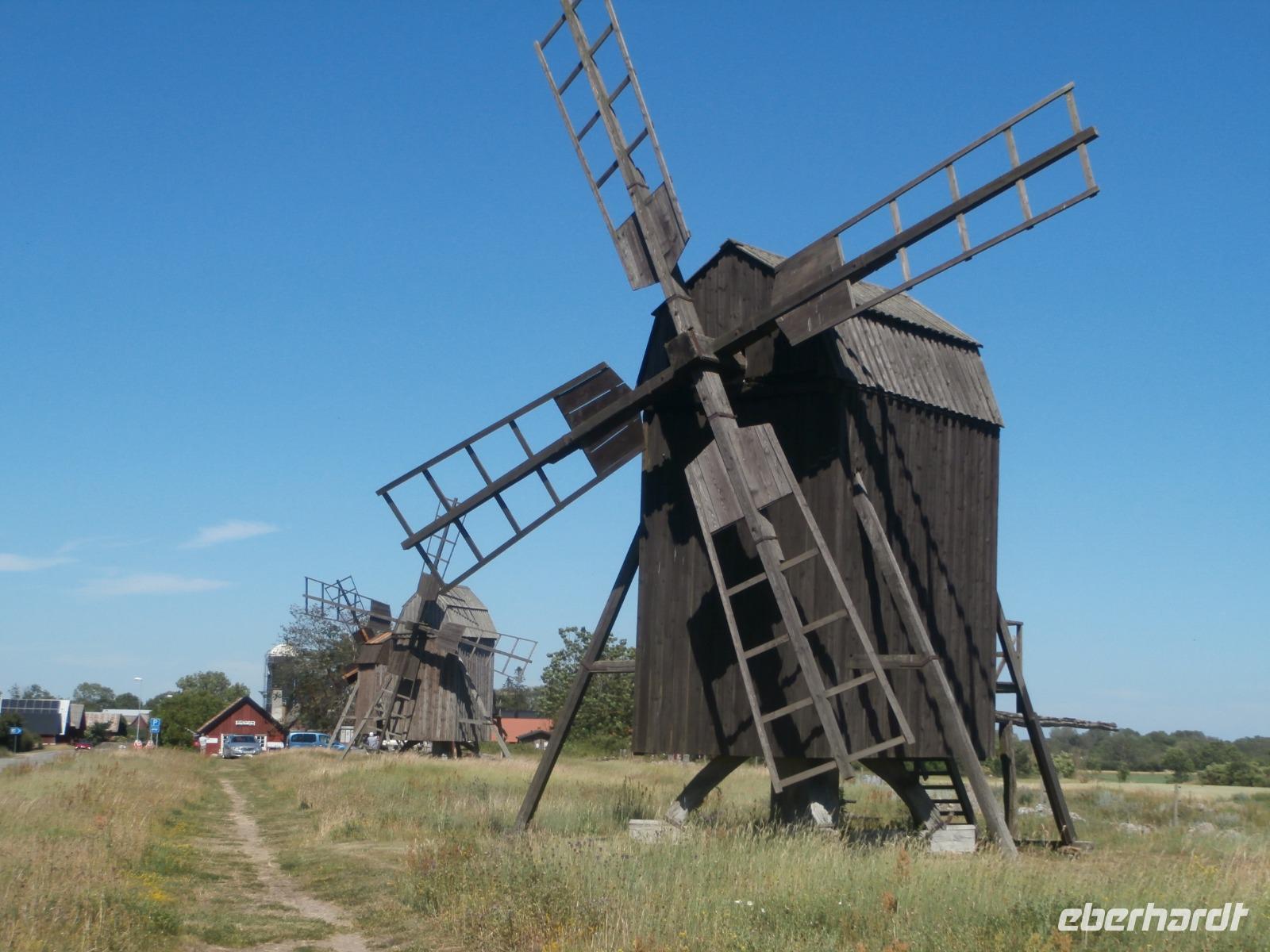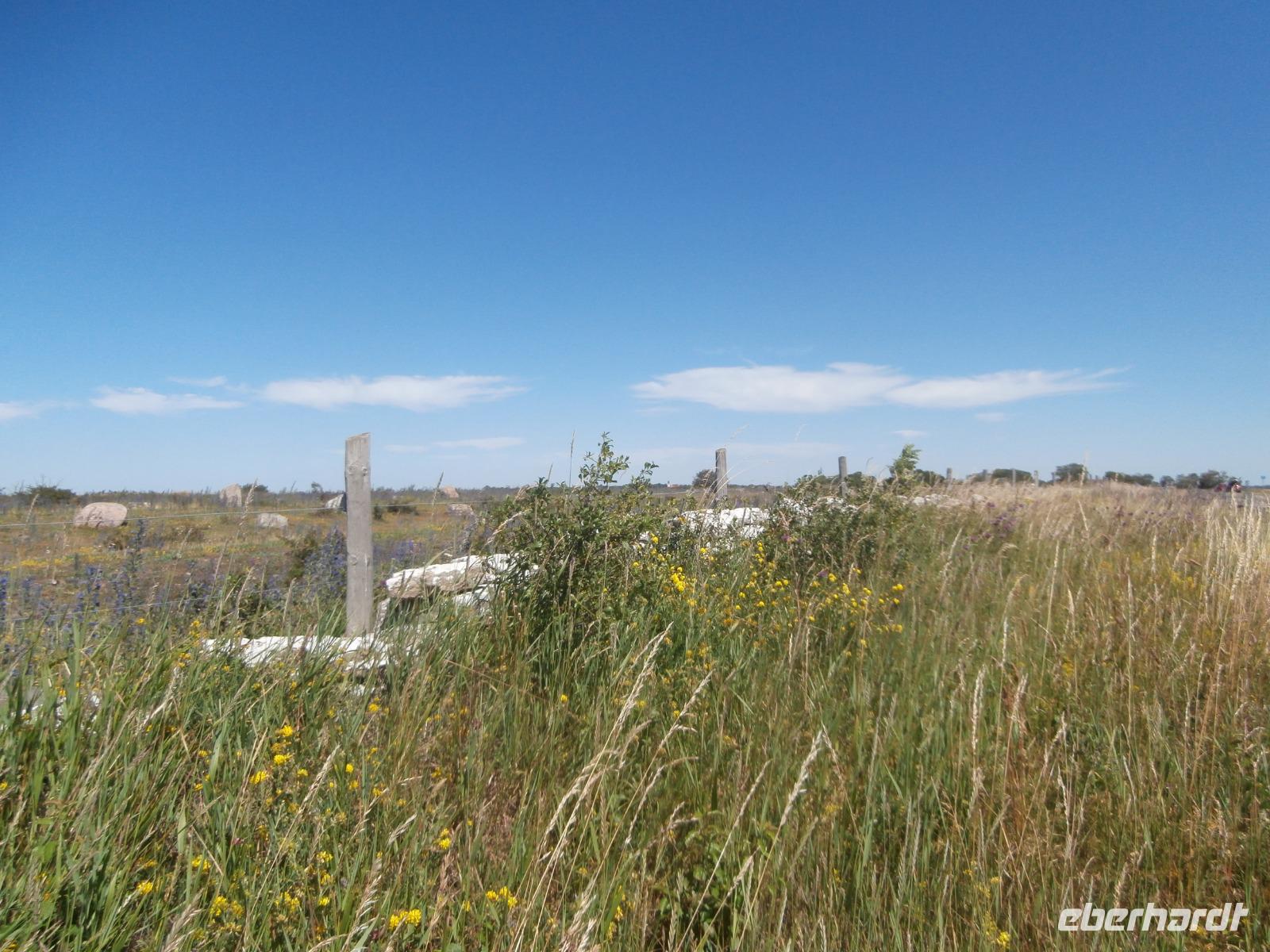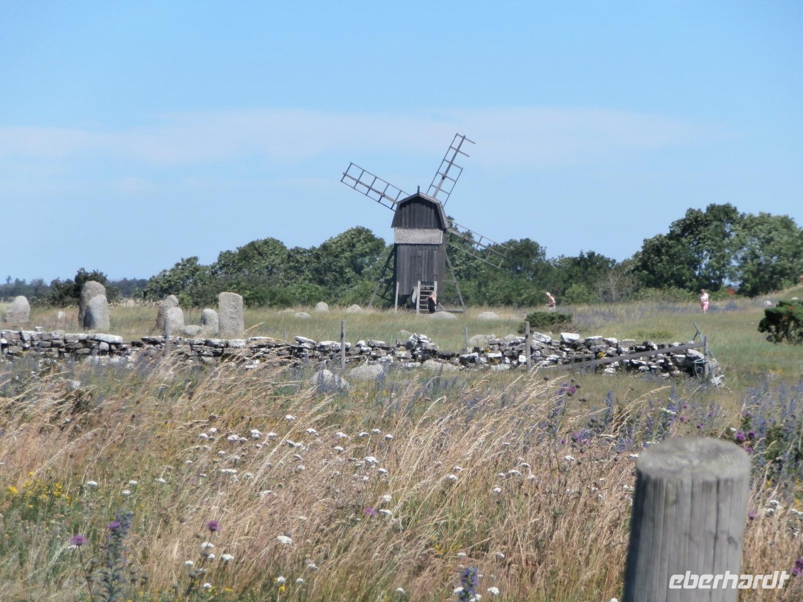 Wir starten mit Sommertemperaturen von über 30 Grad in den Tag, am Dom erwartet uns der Stadtführer Rune Persson. Mit ihm besichtigen wir zuerst den Dom von Kalmar, er steht in nächster Nähe zu unserem Hotel. Nach einem kleinen Stadtspaziergang durch Kalmar, erwartet uns Ingo im Bus und dann beginnen wir die Rundfahrt hinüber auf der Ölandsbron, unter uns der Kalmarsund, zur Königsinsel, wie man Öland noch bezeichnet. Noch heute ist das Sommerschloß Solliden in nächster Nähe zu Borgholm, der feste Sommersitz der Königsfamilie. Wir erschließen uns am Vormittag zuerst den Süden Ölands, ins Weltkulturerbe hat man diese Agrarlandschaft Südölands aufgenommen, dazu zählt das Stora Alvaret als weltweit einzigartige Karstlandschaft. Sagenhaft was in dieser steppenartigen Umgebung noch alles wächst. Die vielen Windmühlen, die es früher noch auf der Insel gab, sind weniger geworden, aber wir können auf unserer Rundfahrt wunderschöne Exemplare