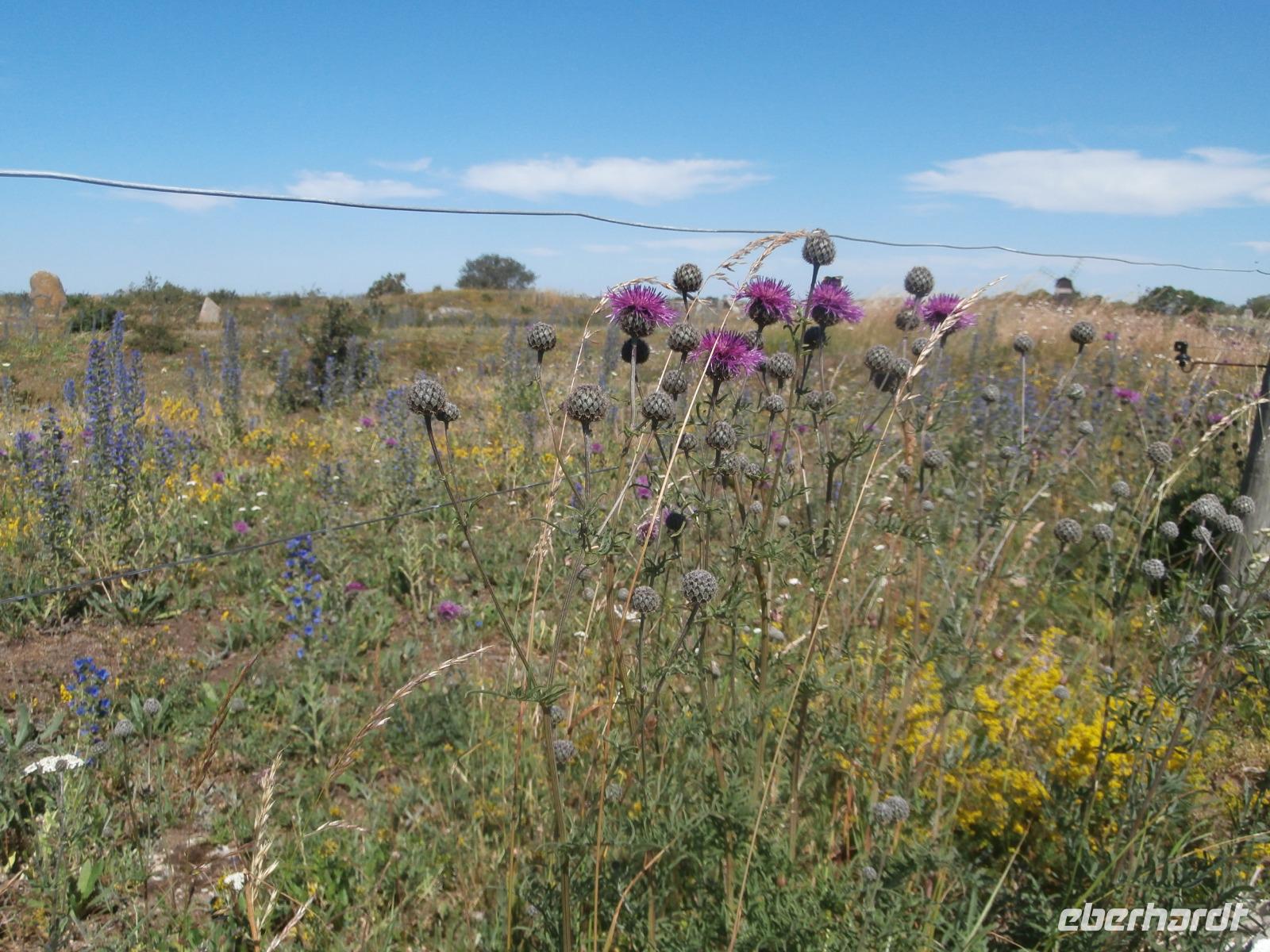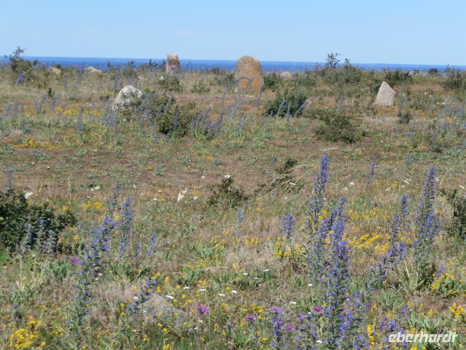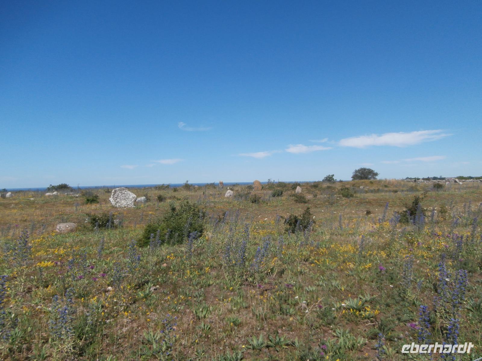 Wir starten mit Sommertemperaturen von über 30 Grad in den Tag, am Dom erwartet uns der Stadtführer Rune Persson. Mit ihm besichtigen wir zuerst den Dom von Kalmar, er steht in nächster Nähe zu unserem Hotel. Nach einem kleinen Stadtspaziergang durch Kalmar, erwartet uns Ingo im Bus und dann beginnen wir die Rundfahrt hinüber auf der Ölandsbron, unter uns der Kalmarsund, zur Königsinsel, wie man Öland noch bezeichnet. Noch heute ist das Sommerschloß Solliden in nächster Nähe zu Borgholm, der feste Sommersitz der Königsfamilie. Wir erschließen uns am Vormittag zuerst den Süden Ölands, ins Weltkulturerbe hat man diese Agrarlandschaft Südölands aufgenommen, dazu zählt das Stora Alvaret als weltweit einzigartige Karstlandschaft. Sagenhaft was in dieser steppenartigen Umgebung noch alles wächst. Die vielen Windmühlen, die es früher noch auf der Insel gab, sind weniger geworden, aber wir können auf unserer Rundfahrt wunderschöne Exemplare