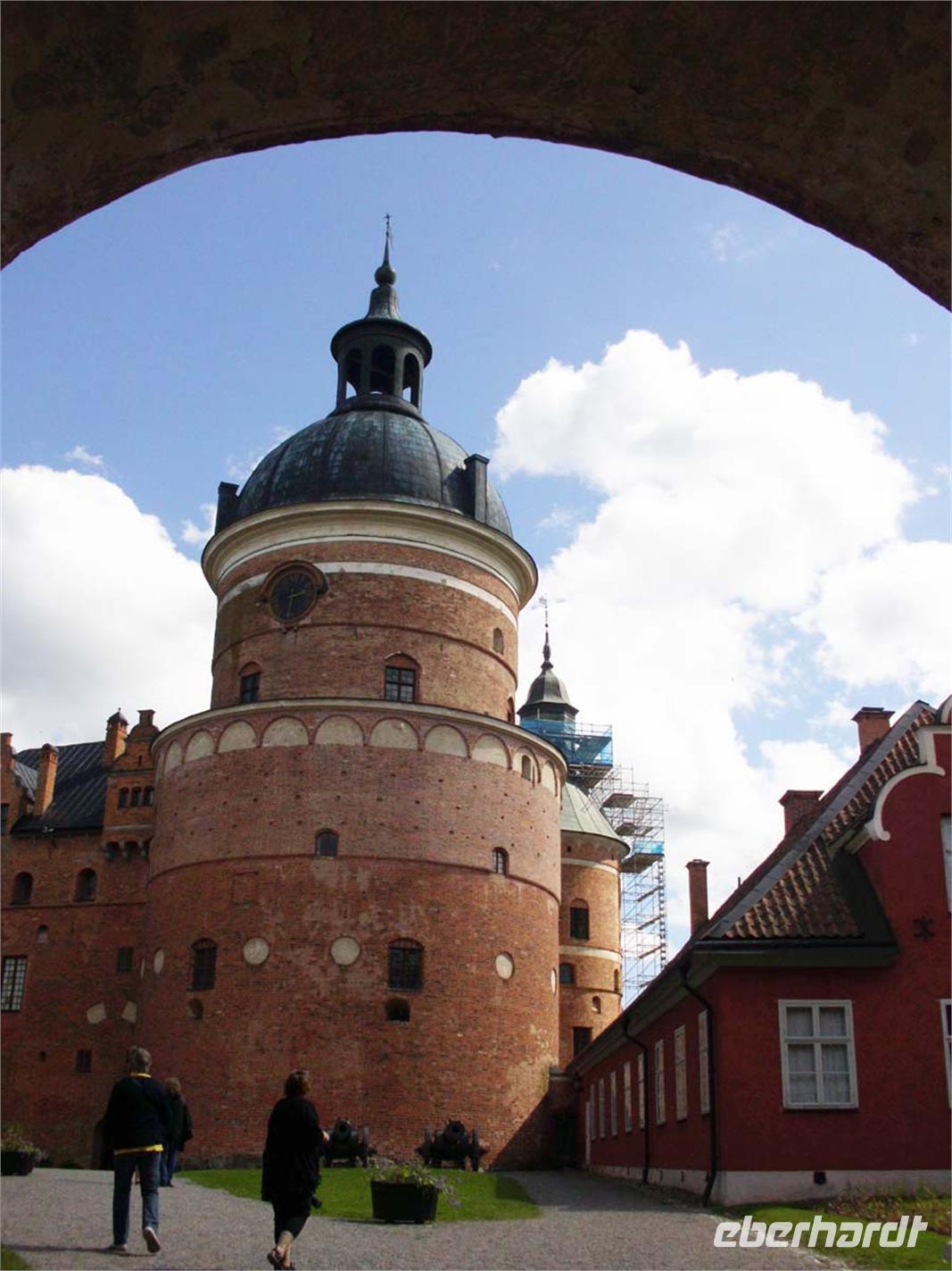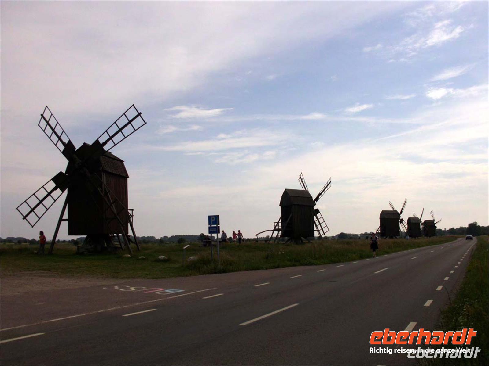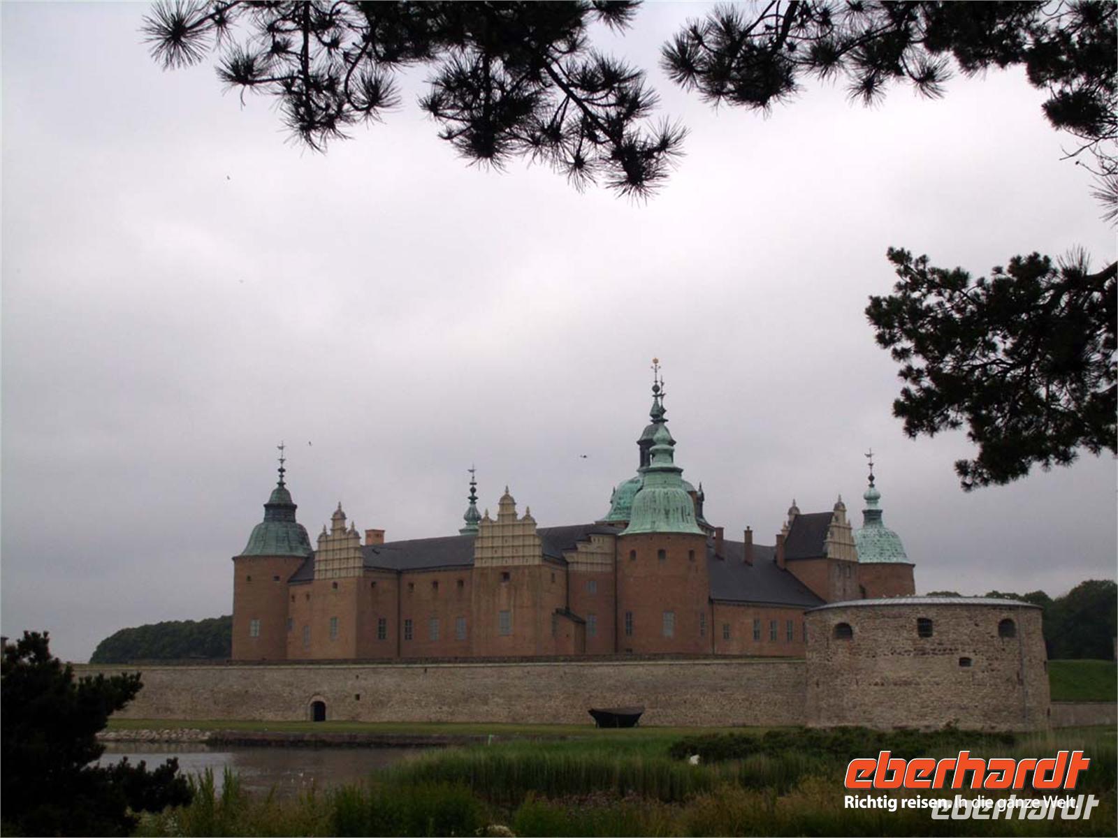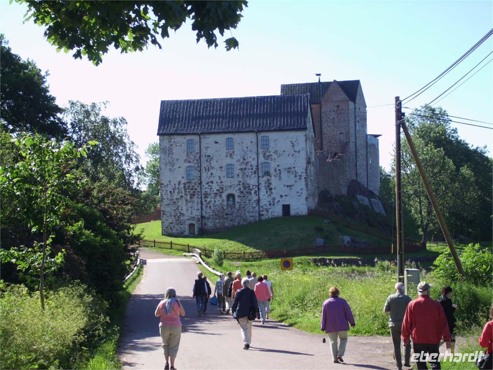 Leuchtturm Langer Jan kann man sich einen guten Überblick über die Umgebung verschaffen. Nur heute nicht, denn der Nebel behindert die Sicht doch zu sehr. Auf dem Weg in den Norden stoppen wir in Lerkaka, wo gleich fünf der typischen Windmühlen Ölands aufgereiht sind und besichtigen hernach die Dorfkirche von Gärdöse, eine der besterhaltenen der Insel. Nach einem Photostop am Schloß Borgholm stoßen wir mit einem Gläschen Sekt bei Glömminge auf die Reise an. Als Abschluß steht ein Besuch in der frühmittelalterlichen Fluchtburg Graburg, auf dem Programm, von der noch ein riesiger Steinwall, Rest der ehemaligen Ringmauer erhalten ist. Erste Funde datieren das Bauwerk in das 6. Jh. Nun verlassen wir Öland und reisen zurück zu unserem Hotel direkt am Hauptplatz in Kalmars Innenstadt, wo schon ein leckeres Menu auf uns wartet.