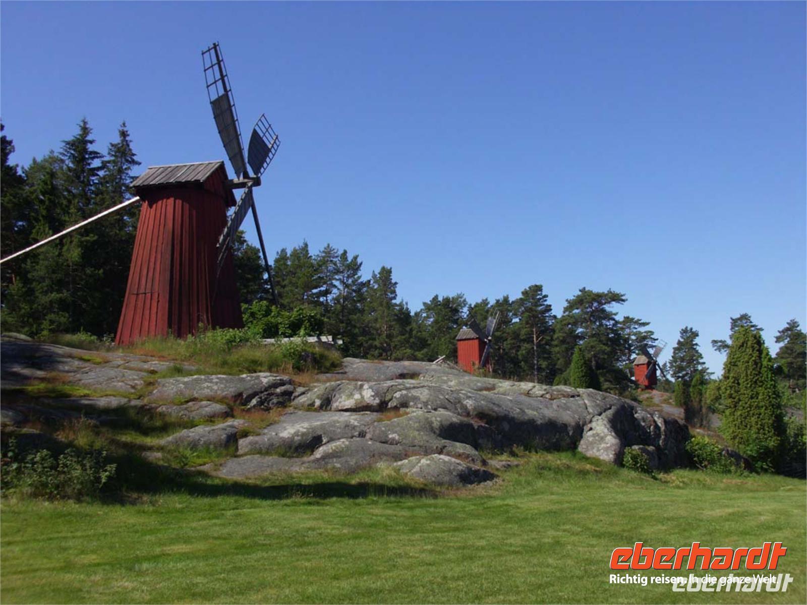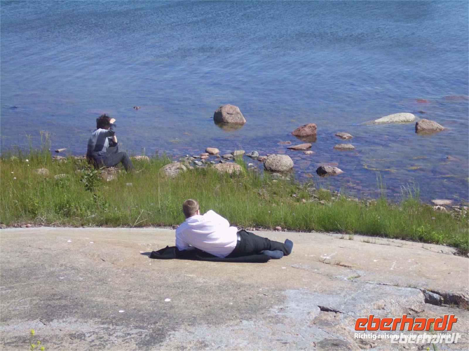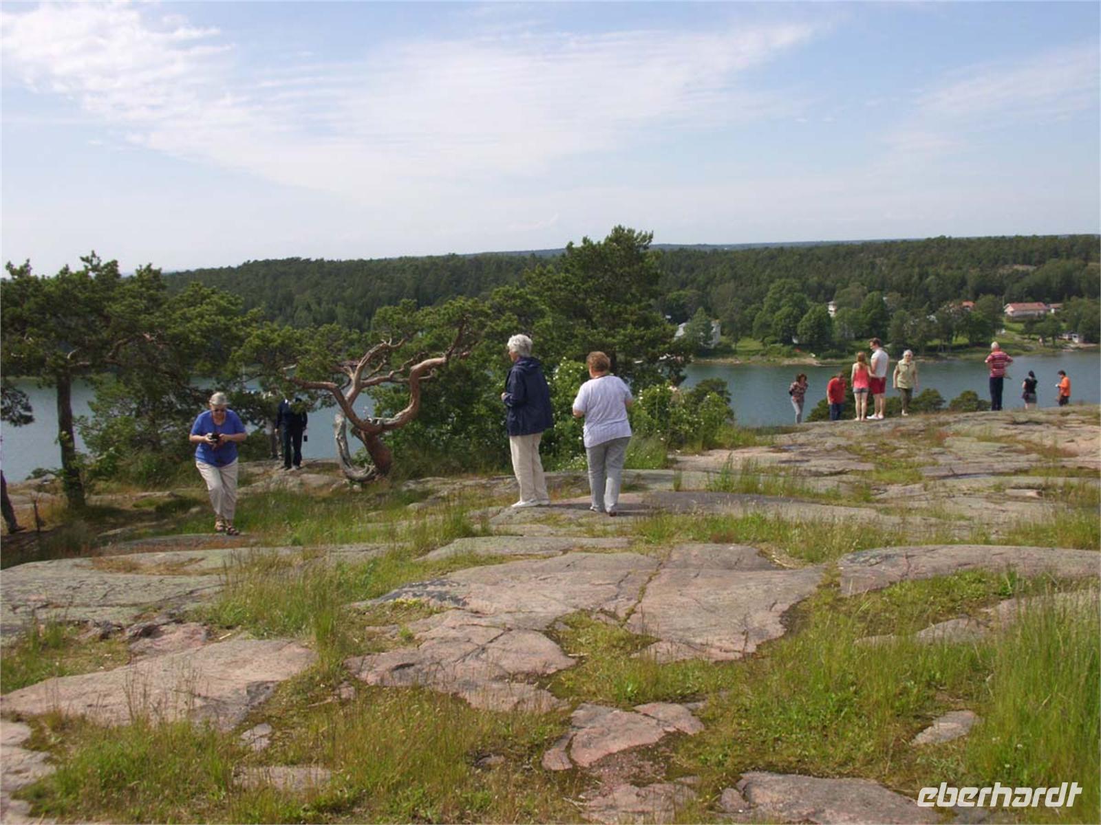 Unsere heutige Alandrundfahrt führt uns zunächst nach Hammarland zur Kirche St. Michael von Finström. Die Reise geht weiter durch Dort sind vor allem die alten Wandbemalungen interessant. Zwischen Pröstö und Töfto ganz im Osten nehmen wir die kostenlose Fähre. Auf der Insel legen wir eine ausgedehnte Pause an den Schären ein. Die Landschaft ist atemberaubend schön. Stille umgibt uns, die nur durch den kleinen Wellengang unterbrochen wird, der gegen die rötlichen Granitfelsen schlägt. Wir wollen gar nicht wieder weg von hier. Auch locken Unmengen von reifen Walderdbeeren, die manch einer seit seiner Kindheit nicht mehr in die Mengen gesehen hat. Unsere nächste Besichtigung führt uns nach Bormannslund, einer russischen Festung aus dem 19. Jh. Sie wurde im Krimkrieg von Briten und Franzosen erobert und gesprengt und beendete die Hegemoniebestrebungen des Zarenreichs in diesem Gebiet. Nur ein kurzes Stück weiter erreichen wir das Freilichtmuseum Jan