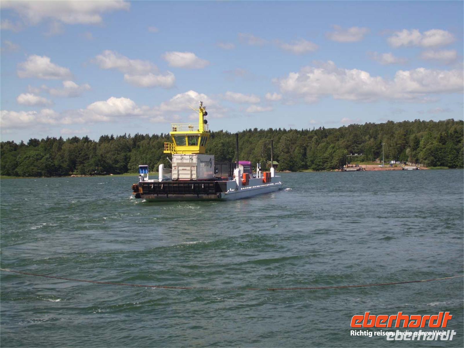 Früh reisen wir nach Grissleham zum Fährhafen. Bei strahlendem Sonnenschein legt die Fähre ab, die uns binnen 2 Stunden auf die Alandinseln bringen wird. Um 13 Uhr finnischer Zeit legt die Fähre in Eckerö an. Durch eine völlig andere Landschaft als auf dem schwedischen Festland reisen wir in den Hauptort Mariehamn. Hier erwartet uns schon Beatrice, mit der wir eine erste Erkundungsfahrt durch den Ort und die nähere