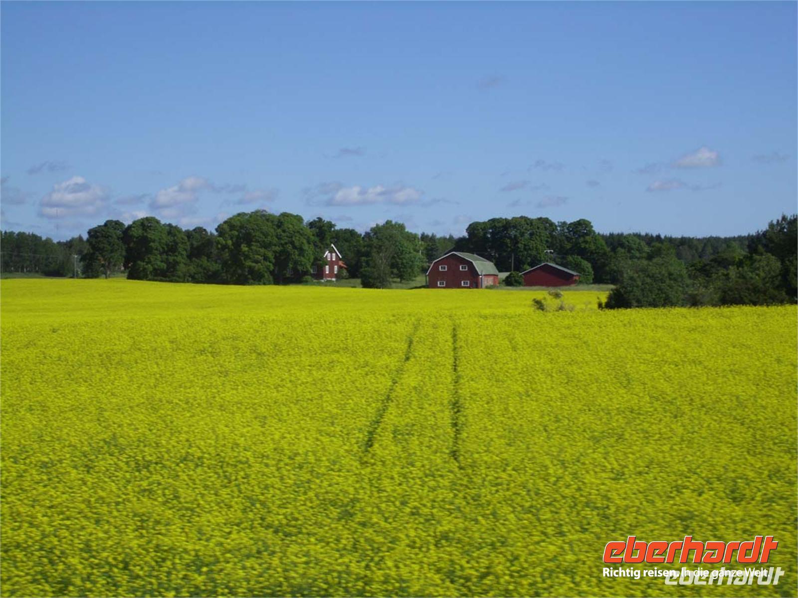Ferienhäuser anzuschauen, die bunte Farbtupfer in die ausgedehnten Wälder setzen. Boote am Ufer gehören selbstverständlich mit dazu. Hinter jeder Biegung bietet sich ein neues Photomotiv. Man versteht schnell, warum der Schärengarten vor Stockholm als größter seiner Art auf der Unesco Heritage Liste steht. Je näher wir Schedens Hauptstadt kommen, desto mehr mischen sich unter die kleinen Hütten auch die schicken Villen reicher Stockholmer, welche hier ihr Domizil im ungestörten Grünen haben. Am Abend erreichen wir unser Hotel am Stadtrand von Stockholm, das sowohl mit Zimmerausstattungen als auch mit einem Buffet auf hohem Niveau aufwartet.