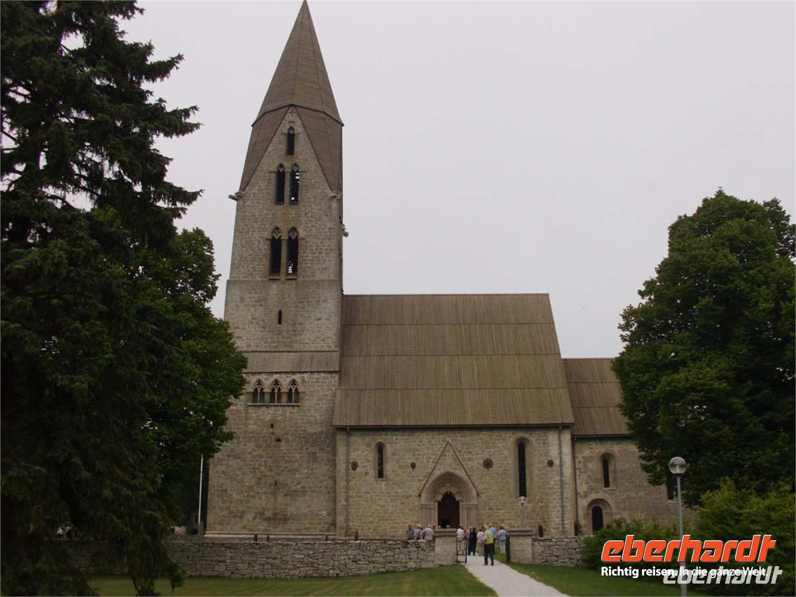 Wickingerzeit, sondern auch die z. T. weltberühmten Bildsteine, eine für Gotland typische Varietät der Runensteine. Natürlich wird auch der Dom als einzige noch erhaltene Kirche der Stadt und der botanischen Garten besucht. Die Stadt der Rosen und Ruinen wird Visby auch genannt, weil von den 17 riesigen Kirchen in den Mauern 16 Ruinen sind, und weil es an allen Hauswänden und Zäunen herrlich nach blühenden Rosen duftet. Am frühen Abend erreichen wir unser Hotel, einen alten Herrenhof mitten auf dem Land. Es ist alles gut auf uns vorbereitet. Den Tag beschließen wir mit einem leckeren Abendessen vom Buffet.