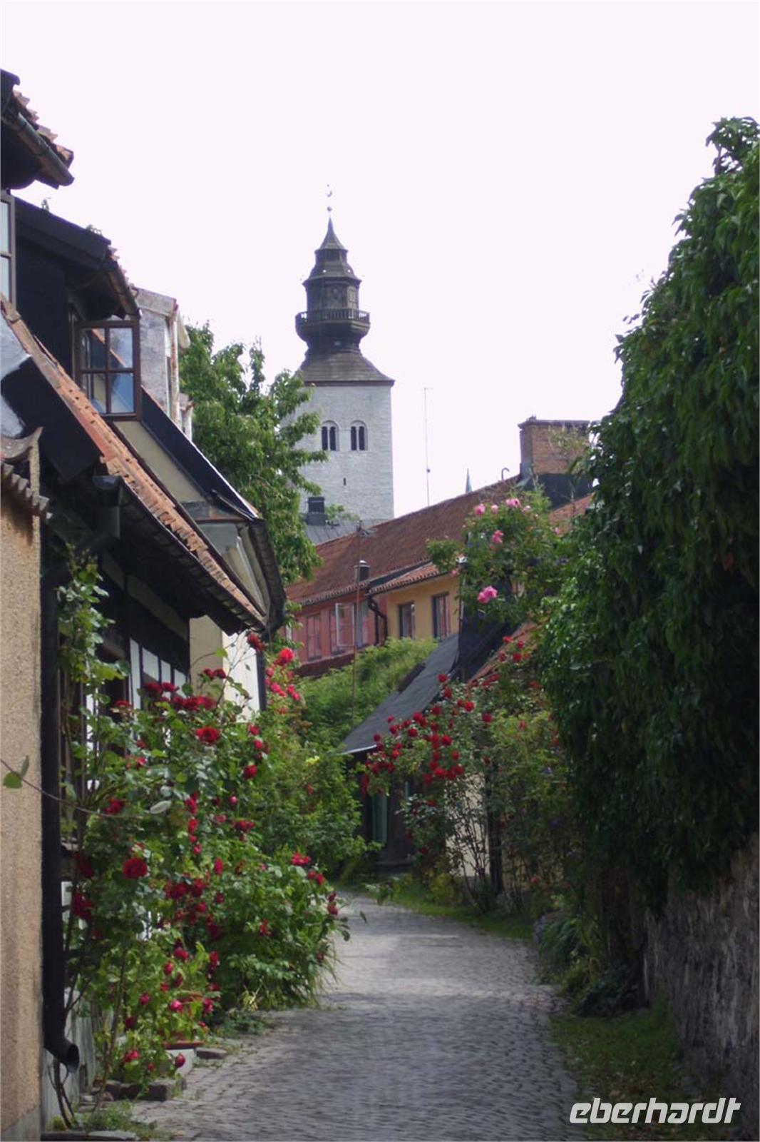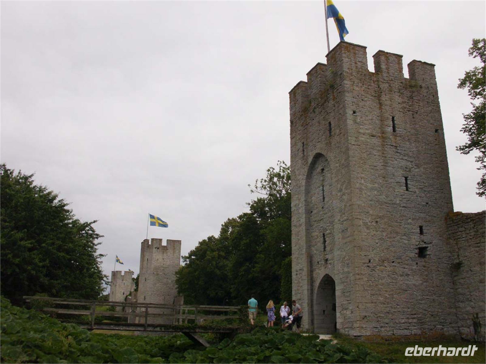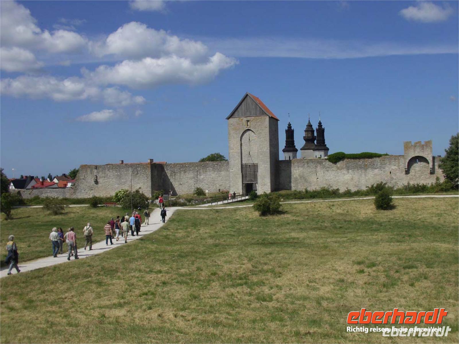Heute wollen wir nach Gotland übersetzen. Dazu müssen wir sehr früh aufstehen um gegen 6.00 Uhr an der Fähre in Nynäshamn zu sein. Punkt 7.00 Uhr legt die Fähre pünktlich in Nynäshamn ab. An Bord gibt es mehrere Restaurants, ein Sonnendeck und Bars. Zudem ist für jeden Fahrgast ein Sitzplatz vorgesehen, der sehr bequem ist. Die drei Stunden Fahrt vergehen also recht schnell, obwohl sie die meiste Zeit über offenes Meer führen. Am Vormittag erreichen wir die alte Hansestadt Visby. Unser Gästeführer steht schon bereit und so betreten wir die Stadt durch die 3,5 km lange und bestens erhaltene Stadtmauer und lassen uns sofort durch die engen Gassen der Hauptstadt Gotlands führen. Im Stadtmuseum ist die wechselvolle Geschichte der mittelalterlichen Großstadt bestens dargestellt. Beeindruckend sind nicht nur die kiloschweren Hacksilberfunde aus der