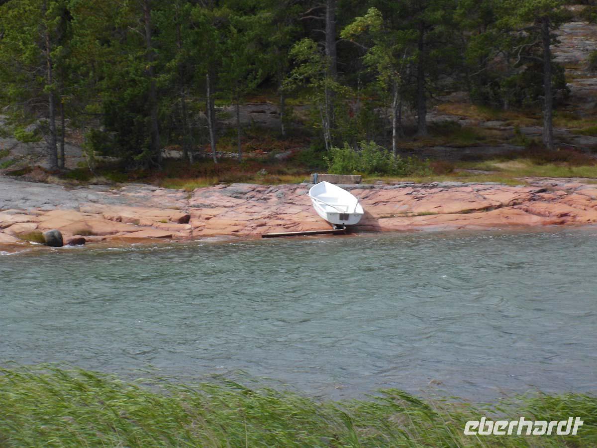 Früh reisen wir nach Grissleham zum Fährhafen. Bei strahlendem Sonnenschein legt die Fähre ab, die uns binnen 2 Stunden auf die Alandinseln bringen wird. Um 13 Uhr finnischer Zeit legt die Fähre in Eckerö an. Der Wind geht ganz schön stark und so ist dem einen oder anderen doch recht mulmig. Durch eine völlig andere Landschaft als auf dem schwedischen Festland reisen wir in den Hauptort Mariehamn. Hier erwartet uns schon Uwe, mit dem wir eine erste Erkundungsfahrt durch den Ort und die nähere Umgebung unternehmen.