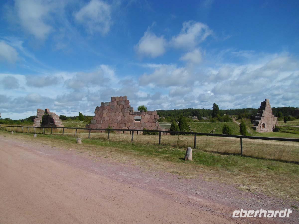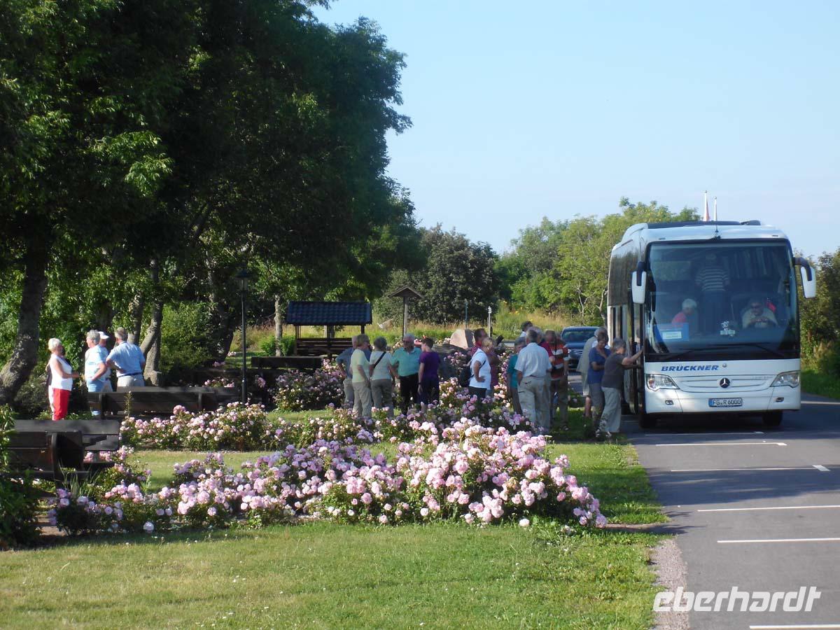 Unsere Südgotlandrundfahrt beginnen mit der Besichtigung der Kirche von Dalhem. Auch hier erwarten uns prächtige Wandmalereien aus dem Mittelalter. Unser zweiter Abstecher führt uns zur Ruine des Zisterzienserklosters Roma. Es ist das einzige Kloster auf Gotland außerhalb von Visby. Heute wird es für Thateraufführungen genutzt. Im Naturum bei Vamlingbo wird ausführlich die Geographie und Natur der Insel Gotland beschrieben und dargestellt. Zudem wartet hier auch eine weitere Dorfkirche auf und hinter dem Pfarrhaus ein wunderschöner alter Garten. Die Südspitze von Gotland erreichen wir am frühen Nachmittag bei Majstregarden, wo wir auch eine Pause einlegen.. Die immer noch beeindruckende Ruine wird heute zur Aufführung von Shakespearstücken genutzt. Wir machen uns auf den Weg nach an die Ekstakusten, von wo aus wir den Blick auf die nahe gelegenen Karlsinseln genießen. Die Tour beschließen wir mit der Besichtigung des Schiffsgrabes bei Klintehamn. In Suderby verabschieden wir uns von Verena und Elke, begeben uns nach Visby und setzen über nach Oskarshamn. Von hier aus setzen wir unsere Reise nach Kalmar zu unserem Hotel fort, wo unser Tag endet.