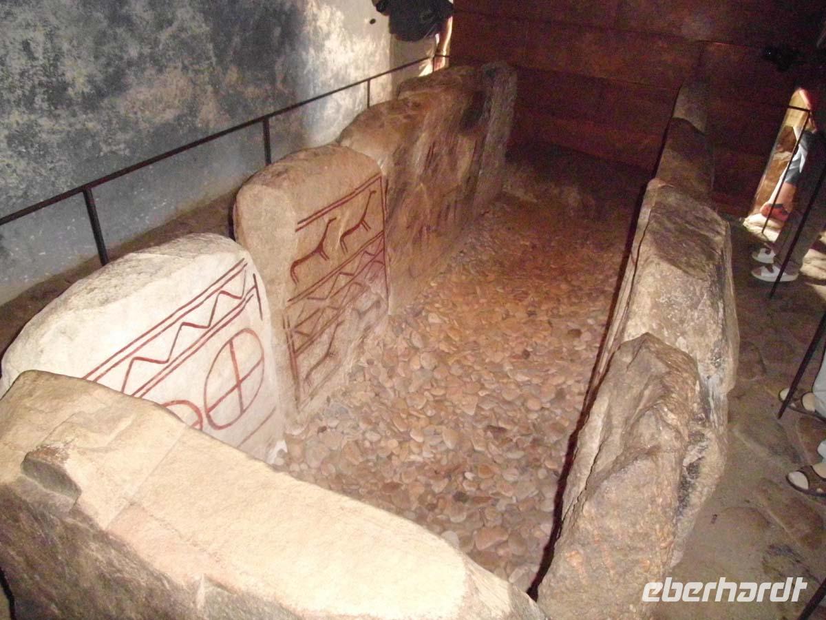 Wir lassen es uns auch nicht nehmen, einen Stop am größten Bronzezeitlichen Hügelgrab Skandinaviens einzulegen. Dem so genannten Königsgrab von Kivik. Es datiert ca. 1600 v. Chr. und hat einen Durchmesser von 75 m. Die Steinkiste im Innern ist mit verzierten Platten ausgestattet. Wahrlich eine Grabanlage für eine hochgestellte Persönlichkeit.