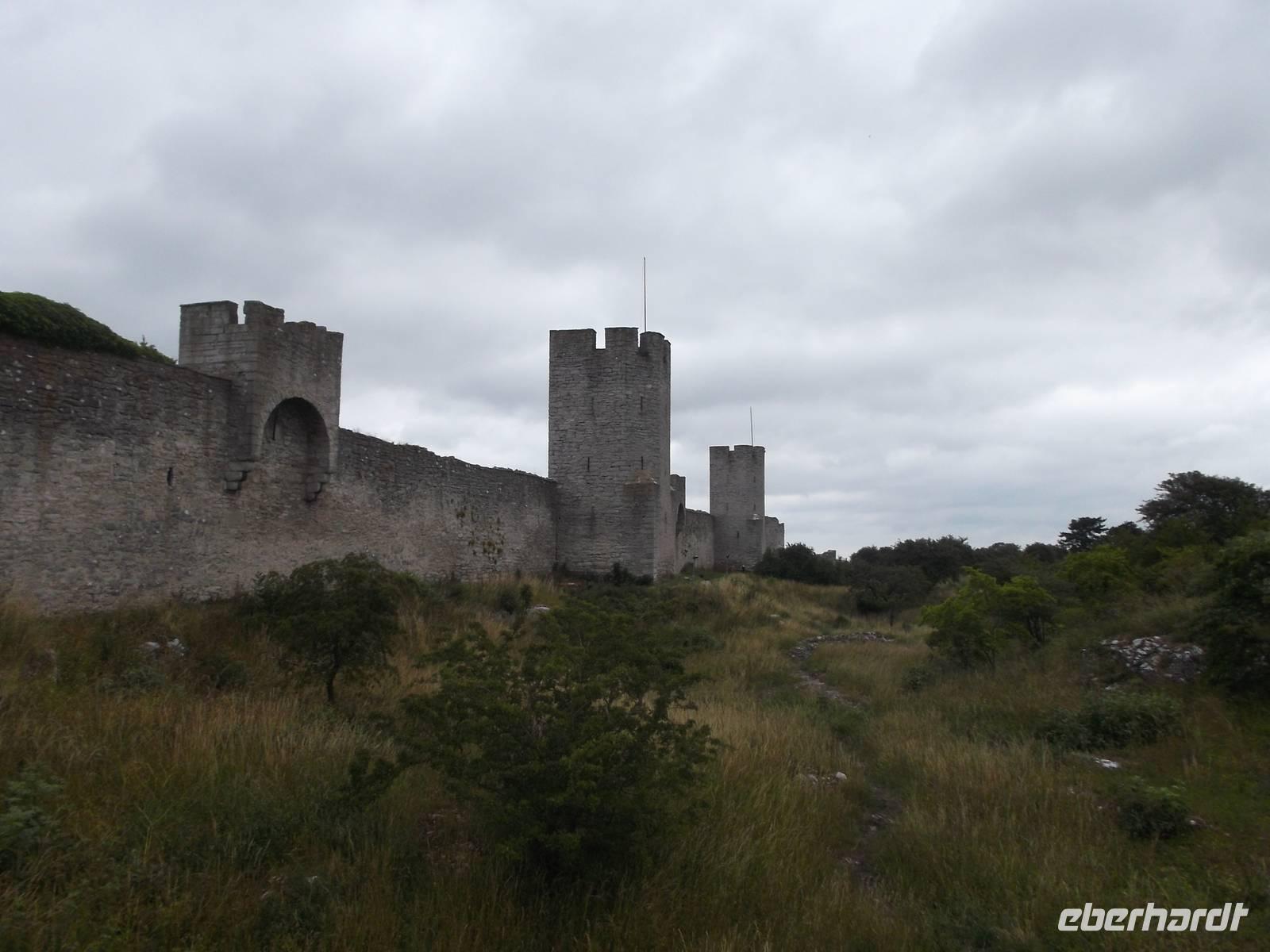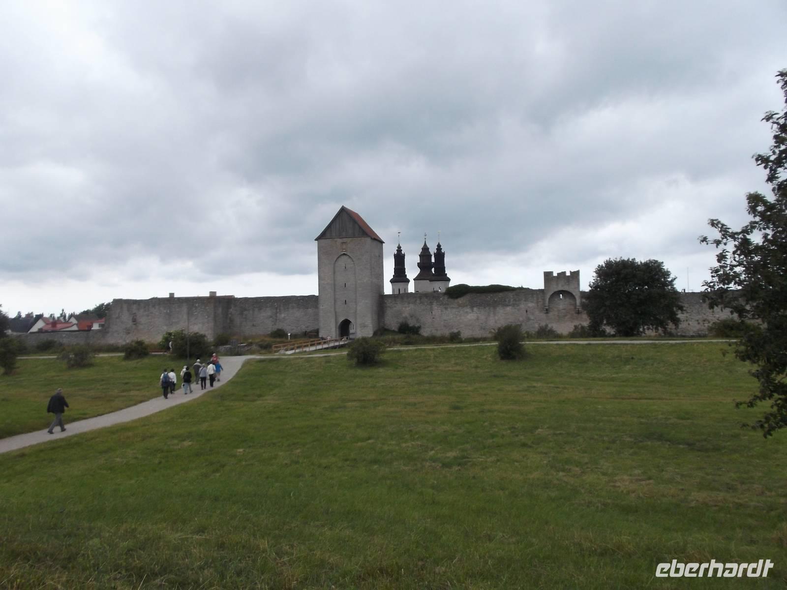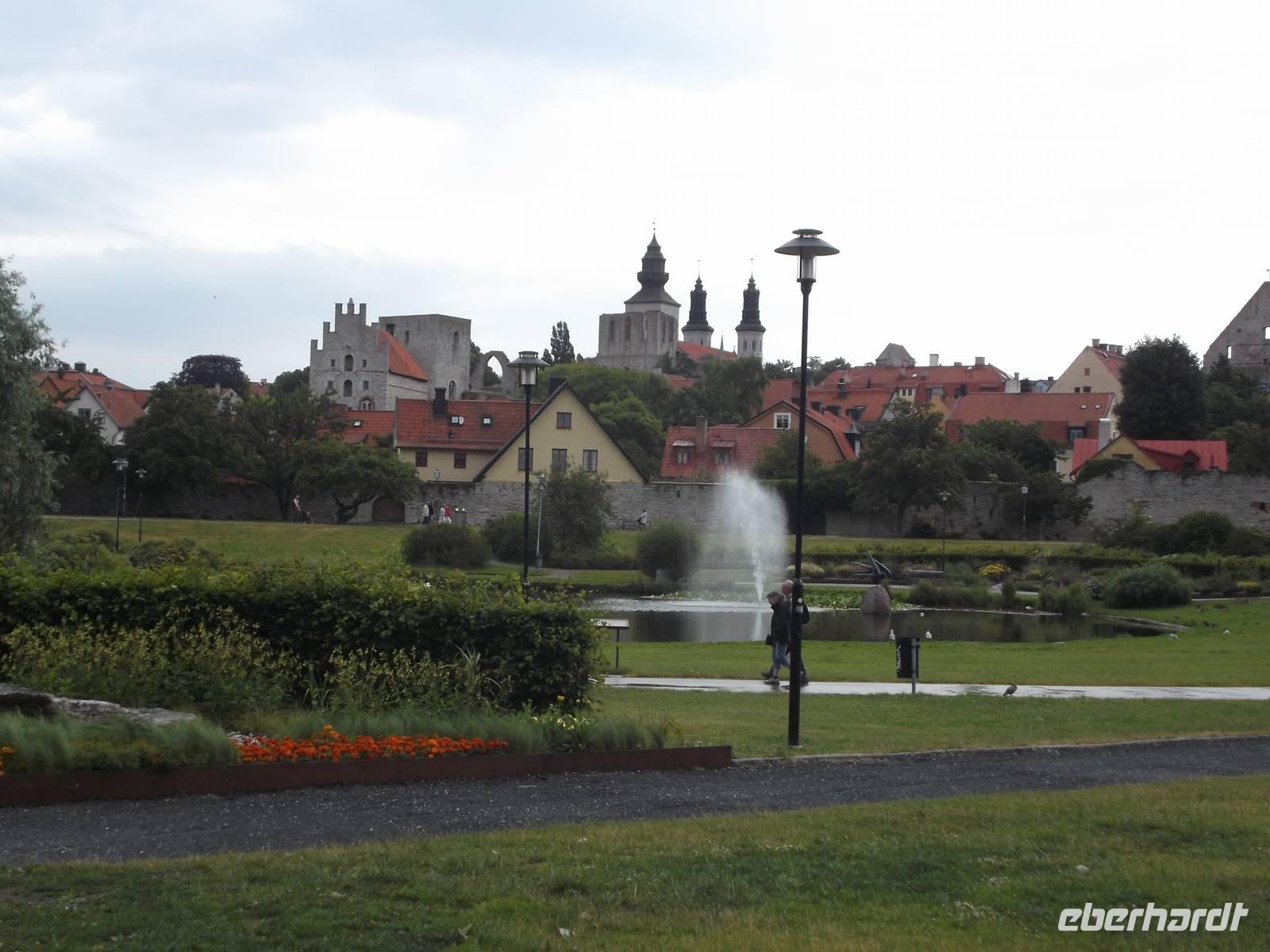 Sehr früh begann der heutige, recht lange Tag, denn noch vor dem Frühstück verließen wir unser Stockholmer Messehotel. Nach einer knappen Stunde Fahrt erreichten wir den kleinen Fährhafen Nynäshamn. Neben der Stena-Line nach Finnland gibt es hier auch die Fähren von Destination Gotland. Bereits um sieben legte unser recht großes Fährschiff ab und heute nahmen wir - wegen der frühen Abfahrt aus dem Hotel - ein nicht übermäßig aufregendes Frühstück auf der Fähre ein. Gegen 10.15 Uhr hatten wir Visby erreicht, den Hauptort und wichtigsten Fährhafen auf der vor allem von den Schweden selbst frequentierten Ferieninsel Gotland. Reiseleiter Bertil empfing uns, der uns die nächsten Tage in seiner „Heimat" betreuen würde. Zuerst zeigte er uns die alte Hansestadt Visby. Der mittelalterliches Ambiente ausstrahlende Ort besticht zunächst einmal durch seine hervorragend erhaltene Stadtmauer mit etwa vierzig Stadttoren und mächtigen Verteidigungstürmen. Die fast dreieinhalb Kilometer lange Befestigungsanlage umschließt immer noch fast die gesamte Innenstadt. Wir sahen uns zunächst die Wasserseite an und spazierten dann durch die Innenstadt, in der gut erhaltene alte Speicher- und Packhäuser mit Stufengiebeln, kleinere Wohnhäuser und viele aus dem Mittelter stammende Bauten auffallen. Nach kurzer erneuter Busfahrt erreichten wir die dreifache Wall-Graben-Anlage der Stadtbefestigung an den höchsten Stellen von Visby und marschierten von außen durch die Dalmanspforte „von oben" in die Innenstadt. Die nach Restaurierung fast schneeweiß aussehende Domkirche St. Marien mit ihren dunklen hölzernen Turmaufsätzen lag dabei ebenso auf unserem Weg wie der große Markt und mehrere mittelalterlich wirkenden Gässchen. Der letzte große Höhepunkt während unseres Stadtrundganges war der Besuch des Fornsalen-Stadtmuseums. Hier erhielten wir einen guten Einblick in die Stadtgeschichte, erfuhren von der Bedeutung Gotlands und Visbys für den Ostsee- und den Osthandel in der Frühzeit und der frühen Hanseperioden. Wir konnten in der Schatzkammer den größten auf Gotland gefundenen Silberschatz begutachten, dessen zahlreicher Münzen aufgrund ihrer exotischen Prägestätten die Geschichte der umfangreichen Handelsbeziehungen in der Frühzeit der größten schwedischen Insel aufdeckten. Wir erlebten museal Aufbereitet die wichtigsten historischen Perioden der Entwicklung Gotlands mit und wir konnten anschaulich teilhaben an der dänischen Besetzung des Eilandes im 14. Jh. Das Besondere an diesem interessanten Museum ist, dass es selbst eines der größten Pack- und Warenhäuser Visbys war und man demzufolge viel gut Erhaltenes an der Originalstelle entdecken kann. Nicht nur das Wassersystem, das unter anderem die Keller der wuchtigen Steinhäuser bis heute kühl hält, sondern auch die Abwasseranlagen und sogar die sanitären Einrichtungen sind an den ursprünglichen Plätzen und in ihren bis heute funktionierenden Kreisläufen bis heute erhalten. Nach dem Besuch des Museums brachten wir unsere Sachen vom Bus zum in der Innenstadt gelegenen Hotel und hatten anschließend Freizeit, da wir nicht gleich zu der noch zu frühen Stunde in unser Hotel einchecken konnten.