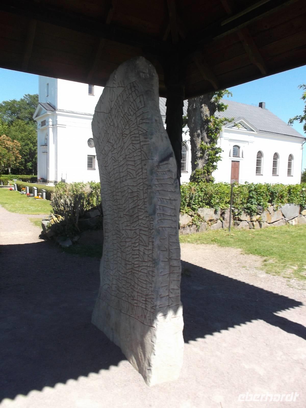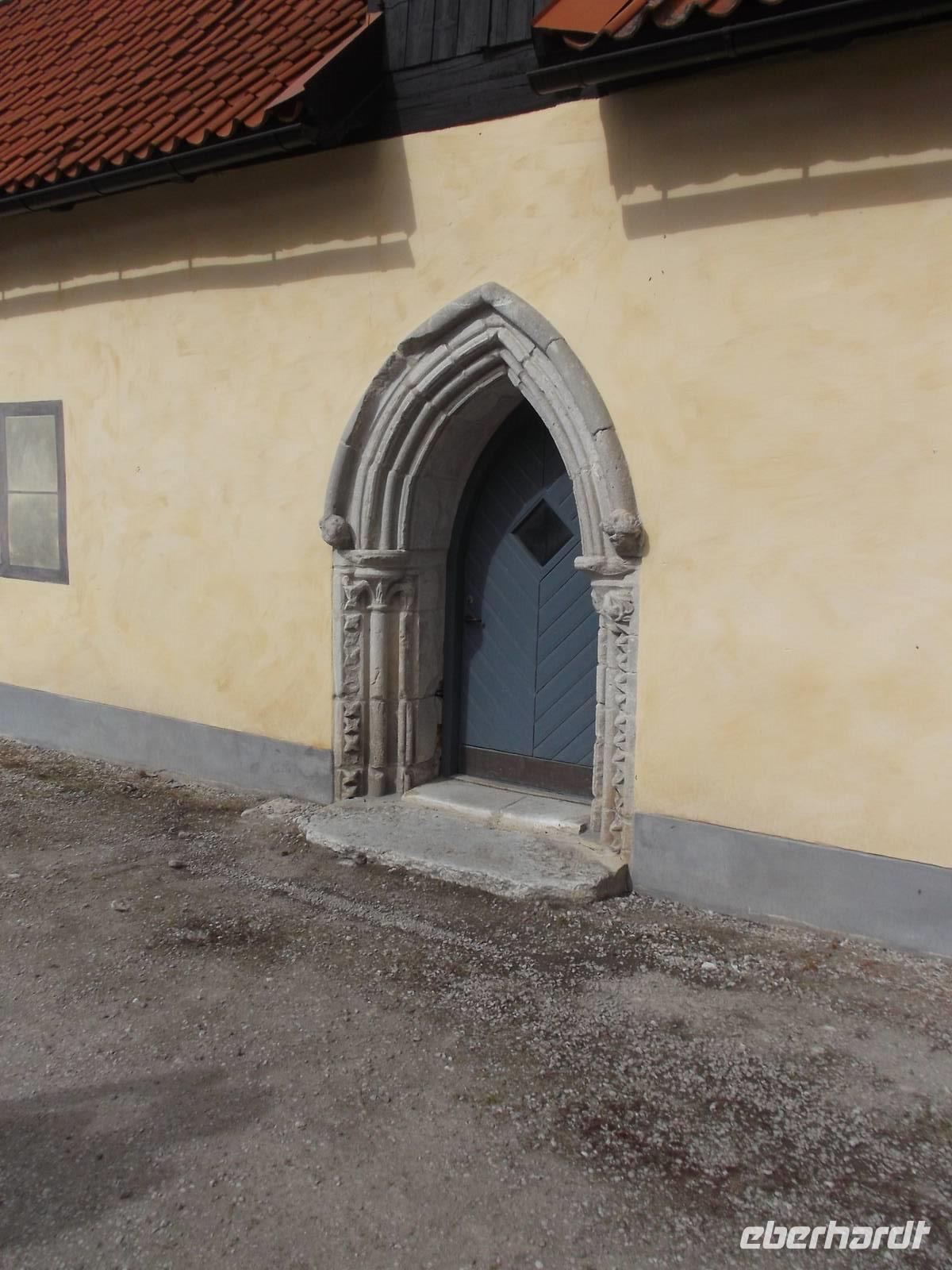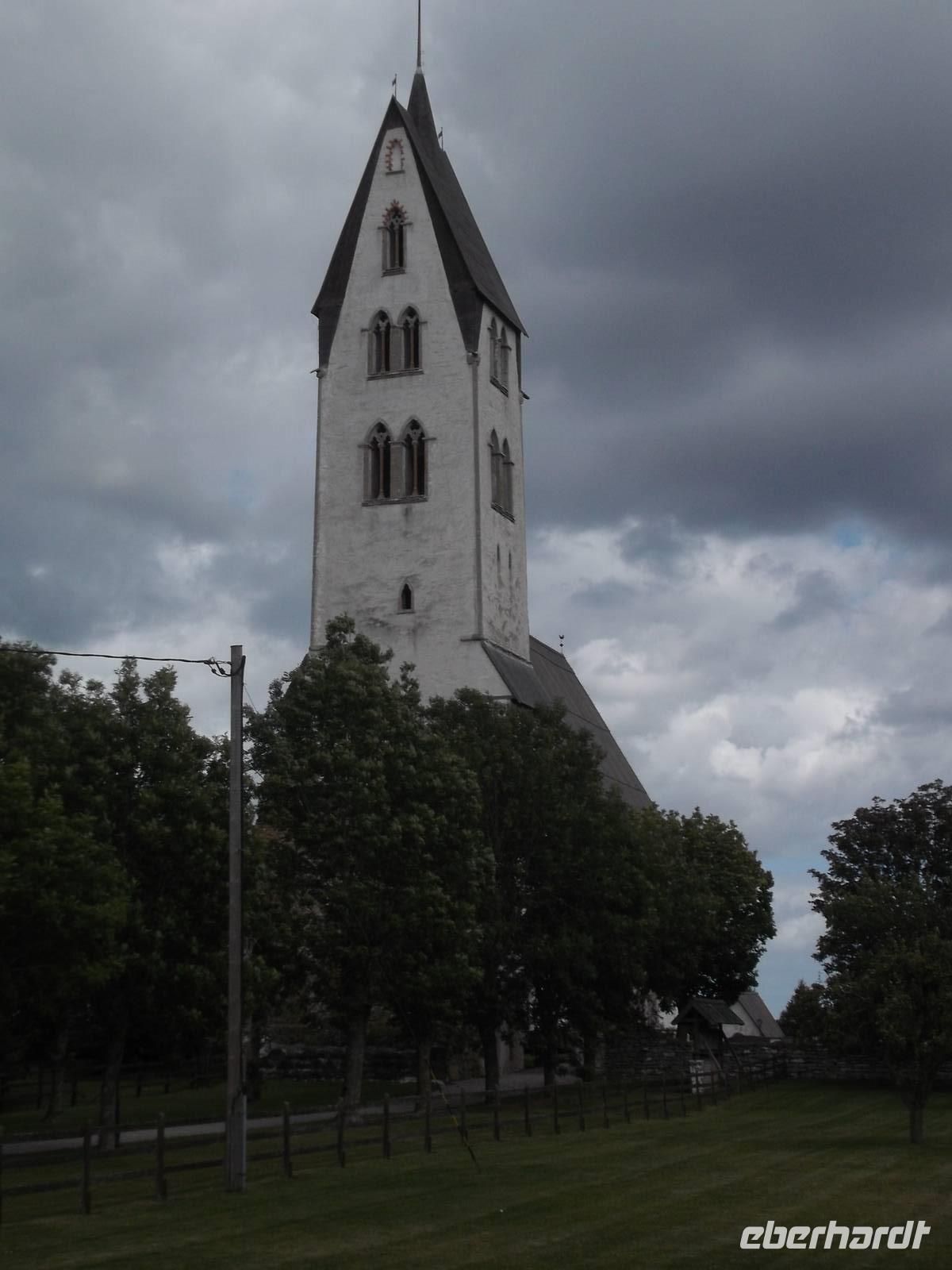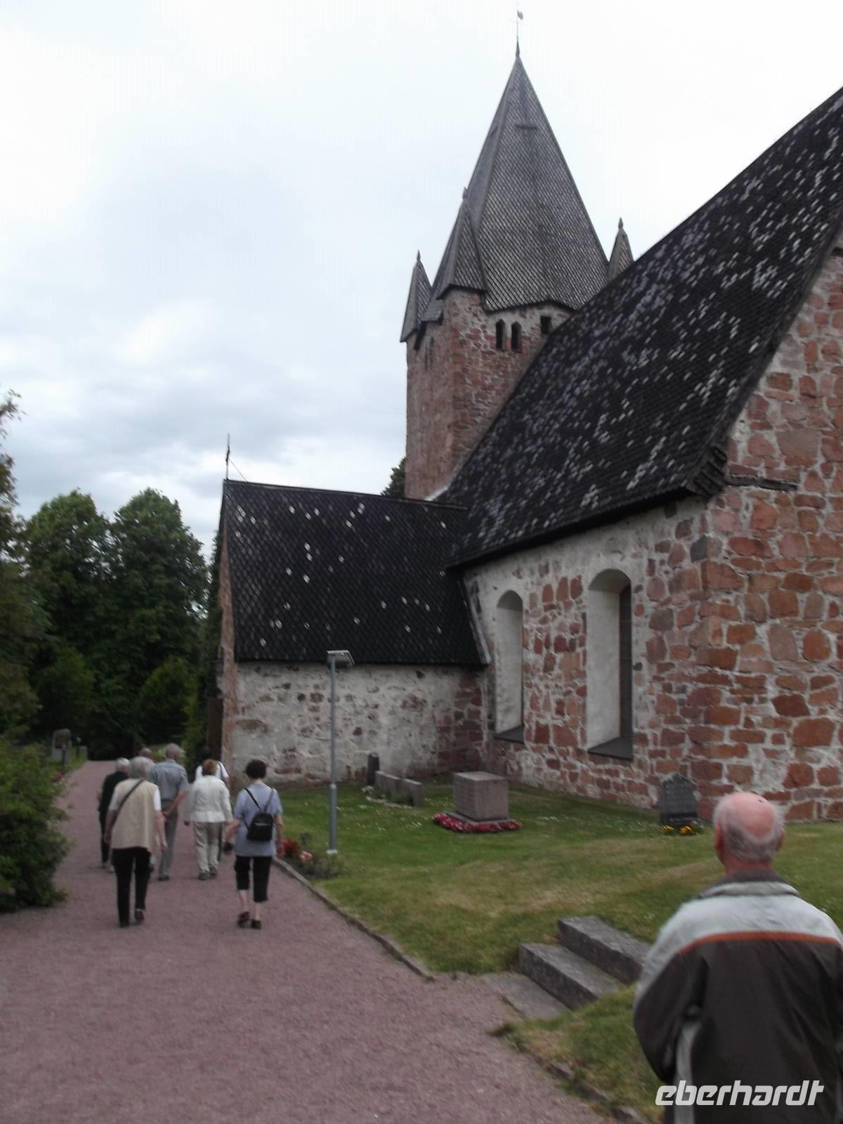 Dass es auch im Südteil der Insel schöne Kirchen gibt, lernten wir am Beispiel der uralten, aus dem 13. Jh. stammenden Kirche von Öja mit den davorliegenden wuchtigen Resten einer einstigen „Kastale", eines mächtigen Wehrturmes. Den Innenraum der Kirche beherrscht ein gewaltiges Triumphkreuz aus der Erbauungszeit der Kirche, mit biblischen Szenen und der sehr plastisch gestalteten Figur des gekreuzigten Christus. Es dient als Lettner und trennt die beiden Teile der auch ansonsten beeindruckenden Kirche.