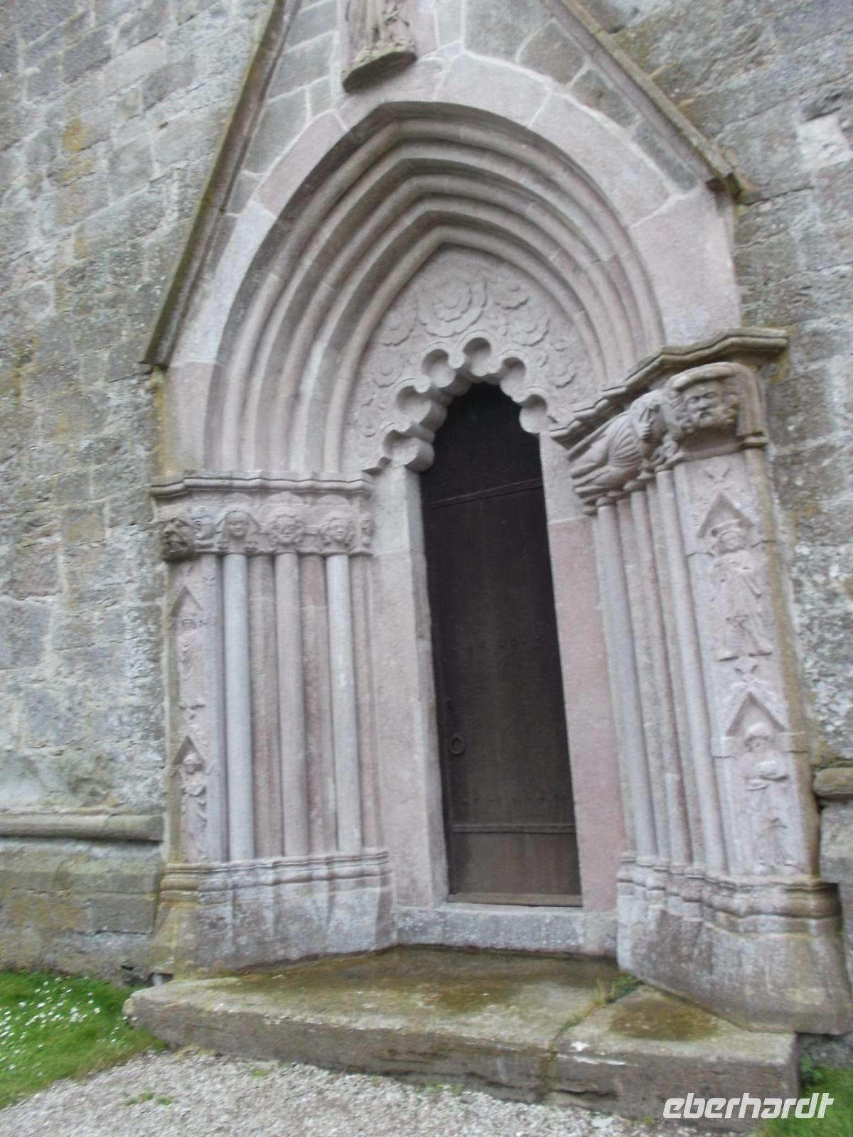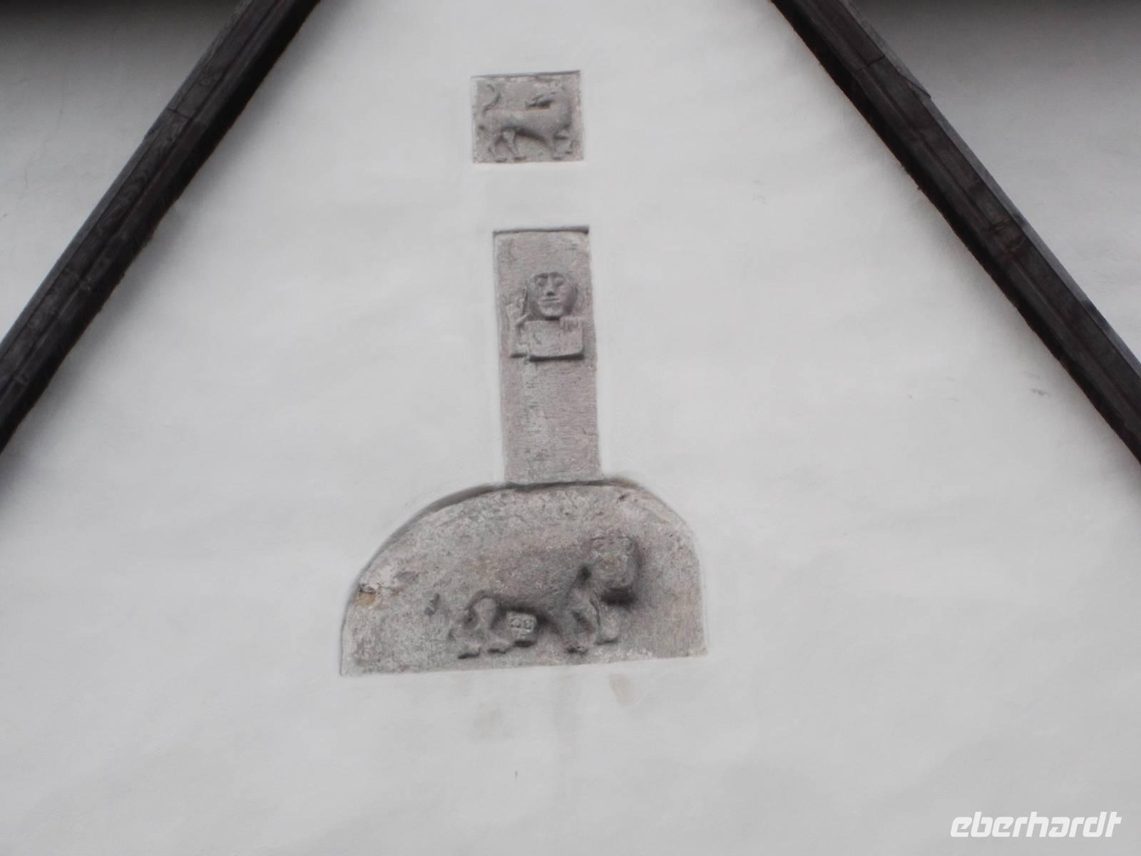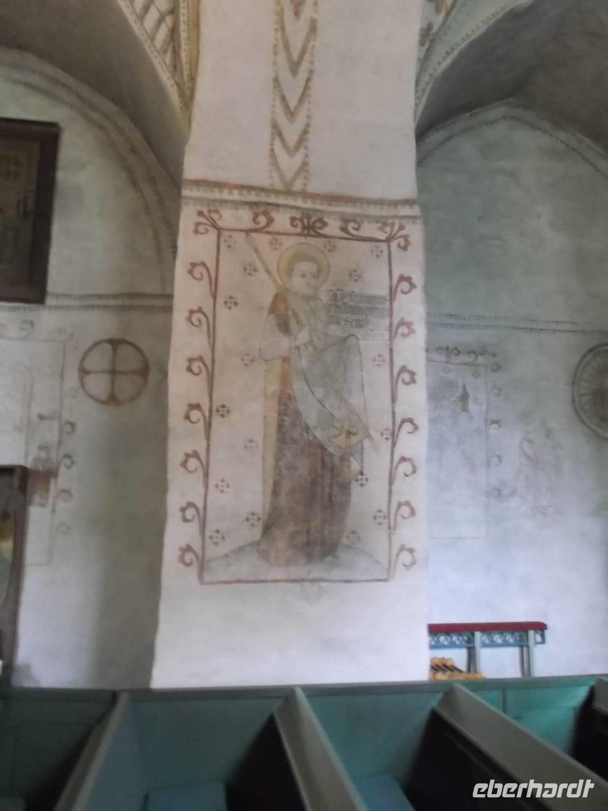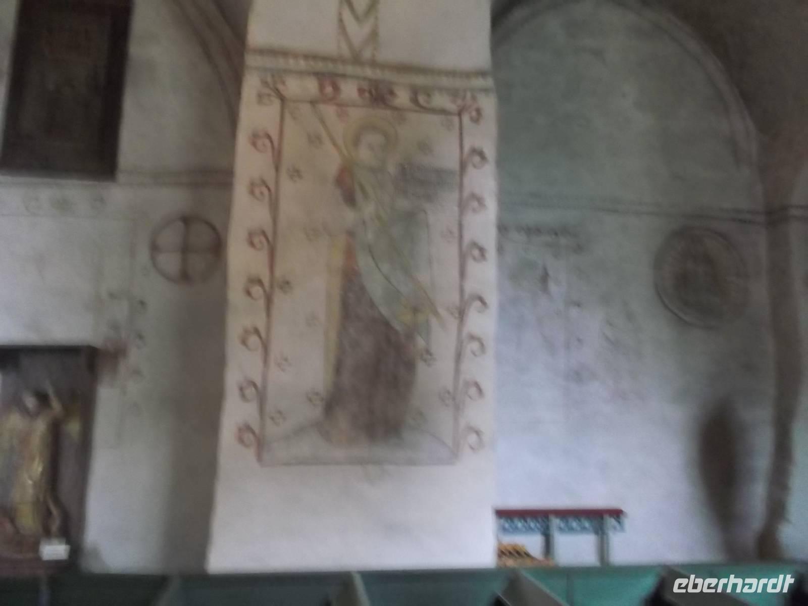 Dass es auch im Südteil der Insel schöne Kirchen gibt, lernten wir am Beispiel der uralten, aus dem 13. Jh. stammenden Kirche von Öja mit den davorliegenden wuchtigen Resten einer einstigen „Kastale", eines mächtigen Wehrturmes. Den Innenraum der Kirche beherrscht ein gewaltiges Triumphkreuz aus der Erbauungszeit der Kirche, mit biblischen Szenen und der sehr plastisch gestalteten Figur des gekreuzigten Christus. Es dient als Lettner und trennt die beiden Teile der auch ansonsten beeindruckenden Kirche.