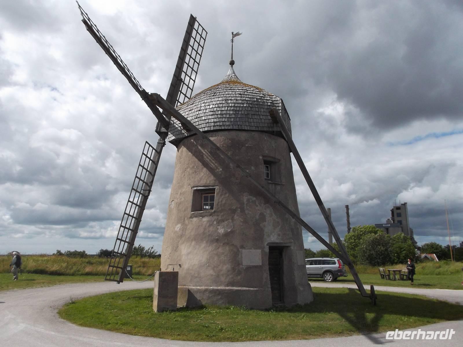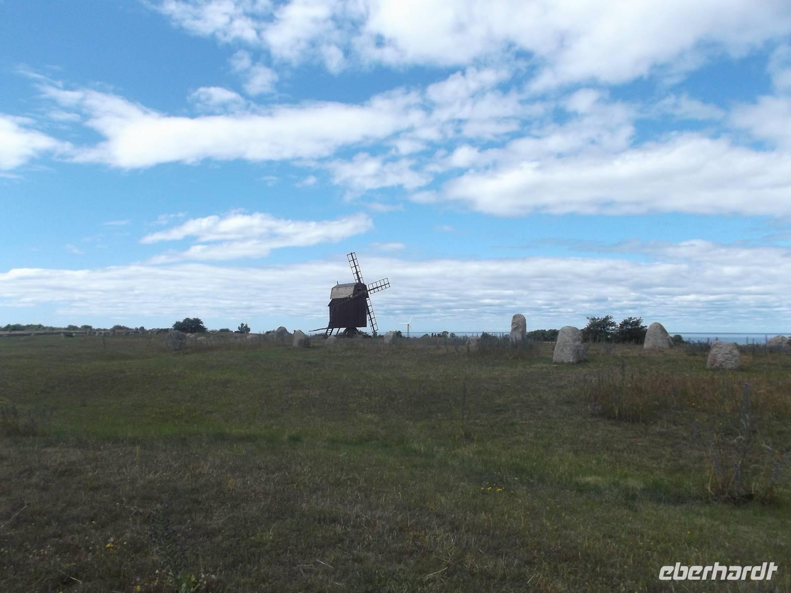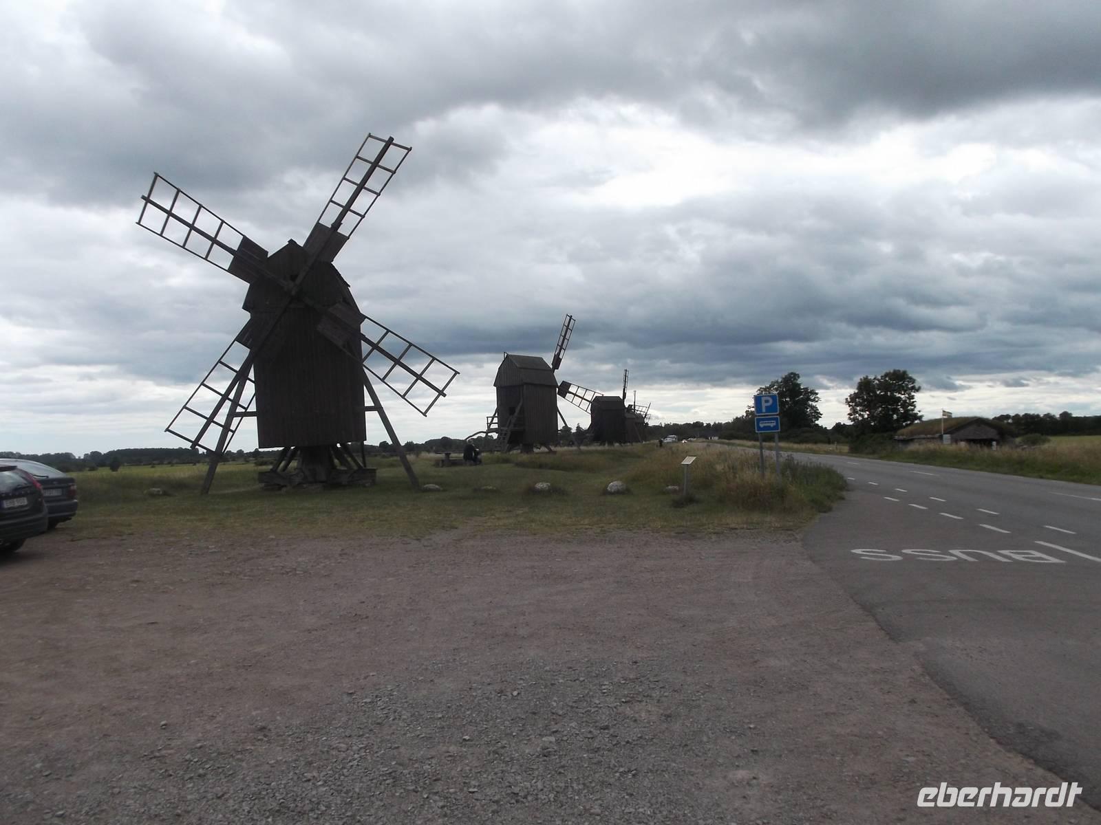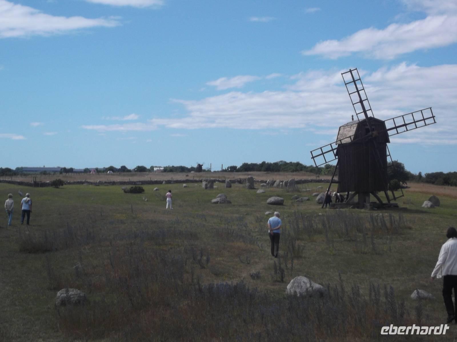 Besonders ins Auge fallen einem während eines Öland-Besuchs die vielen Windmühlen - Zeichen der früheren „Industrialisierung" der Insel. Über 2000 soll es gegeben haben und über 400 sind erhalten. Ein ganz besonders fotogene Ansammlunf findet man bei Lerkaka. Hier kümmert sich ein Verein darum, dass die Mühlen in gutem Erhaltungszustand und auch offen sind. Wir hatten Gelegenheit, ins die auf einem hohen Pfosten Stehenden und durch einen hölzernen Zahnradkranz drehbar gelagerten Mühlen genauer anzusehen. Schließlich statteten wir auch noch der besterhaltenen Mittelalterkirche Ölands einen Besuch ab. Gärdslösa stammt im Kern aus dem 12. Jh. wurde aber mehrfach erweitert und umgebaut. Auch sie trägt noch deutliche Züge einer Wehrkirche.