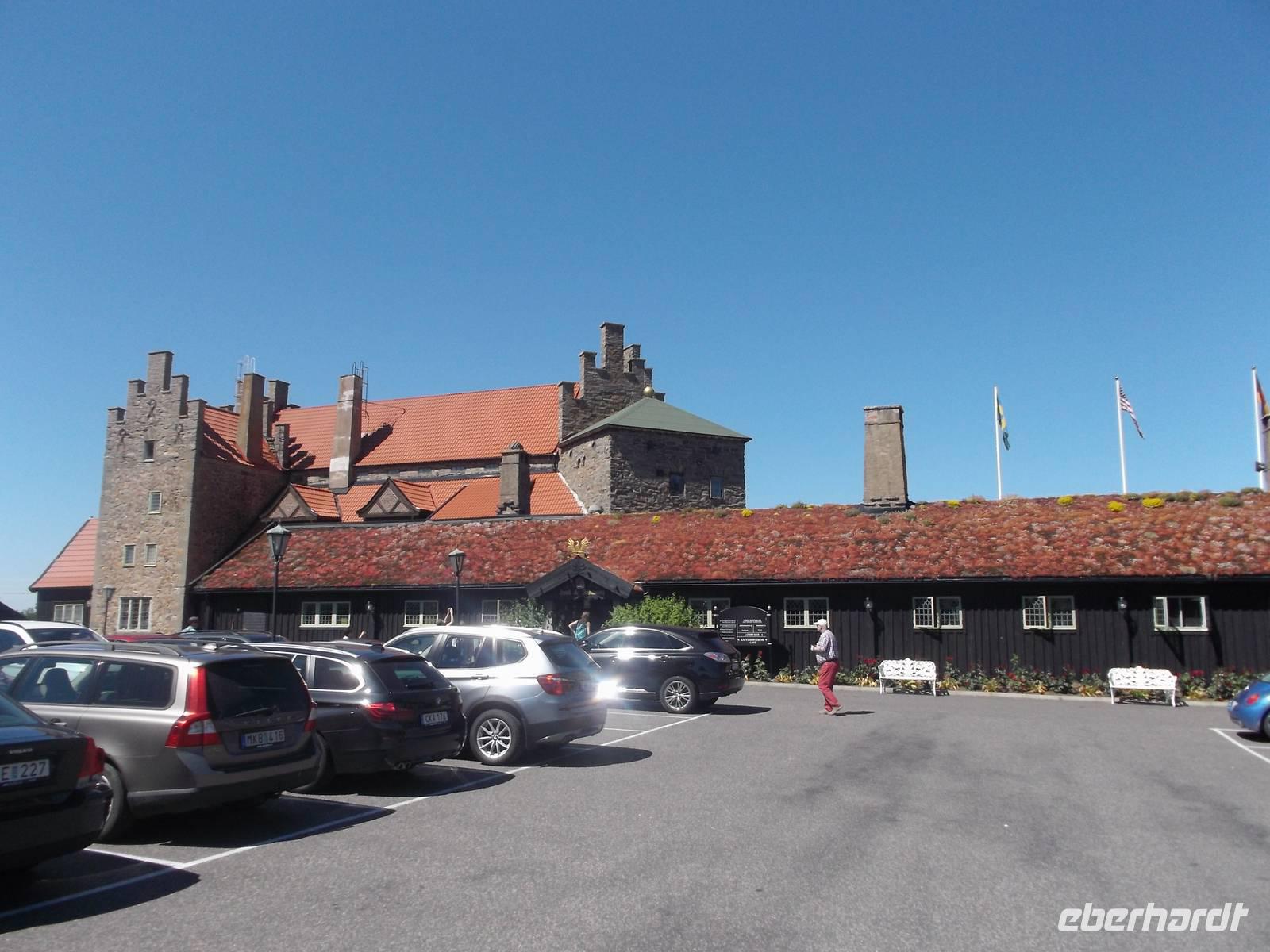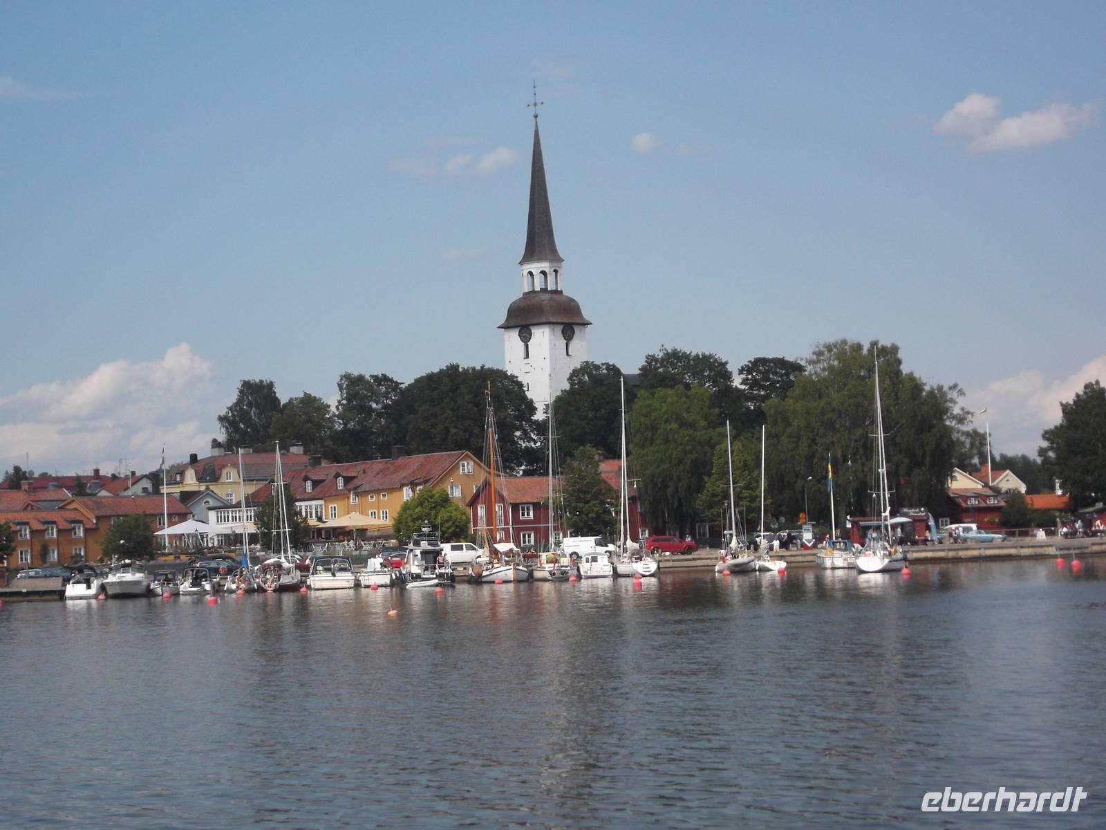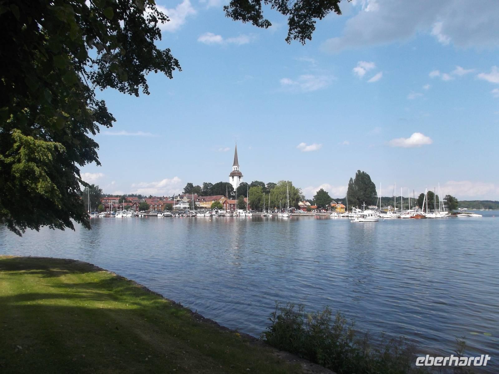 Wir passierten die Städte Borås, Ulricehahm und Jönköping und hatten nach relativ kurzer Zeit den Vätternsee erreicht, den zweitgrößten See Schwedens. Die gewaltige Wasserfläche, etwa fünfmal so groß wie die des Gardasees, ließ gleich Urlaubsstimmung aufkommen. Ein besonders schöner Ausblick bietet sich von der Raststätte „Gyllene Yttern", einem zum Hotel umgebauten alten Schloss, von dessen Terrasse wundervoll der Blick über den Vättern zu dessen größter Insel Visingö schweifen kann.