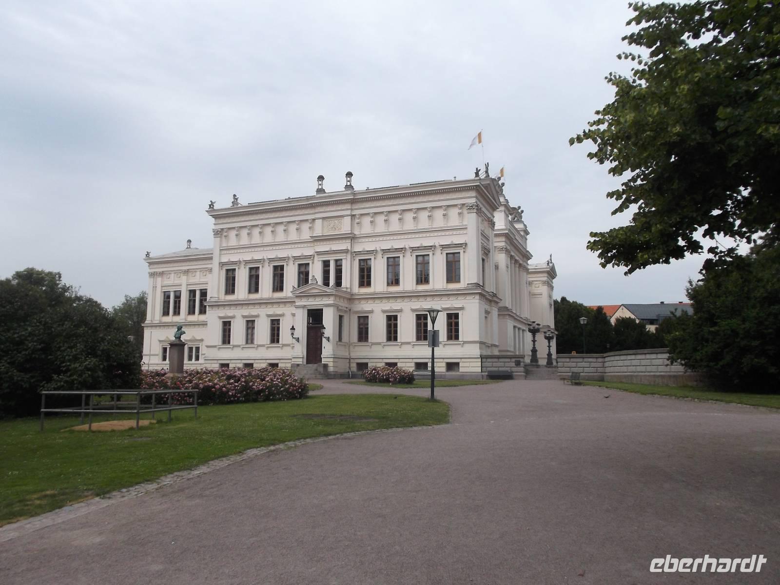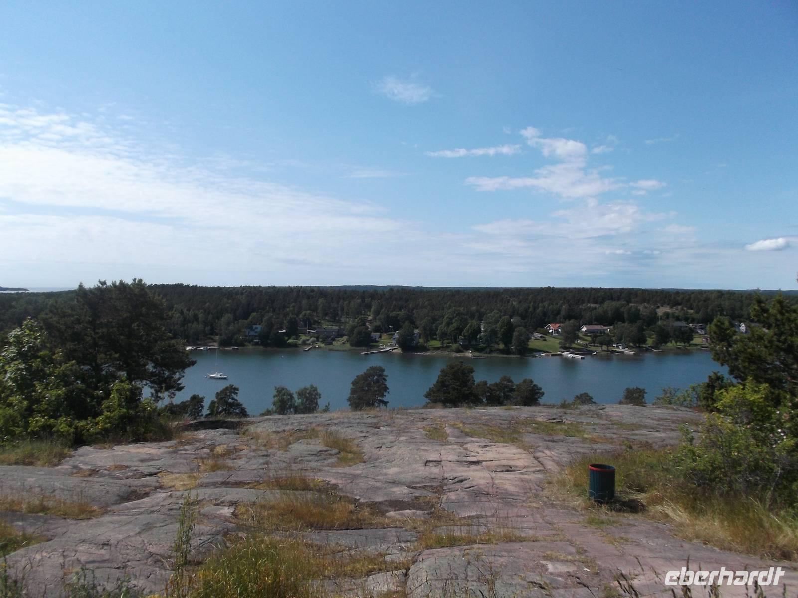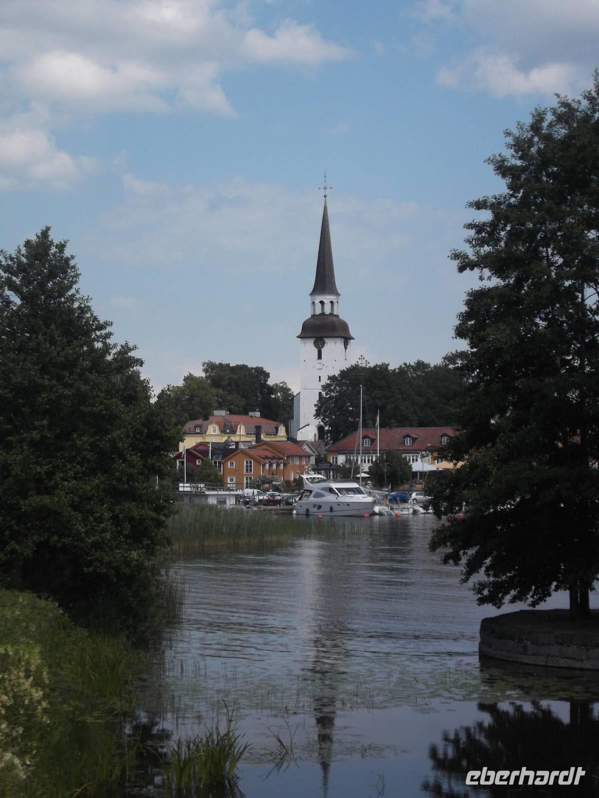 Wir passierten die Städte Borås, Ulricehahm und Jönköping und hatten nach relativ kurzer Zeit den Vätternsee erreicht, den zweitgrößten See Schwedens. Die gewaltige Wasserfläche, etwa fünfmal so groß wie die des Gardasees, ließ gleich Urlaubsstimmung aufkommen. Ein besonders schöner Ausblick bietet sich von der Raststätte „Gyllene Yttern", einem zum Hotel umgebauten alten Schloss, von dessen Terrasse wundervoll der Blick über den Vättern zu dessen größter Insel Visingö schweifen kann.