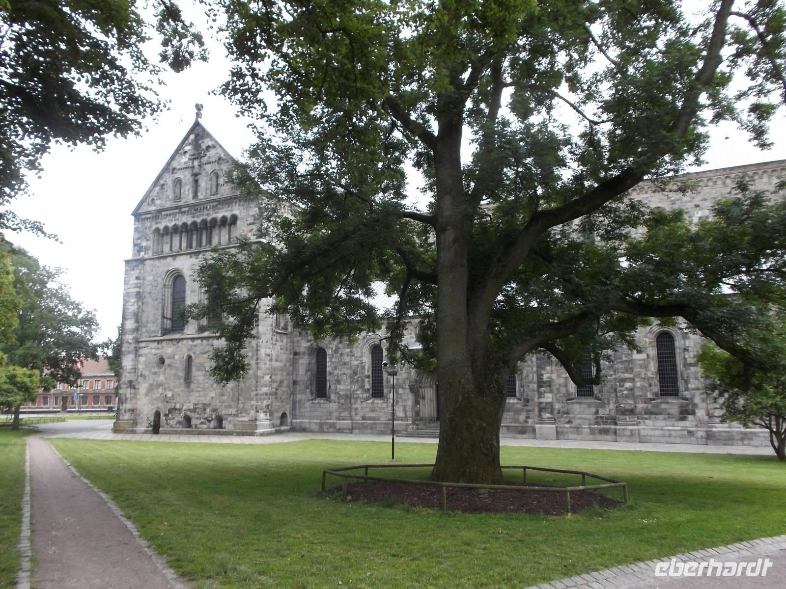 Ein allerletztes Extra hatten wir aber noch zu bieten: ein kleiner Umweg führte uns in die Universitätsstadt Lund. Hieer gibt es nicht nur eine der größten Bildungsstätten Skandinaviens, die zweitälteste Uni auf dem heutigen Gebiet Schwedens (nach Uppsala), sondern mit dem 1103 begonnenen Dom auch den ältesten steinernen Kirchenbau Skandinaviens. Seit seiner Errichtung ist er die zentrale Kirche des Bistums Lund und er war der letzte Besichtigungspunkt während unserer Reise. Seine Erbauung zeigte einst Einflüsse der norditalieniscen Ropmanik aber auch englische Einflüse, denn die dänische Herrschaft über England war zur Zeit seiner Errichtung erst kurz vorbei. Sowohl die herrliche Gliederung seiner Fassade durch omanische Bögen, Säulen und Halbsäulen als auch seine gewaltige Raumwirkung, machen den Dom zu Lund zu etwas ganz Besonderem.