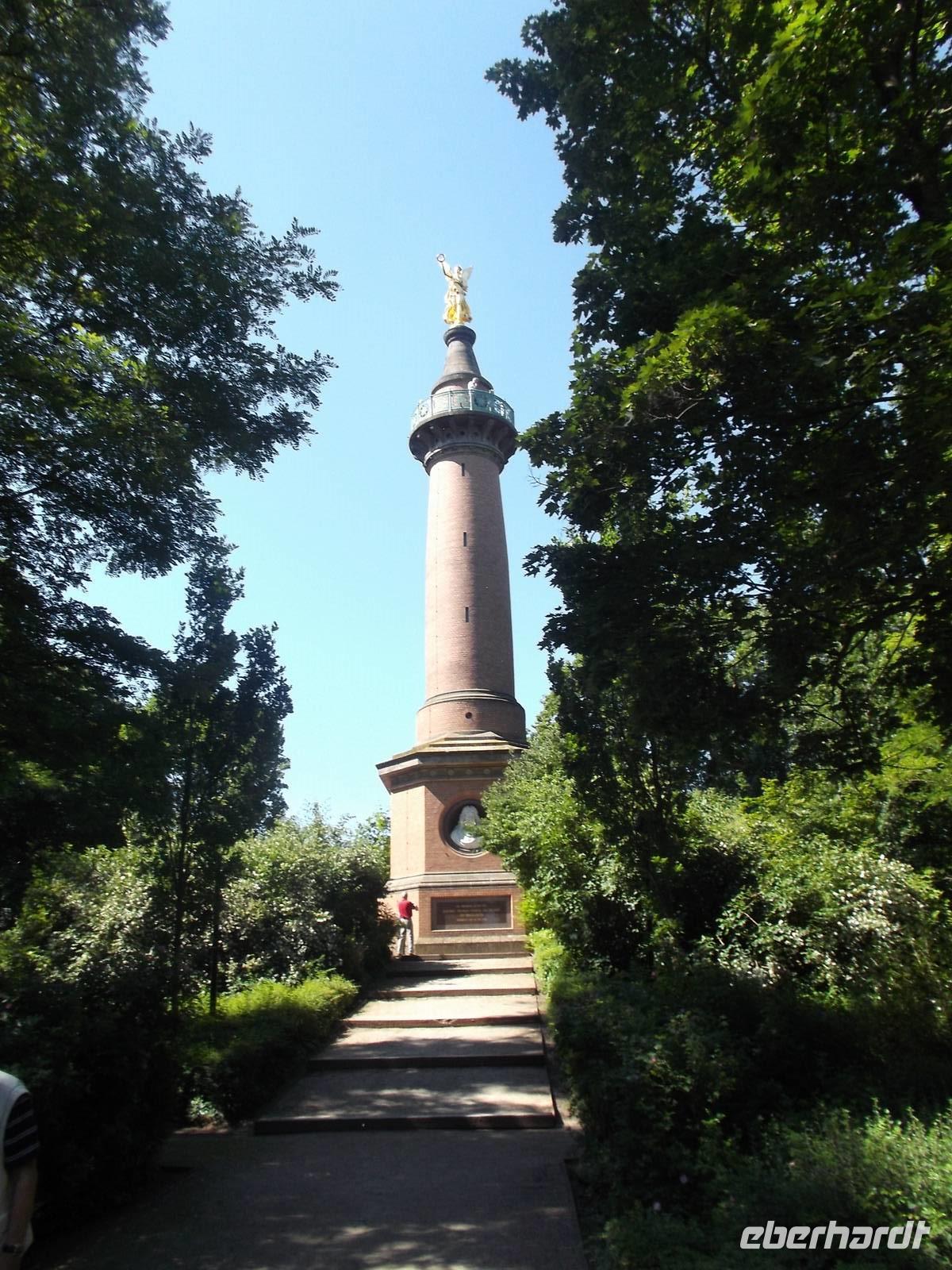 Wie immer starteten wir am Flughafen Dresden, diesmal gegenüber der Katalogausschreibung „aufgewertet" mit einem Fünf-Sterne-Bus. Schon nach dem Halt an der Raststätte Michendorf hatten wir alle Reisenden an Bord. Gleich zu Anfang konnte ich, ganz im Sinne unserer Eberhardt „Richtig Reisen!"-Philosophie den Reisegästen ein kleines „Extra" bieten. Wir verließen die Autobahn kurz vor Neuruppin für einen Abstecher und fuhren über Schlachtfeld von Fehrbellin zum Kurfürsten-Denkmal von Hakenfelde. Hier in der Umgebung fand 1675 die Schlacht von Fehrbellin statt. Der Brandenburger Kurfürst schlug in dem einstmals sumpfigen Gelände eine überlegene schwedische Armee und legte damit den Grundstein für den Aufstieg Brandenburgs, aus dem die spätere Großmacht Preußen hervorging. Das 36 m hohe Denkmal - diesmal in strahlendem Sonnenschein gelegen - wird von einer vergoldeten, mehrere Meter hohen Victoria-Siegesfigur gekrönt, die der berühmte Bildhauer Christian Daniel Rauch schuf. Wir hatten Zeit, das Denkmal ausgiebig zu fotografieren und - wer wollte - auch zu besteigen - bevor der Bus wieder auf die Autobahn zurückfuhr und uns nach Kiel brachte. Hier waren wir früh genug, um vor dem Check in auf das Schiff noch ein wenig Freizeit in der schleswig-holsteinischen Landeshauptstadt zu verbringen.