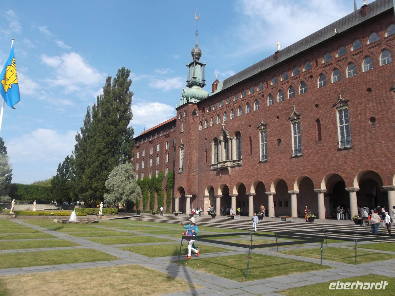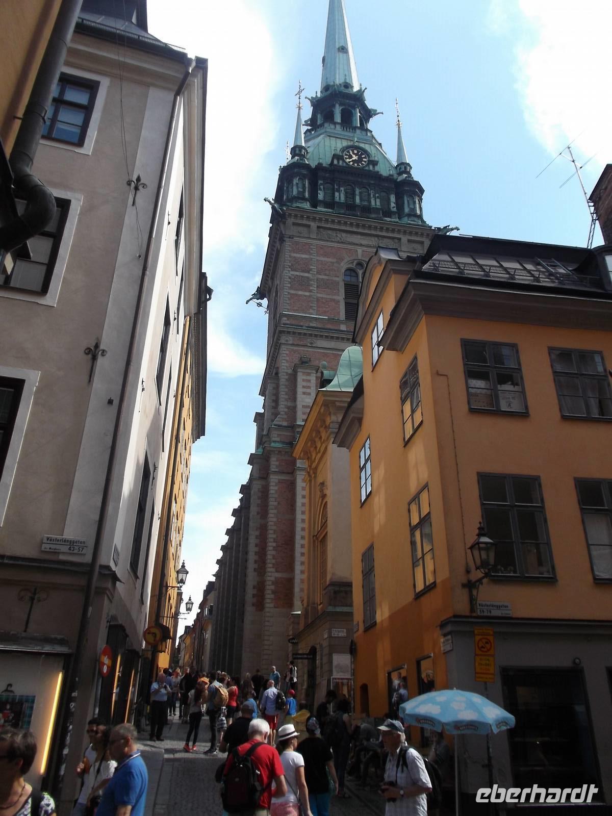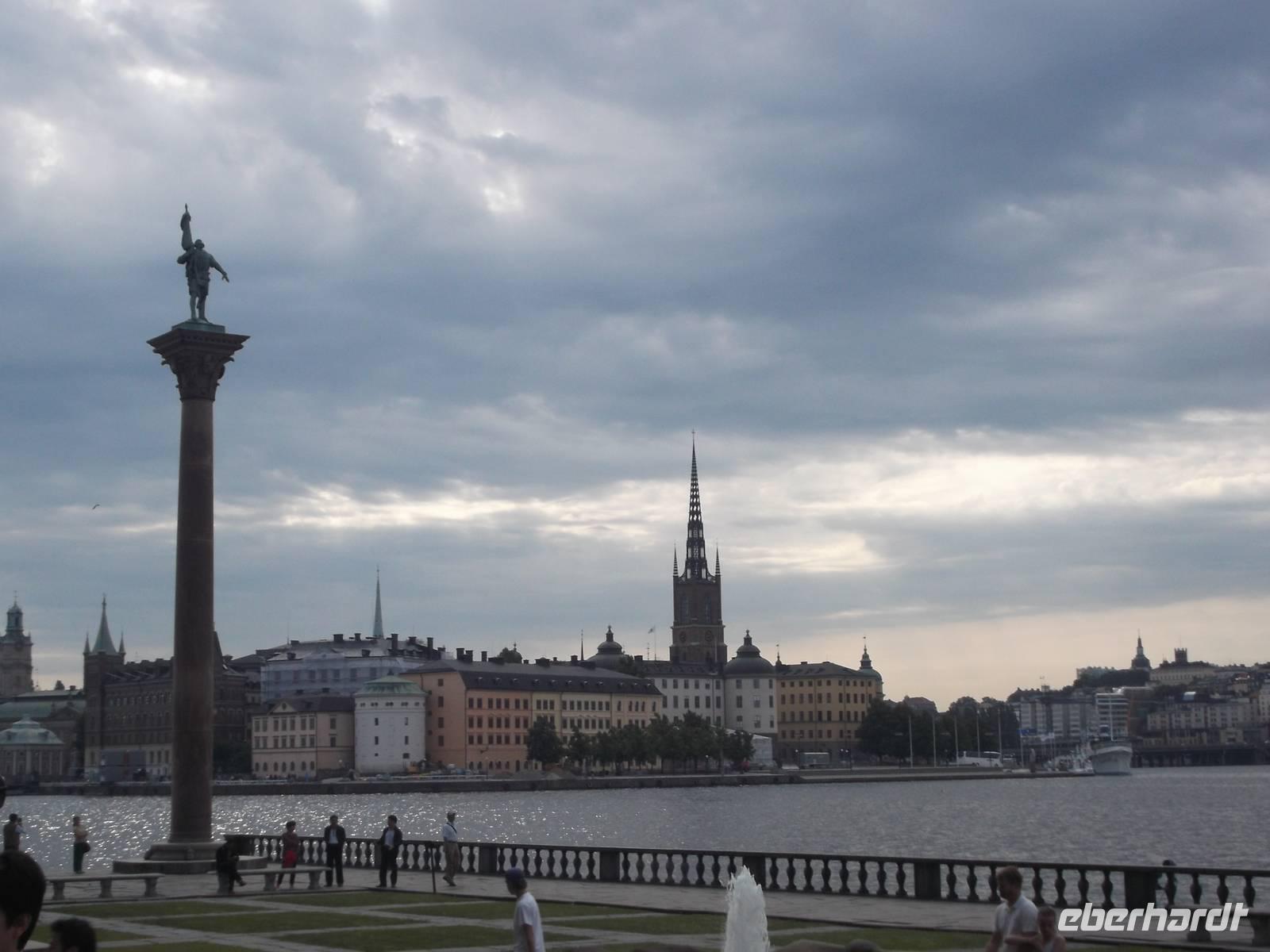 Unsere Stadtrundfahrt begann wie immer am Rathaus von Stockholm. Bei herrlichem Wetter konnten wir einige Fotos von dem markanten Bau machen, bevor wir durch die Neustadt fuhren. Der wohl schönste Aussichtspunkt über die schwedische Hauptstadt liegt im Ortsteil Södermalm und von hier überblickt man ganz Stockholm - sowohl Altstadt und Schloss als auch die Neustadt und die verschiedenen Seefahrts-Einrichtungen der schon immer mit dem Meer verbundenenen Landeshauptstadt. Besonders auffällig und gut von hier zu sehen sind die „Museumsinsel" Djurgården mit dem Nordischem und dem Wasa-Museum und das dort ganz in der Nähe liegende Vergnügungszentrum Gröna Lund. Später hielten wir am Obelisken auf dem Schlossplatz und sahen bei unserem Bummel durch die Altstadt Schwedens kleinste Statue, den „eisernen Jungen" aber auch Schloss, Domkirche und den Alten Markt Stockholms mit der Schwedischen Akademie, in der alljährlich über den Literatur-Nobelpreis entschieden wird. Die Domkirche, die neben der „deutschen Kirche" und der Riddarholmskirche die Silhouette der schwedischen Hauptstadt beherrscht, steht neben dem gewaltigen Flachbau des Königlichen Schlosses. Es ist einer der größten noch aktiv genutzten Repräsentationsbauten in Europa mit mehr als sechshundert Zimmern. Nach Vollendung unserer Rundfahrt war wie immer der krönende Abschluss der Stockholm-Tour das Wasa-Museum. Es zeigt ein auf ungewöhnliche Weise konserviertes komplettes Schiff aus der Zeit des Dreißigjährigen Krieges und gehört zu den am interessantesten gestalteten Museen der Welt. In Europa hält es den Besucherrekord nach dem ungleich größeren British Museum und es beherbergt die „Wasa" - das 1628 erbaute Flaggschiff der schwedischen Flotte. Dieses Schiff, das man Anfang der 60er Jahre des 20. Jh. Vollständig erhalten bergen konnte, war der Stolz der schwedischen Kriegsflotte, sank aber aufgrund von Baufehlern bereits auf der Jungfernfahrt. In den Ausstellungen und hier gezeigten Filmberichten erfährt der interessierte Besucher vieles über die Marine Schwedens im 17. Jh. vor allem aber einiges zur Geschichte von Bau, Sinken und Hebung des Schiffes.
