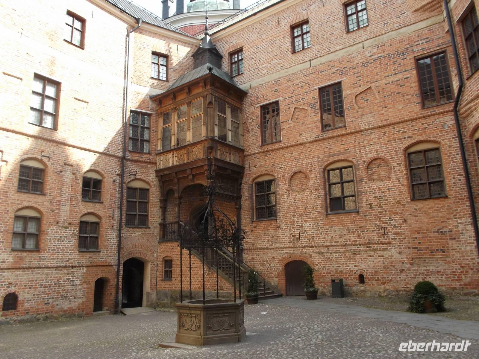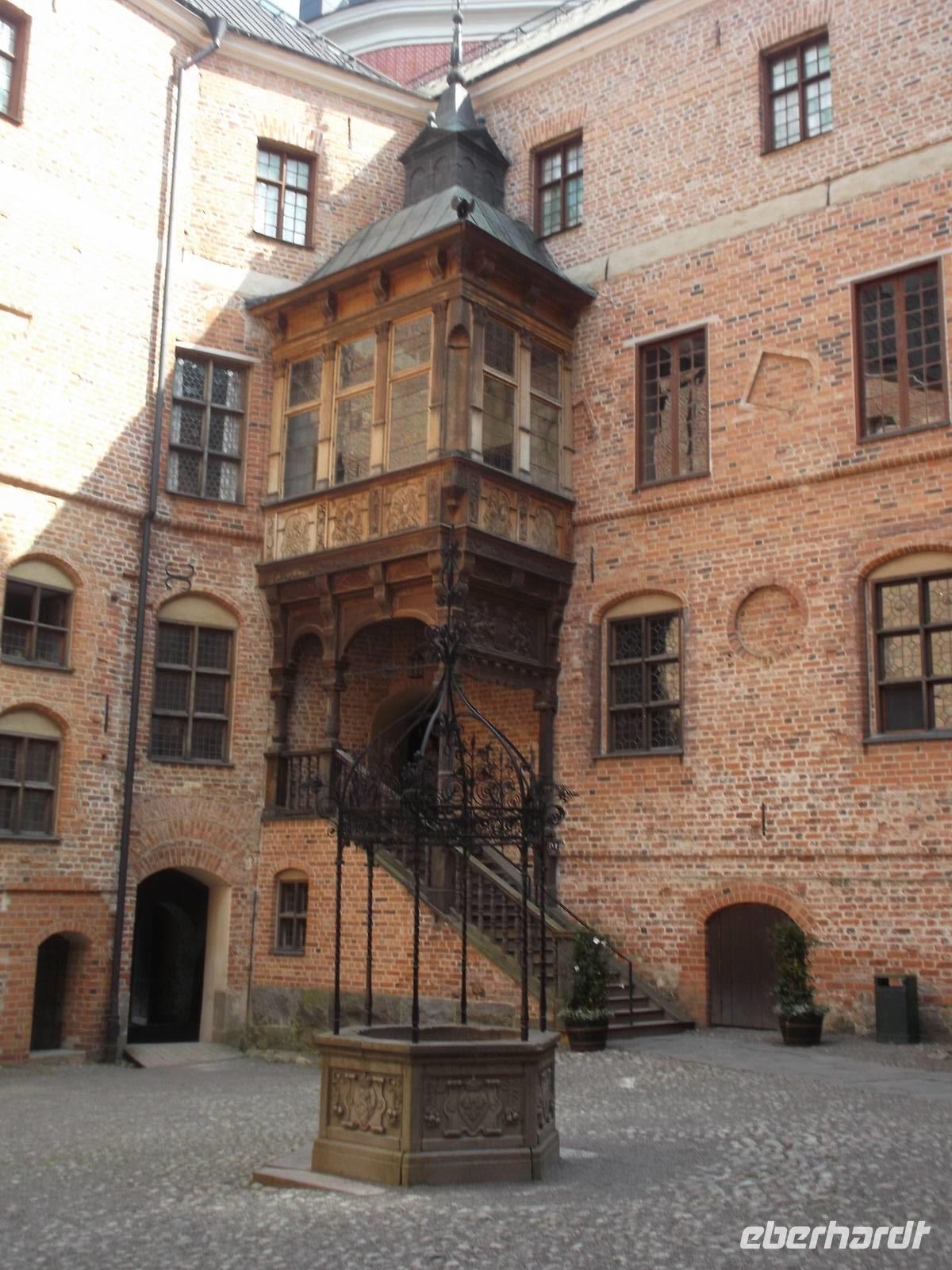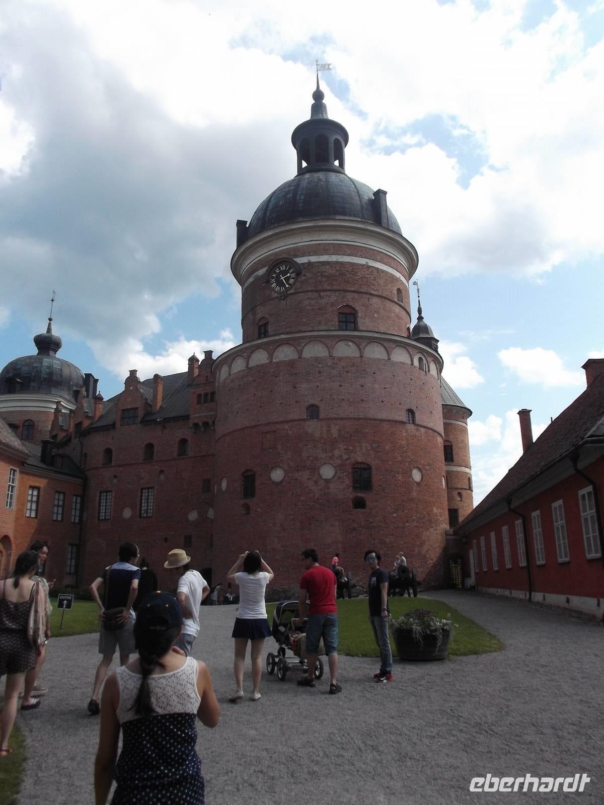 Vom Wasa-Museum brachen wir auf gen Westen und erreichten nach nicht allzu langer Zeit Mariefred und das hier liegende berühmte Schloss Gripsholm. Bei einer Führung konnten wir die historischen Gemäuer kennenlernen, die bereits Gustav Vasa, Schwedens erster König, in den dreißiger Jahren des 16. Jh. anzulegen begann. Später mutierte die ursprünglich zur Verteidigung gedachte Burg eher zum Wohnschloss, denn verschiedene Könige ließen hier recht komfortable Zimmer anlegen. Sogar ein Theater gibt es hier in einem der Schlosstürme, das auf den kunstsinnigen König Gustav III. zurückgeht. Bevor wir nach Stockholm zurückfuhren, statteten wir noch dem Friedhof von Mariefred einen Besuch ab, in dessen wohl bekanntestem Grab der deutsche Publizist und Journalist Kurt Tucholsky liegt. Dann kehrten wir nach Stockholm zurück.