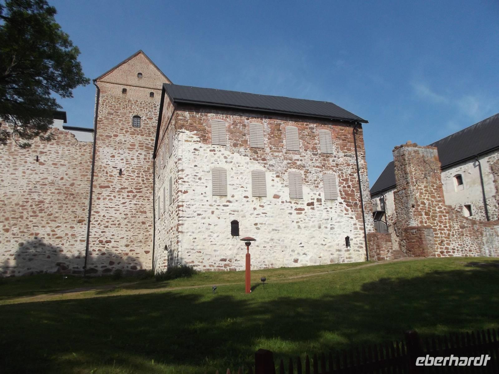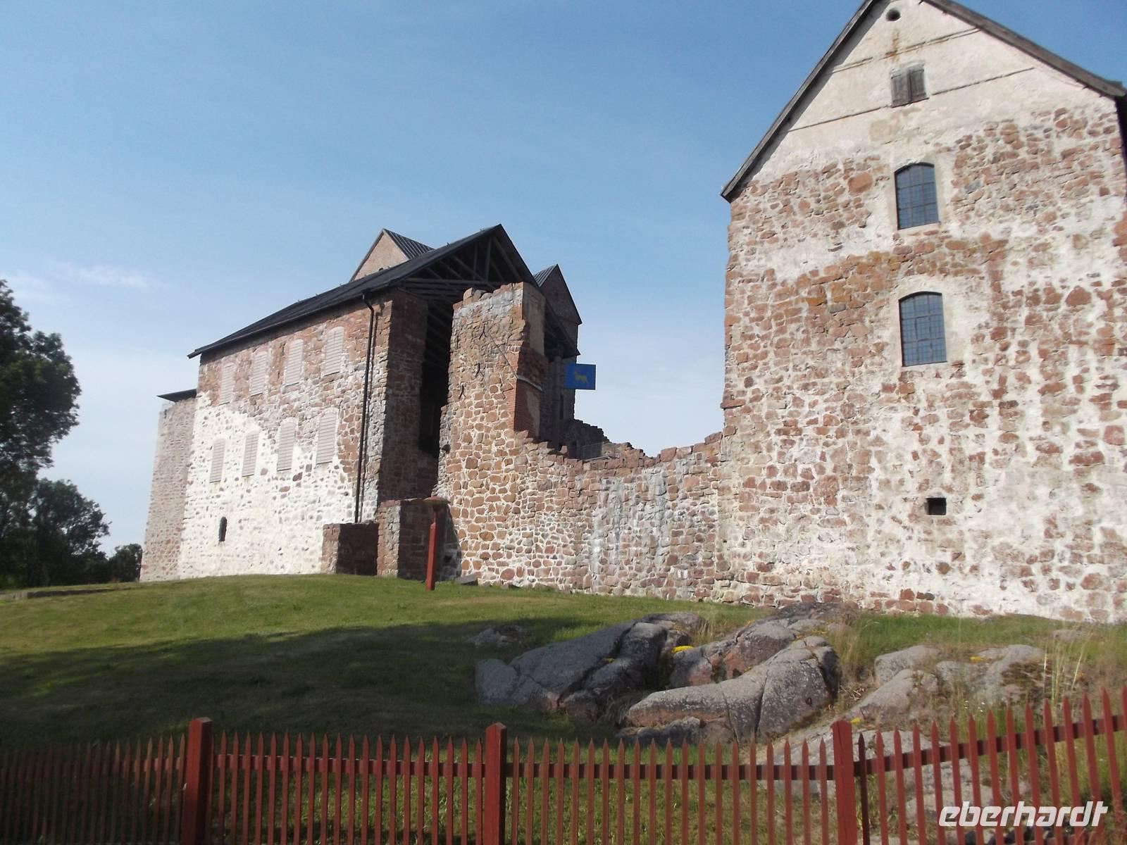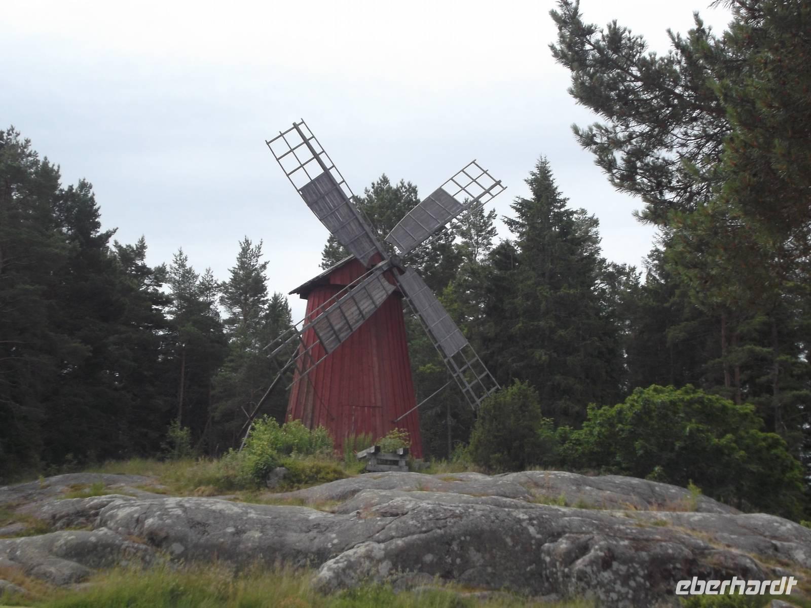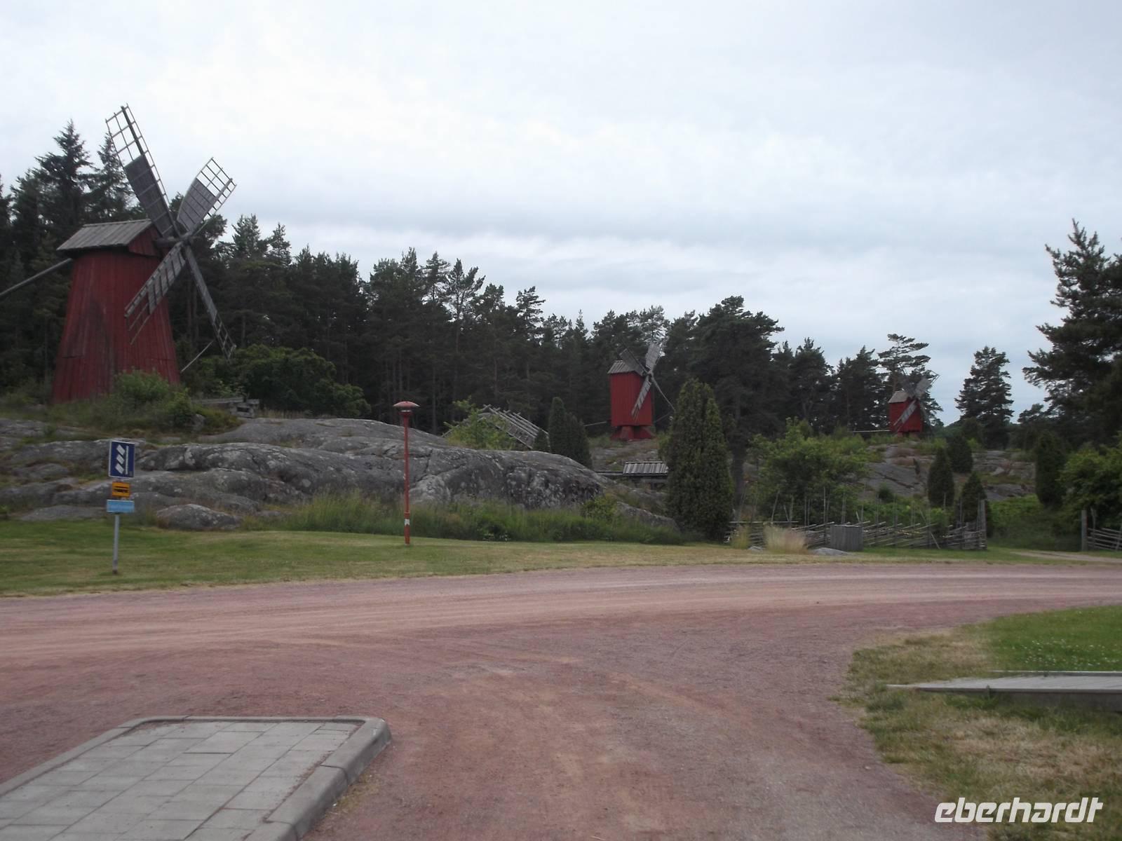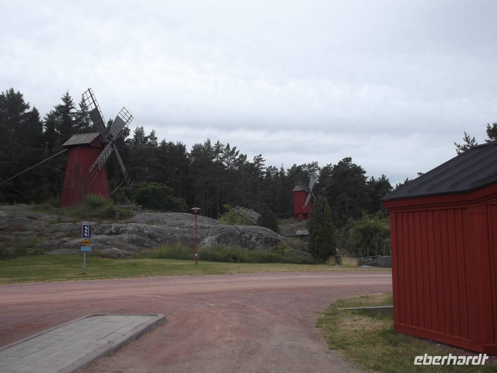 Wie interessant die zwischen Schweden und Finnland liegenden Åland-Inseln sind, das würden wir heute kennenlernen. Wieder begleitete uns die einheimische Reiseleiterin Ann-Kathrin. Wir starteten bei noch herrlichem Wetter mit der Festung Kastelholm, die einst die schwedischen Könige als bedeutende Wehranlage errichten ließen. In der Frühzeit war die - damals noch auf einer kleinen Insel stehende - Burg, die inzwischen im Zuge der nacheiszeitlichen Landhebung nicht mehr allseitig von Wasser umgeben auf der Hauptinsel der Ålands steht, als Wehrburg, von Palisaden umgeben, geschaffen worden. Später erlebte sie dann den Umbau zur Renaissancefestung und diente als Jagdschloss der schwedischen Könige, die das Gemäuer durchaus aber auch als Staatsgefängnis nutzten. Sehr interessant war für uns auch das direkt neben der Anlage von Kastelholm gelegene Freilichtmuseum Jan Karlsgården. Mehrere Gebäude der åländischen Bauernkultur sind hier von verschiedenen Orten und Inseln zusammengetragen wurden, vorwiegend Bauten aus dem 18. und 19. Jahrhundert. Wie ein typischer åländischer Hof aus dem 19. Jahrhundert angeordnet, gibt es hier dick mit Stroh gedeckt ein Wohnhaus, ein Gartenhaus, sowie Vorrats- , Dachboden- und Getreidespeicher. Dazu gehört auch ein kompletter Viehhof mit Pferdestall und Schafstall , etwas abseits noch Sauna, Schmiede und mehrere Arten der für die Ålandinseln typischen Windmühlen.
