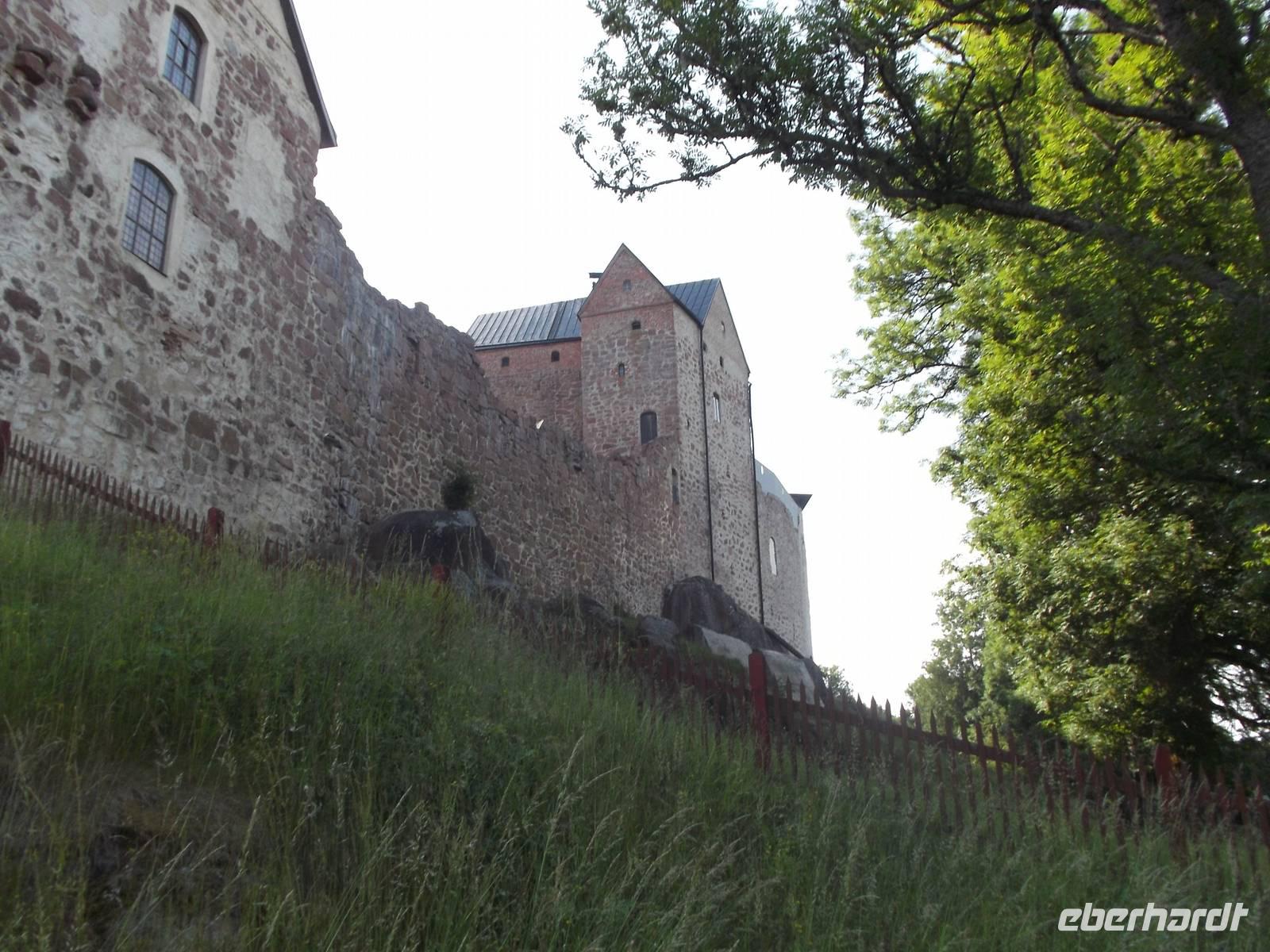 Von hier fuhren wir in den hübschen , für Öland und die schwedischen Küstenstädtchen typischen Ferienort Borgholm, in dessen Fußgängerzone wir noch etwas bummeln konnten. Von hier starteten wir dann abends zurück nach Kalmar, nicht ohne noch an der Ruine des wuchtigen Schlosses Borgholm - außerhalb der Stadt gelegen und nach seinem Brand 1806 nicht wieder aufgebaut - einen Fotostopp einzulegen. Zum Abendessen waren wire wieder in unserem Hotel.